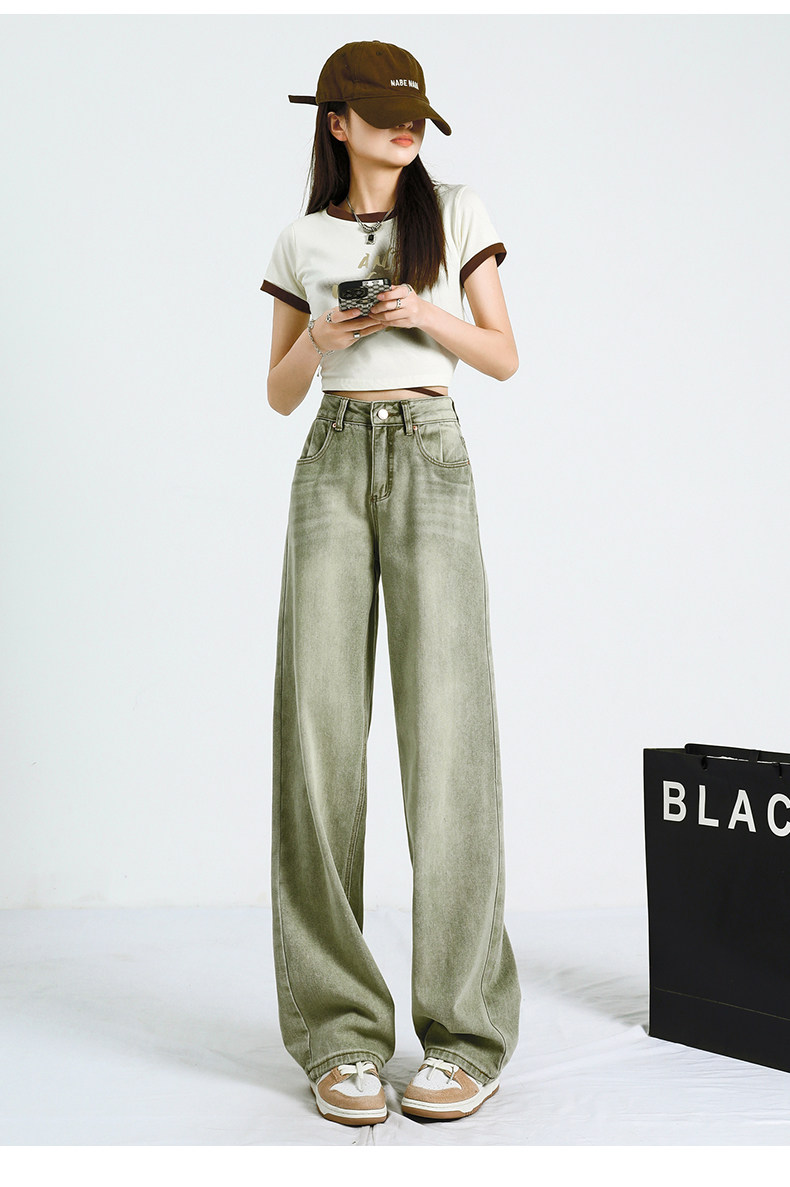 Демисезонные джинсы, штаны, осенние леггинсы, высокая талия, коллекция 2023, для формы тела «груша», свободный прямой крой