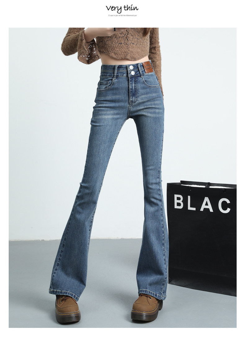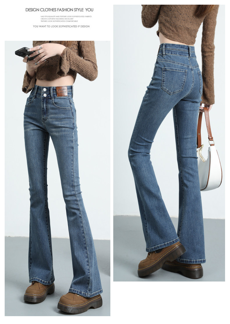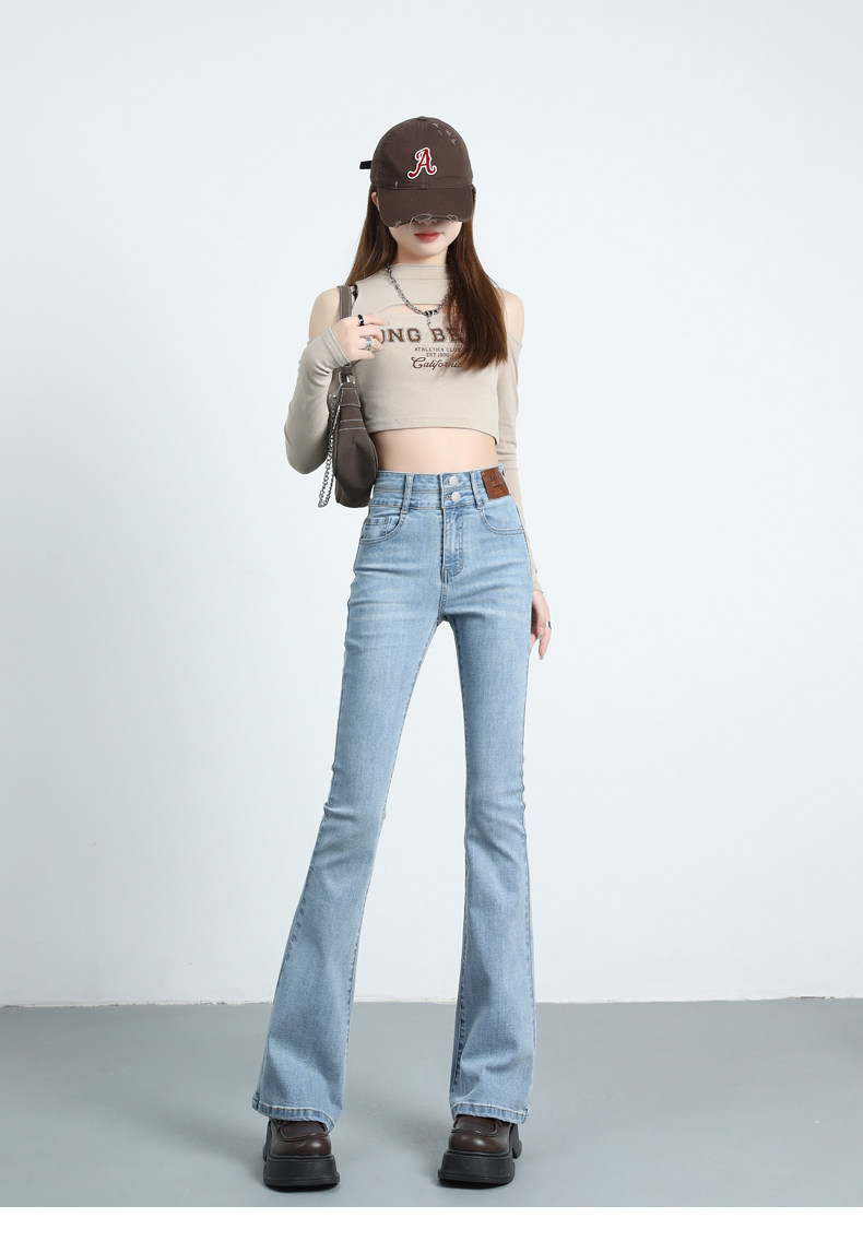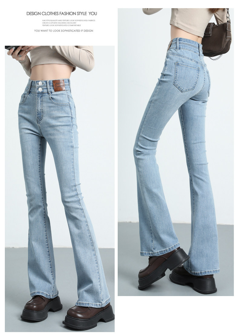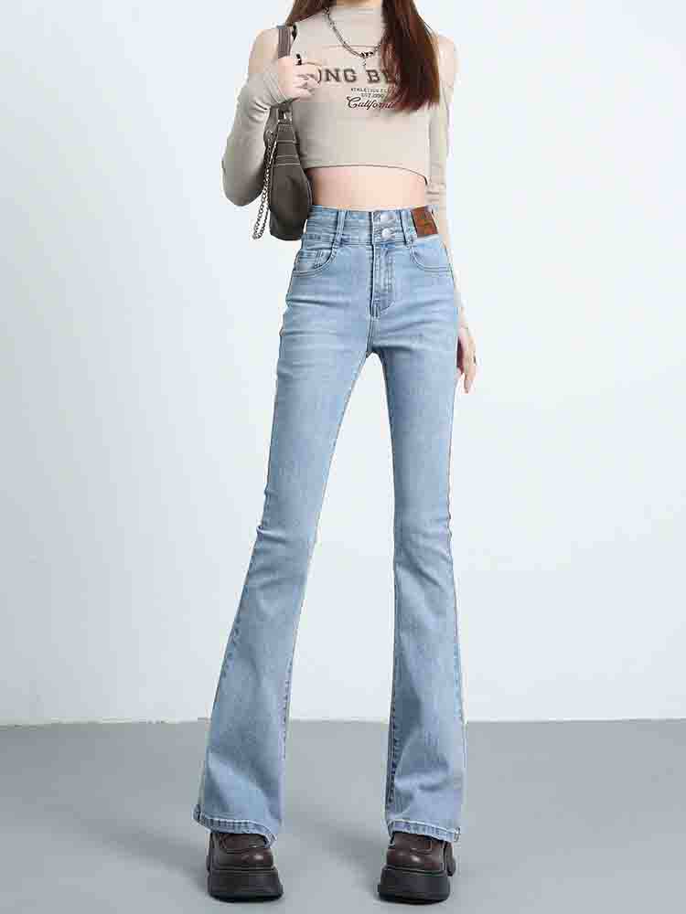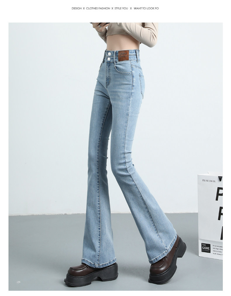 Синие джинсовые штаны-клёш, летние эластичные штаны, высокая талия, новая коллекция, подходят для подростков