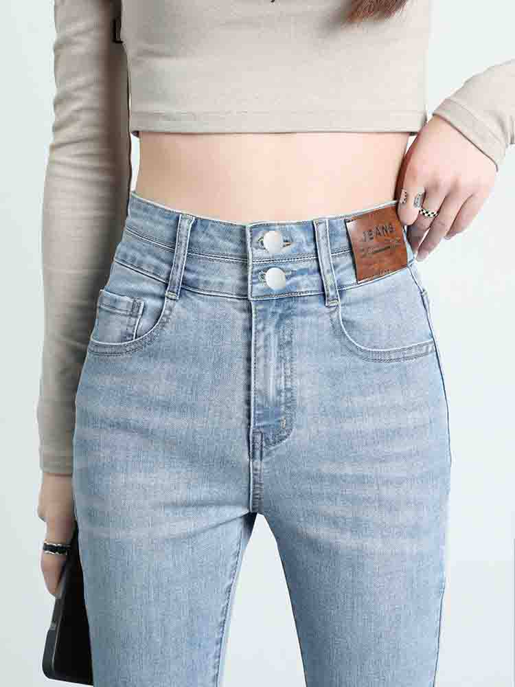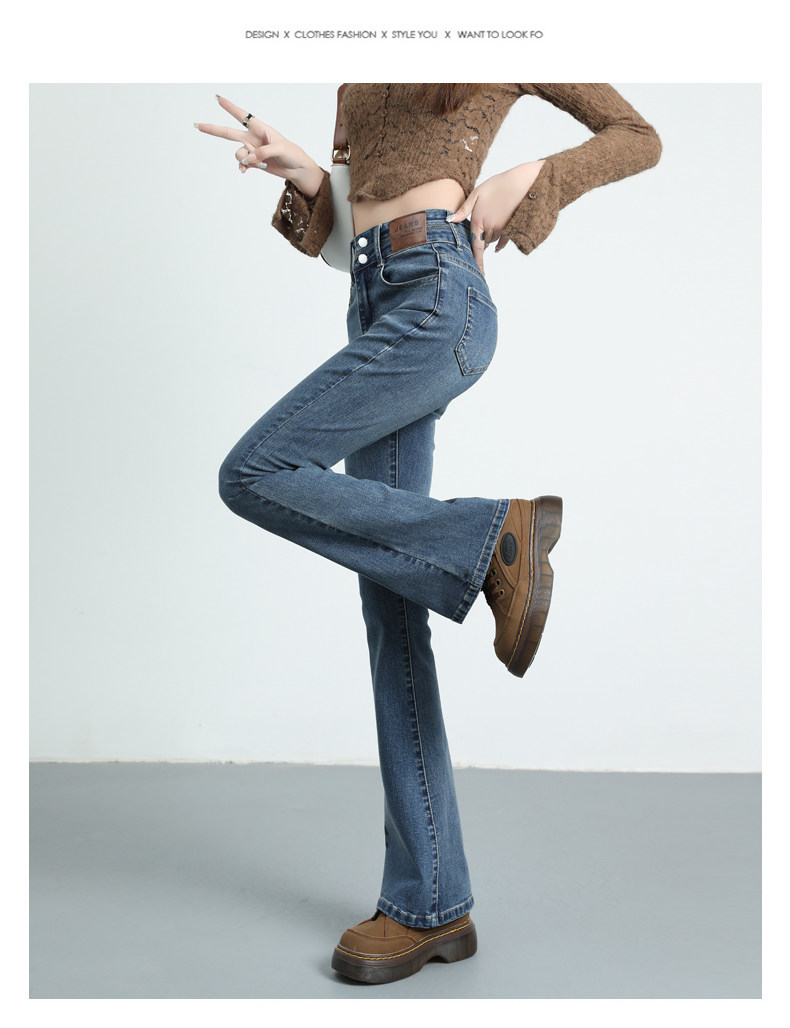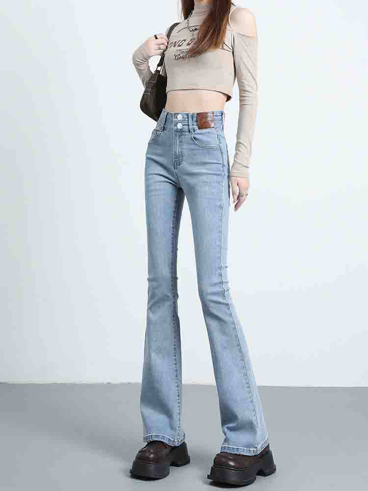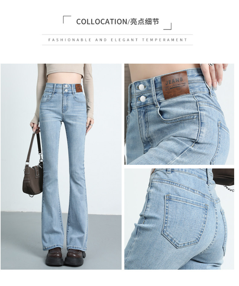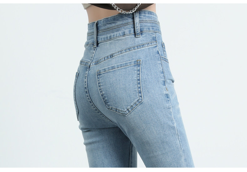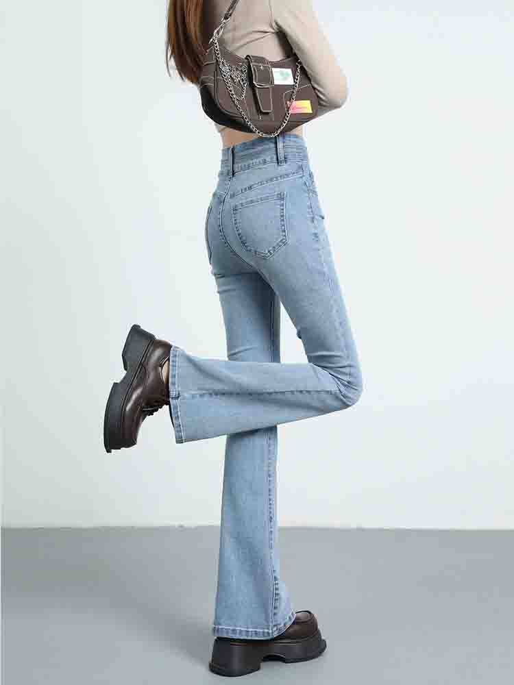 Синие джинсовые штаны-клёш, летние эластичные штаны, высокая талия, новая коллекция, подходят для подростков