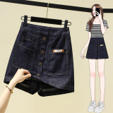 Джинсовая юбка, летние шорты, дизайнерские штаны, большой размер, эластичная талия, в корейском стиле, тренд сезона, по фигуре