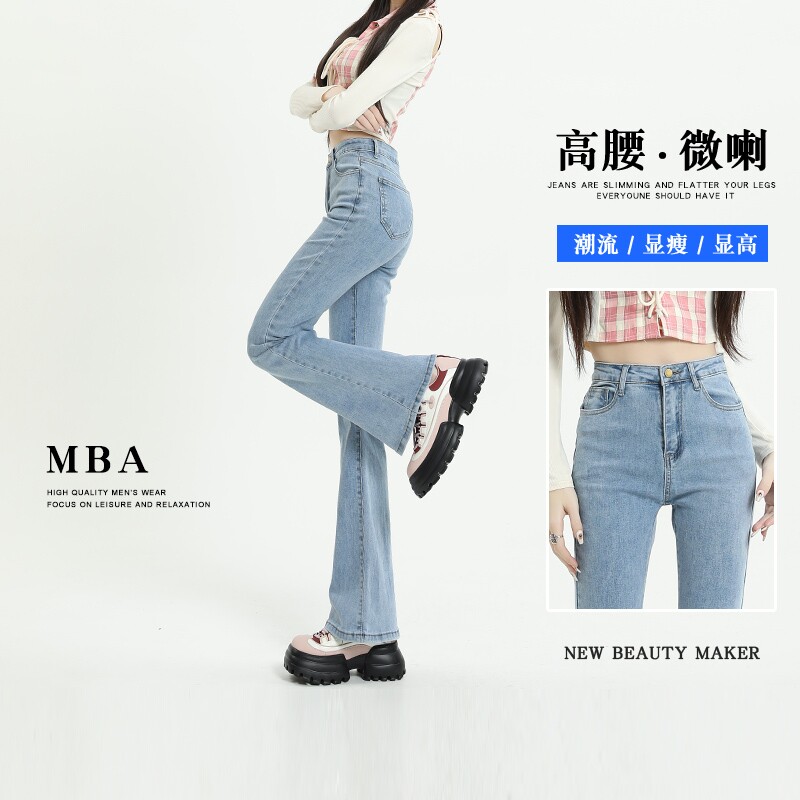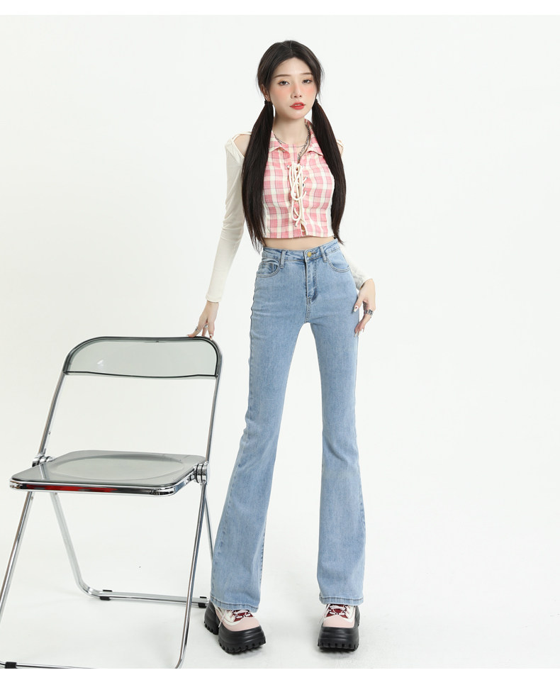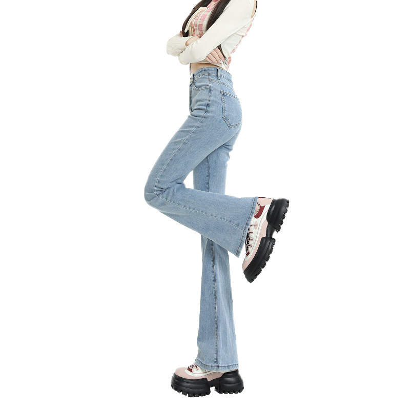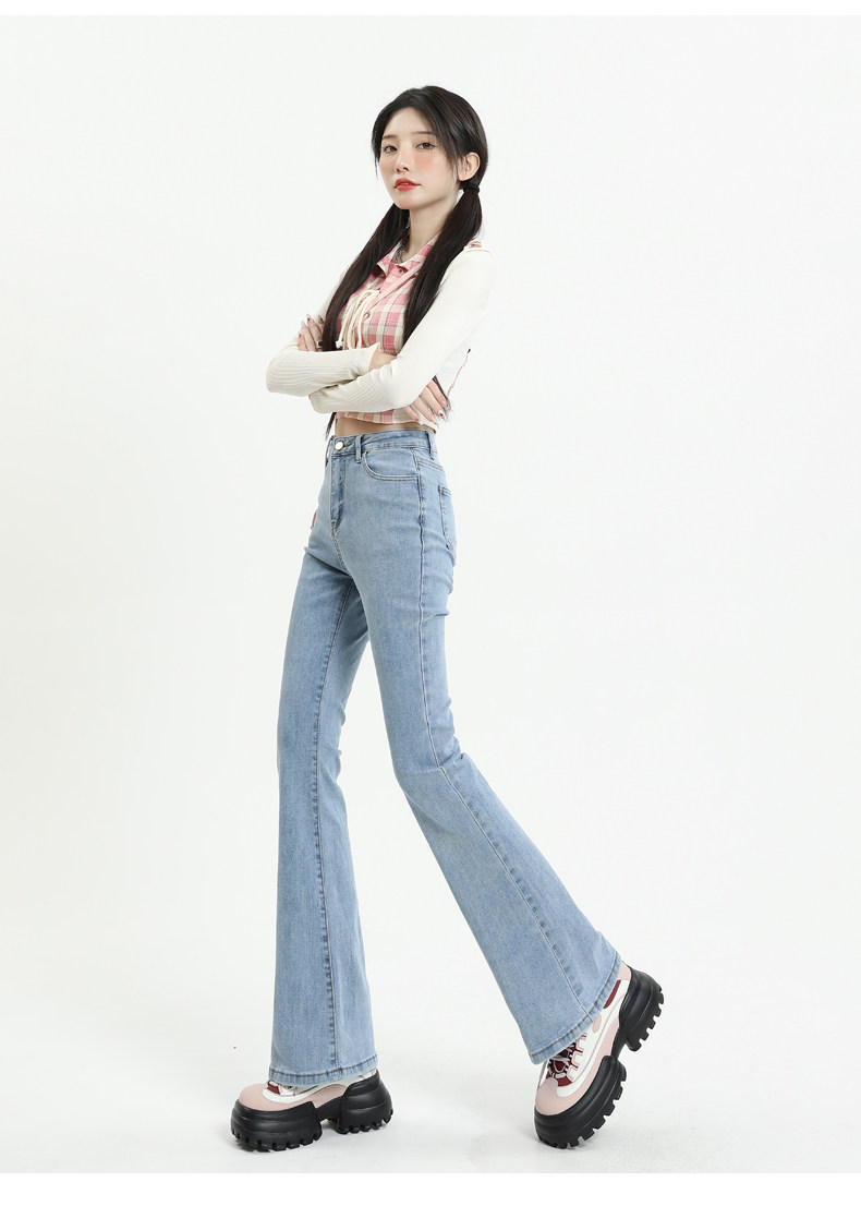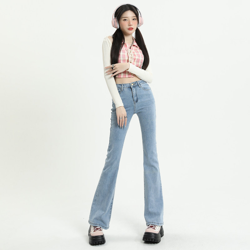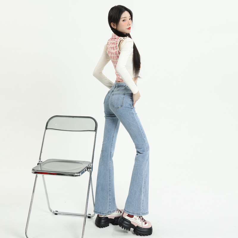 Светлые цветные приталенные джинсы, штаны, приталенный длинный мегафон, высокая талия, коллекция 2023