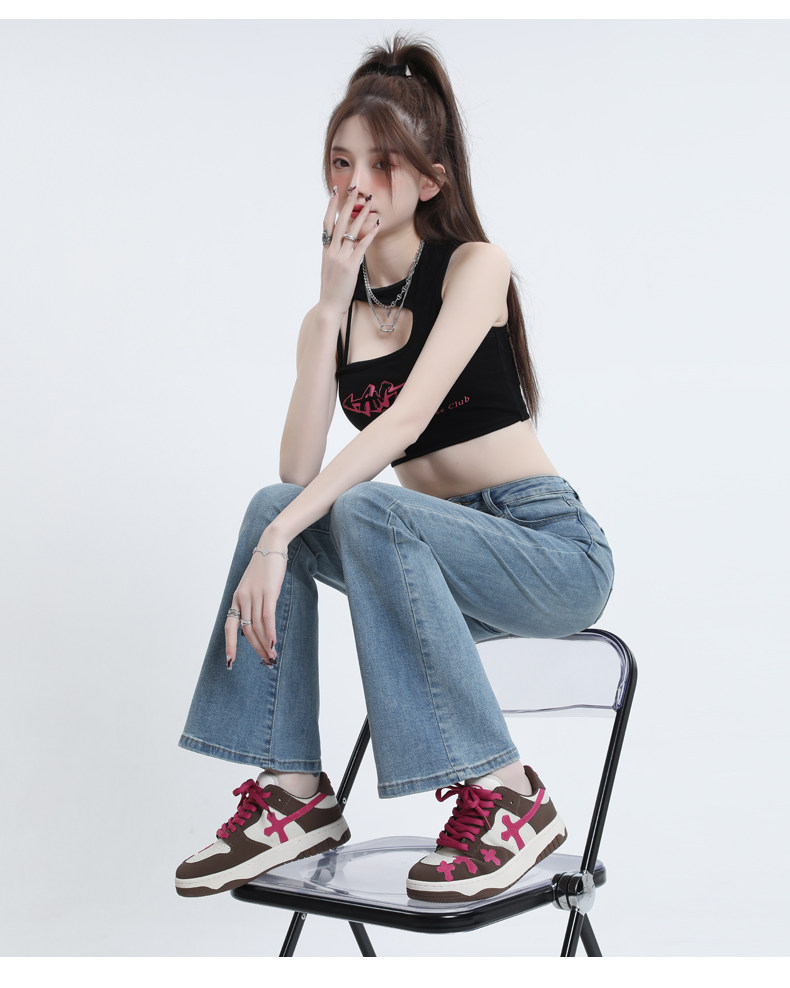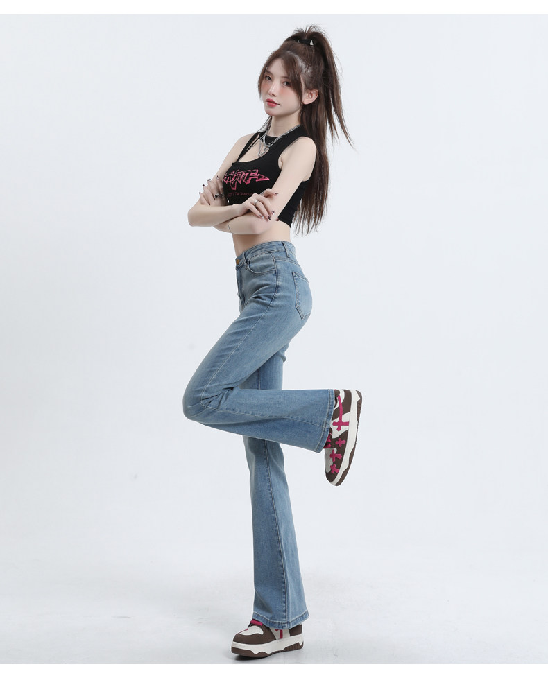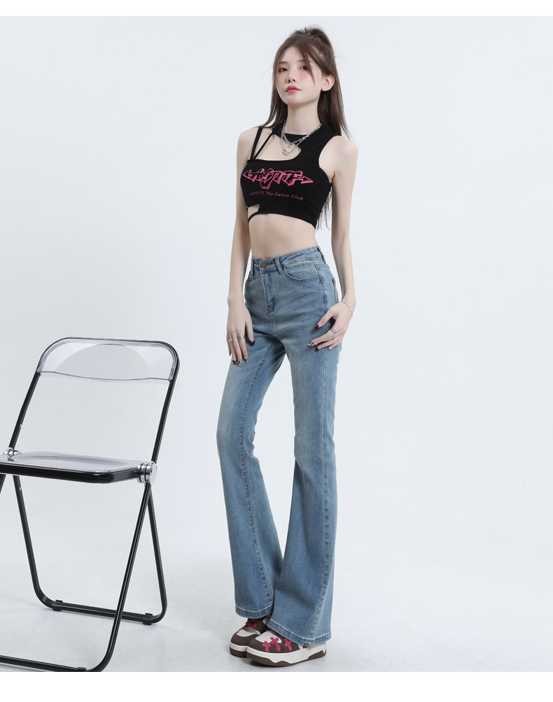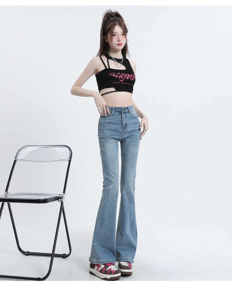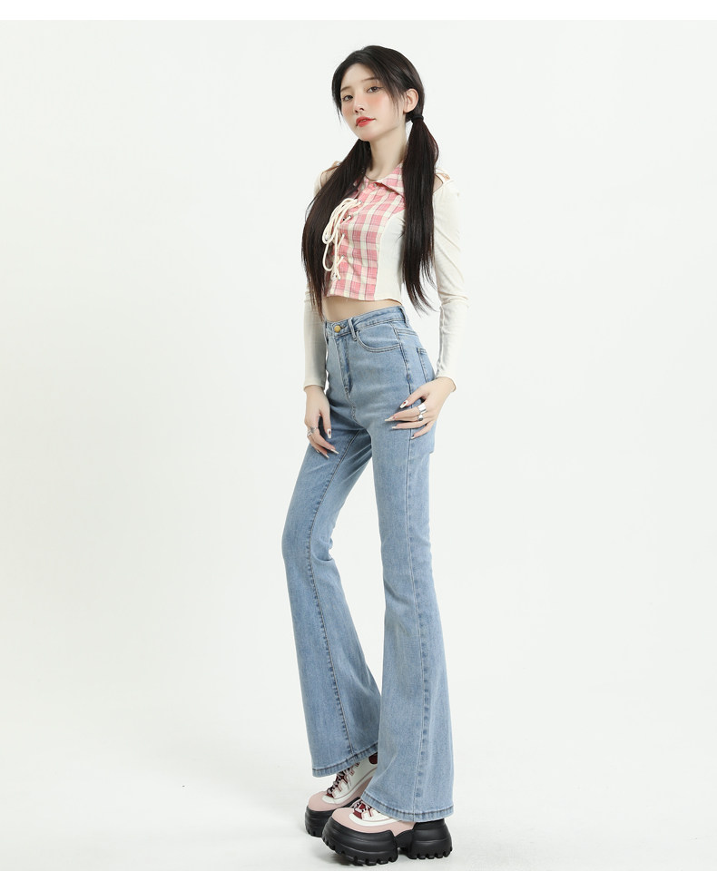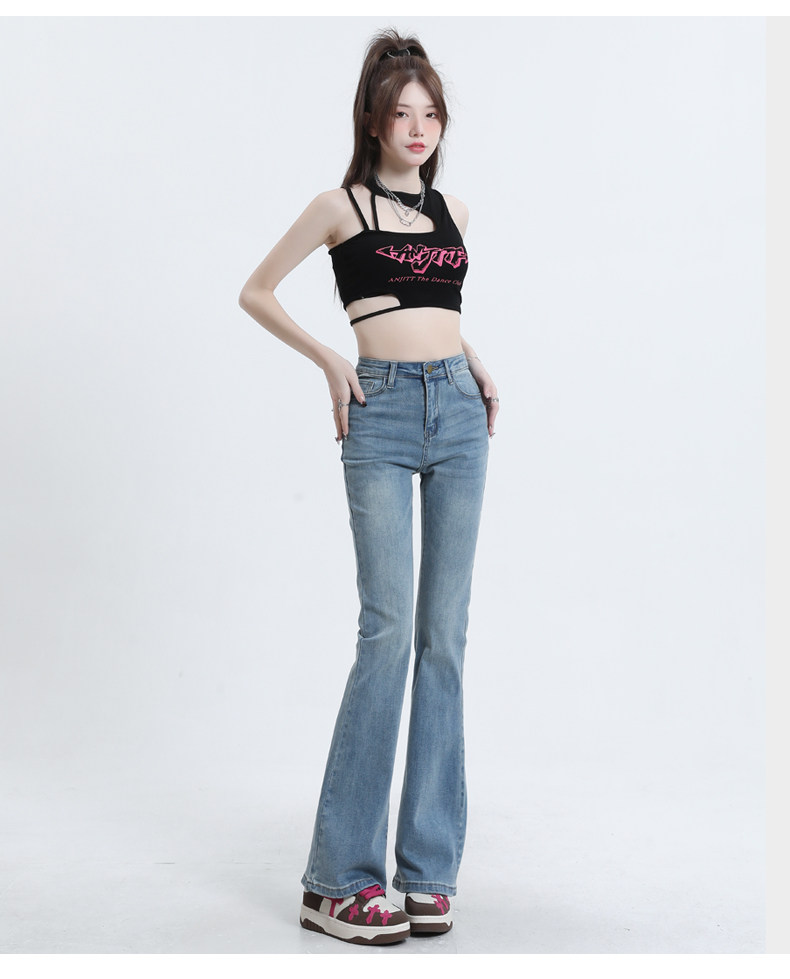 Светлые цветные приталенные джинсы, штаны, приталенный длинный мегафон, высокая талия, коллекция 2023