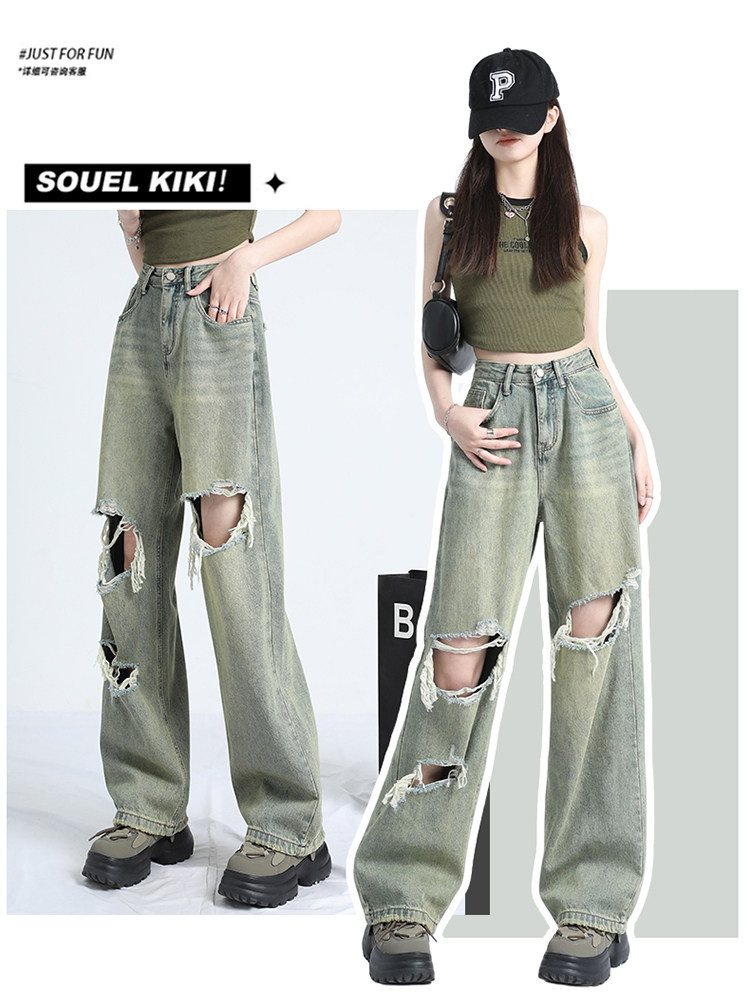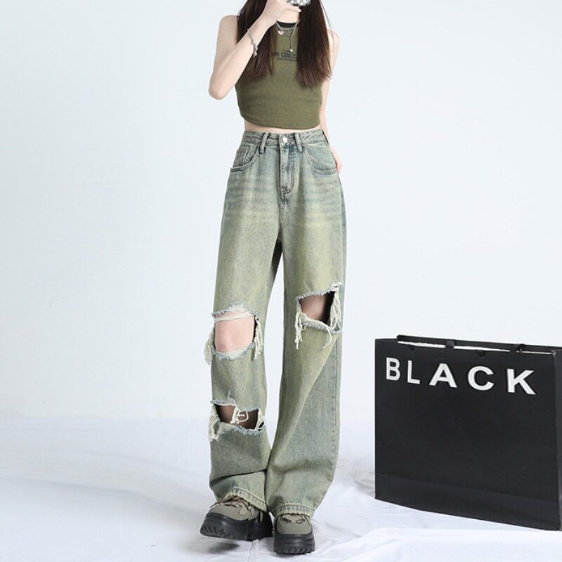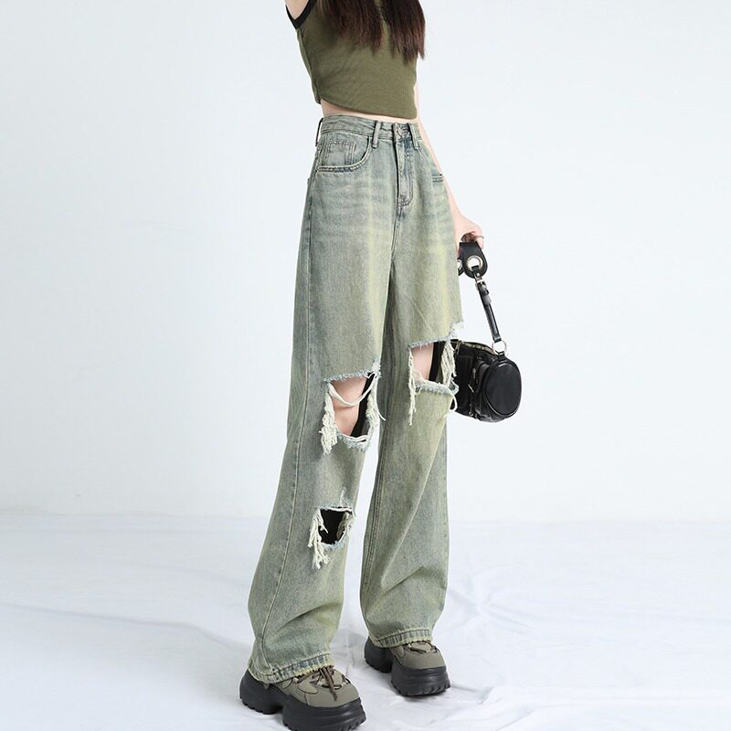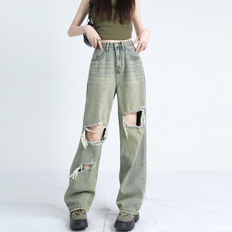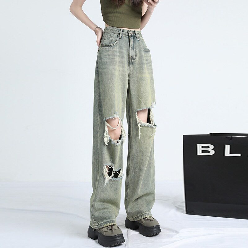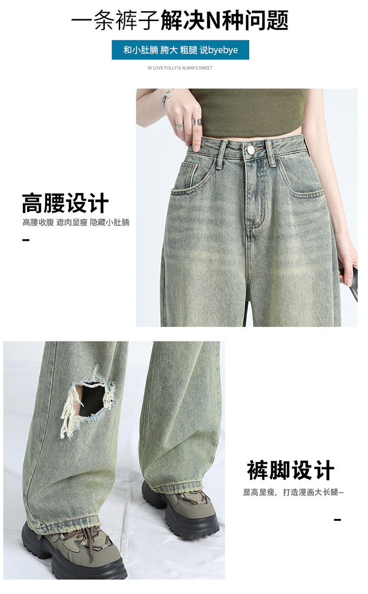 Ретро тонкие джинсы, штаны, в американском стиле, высокая талия, оверсайз, свободный крой