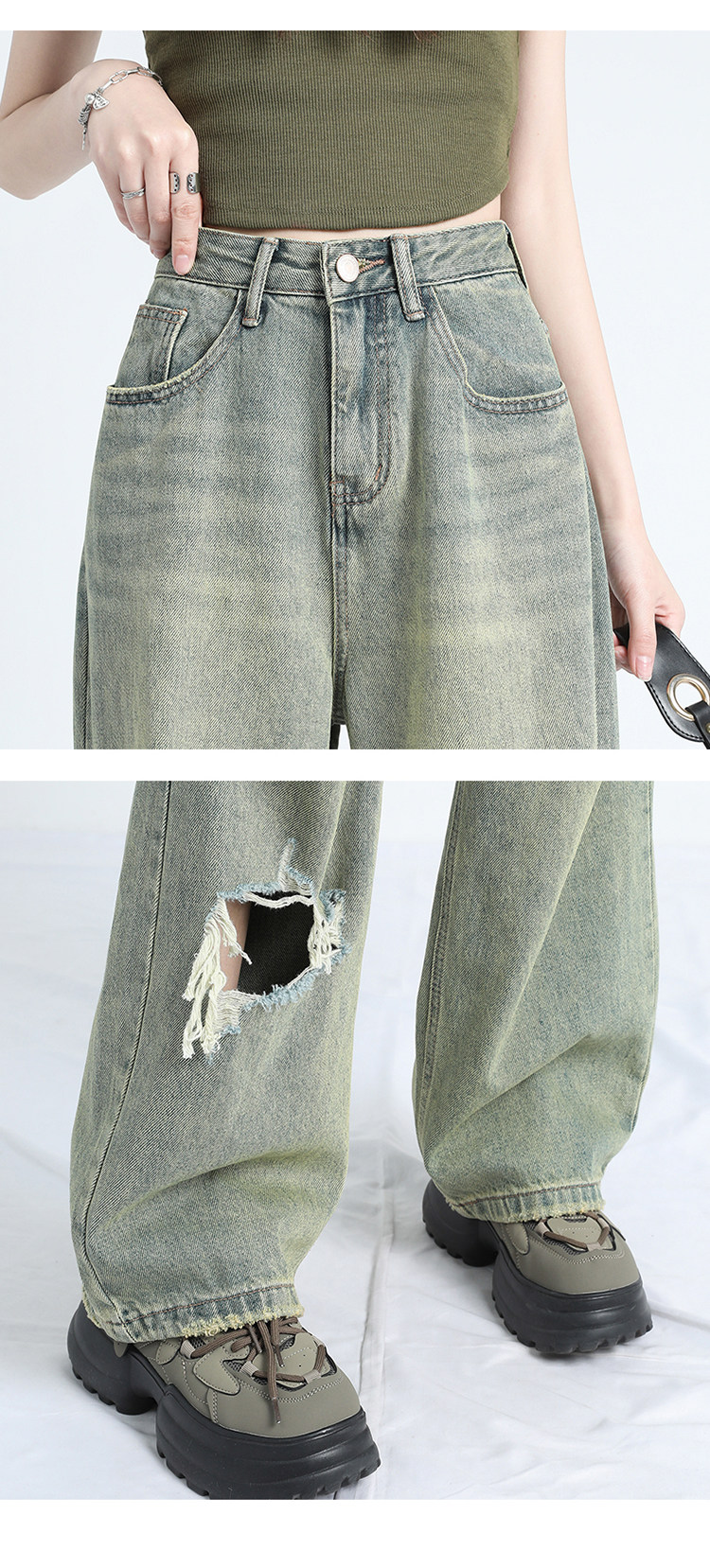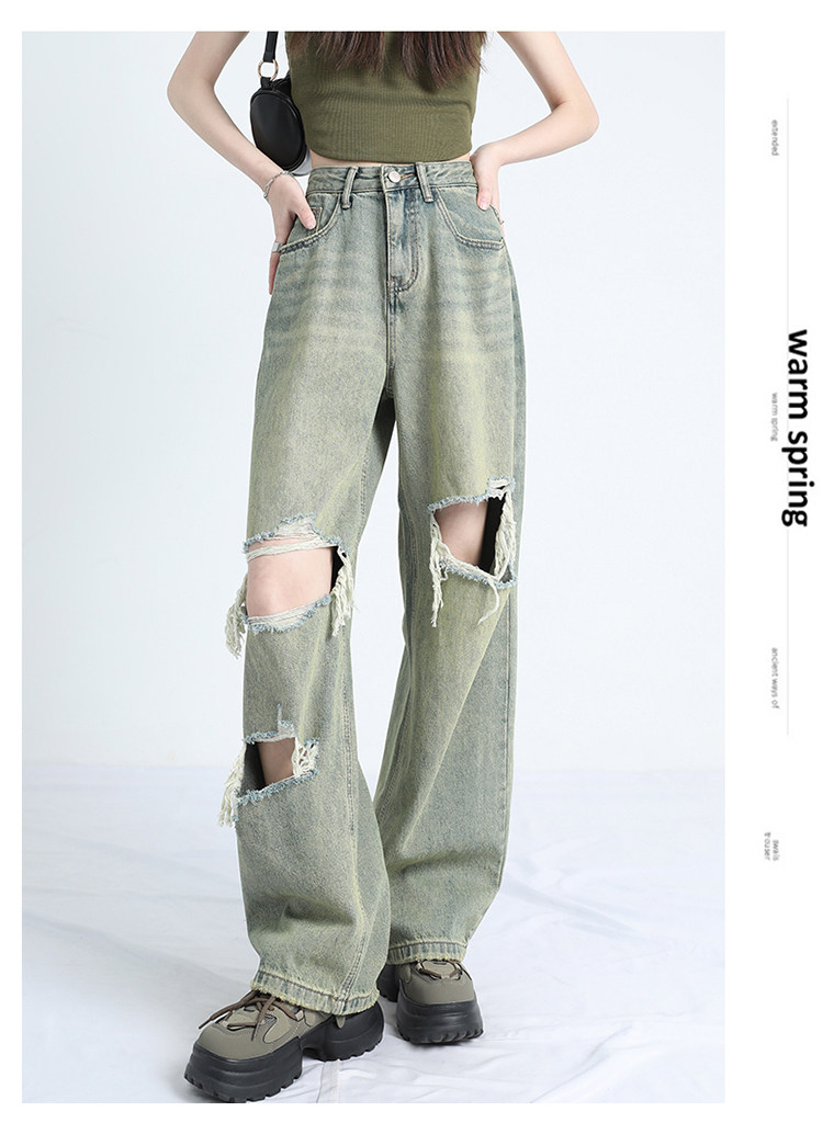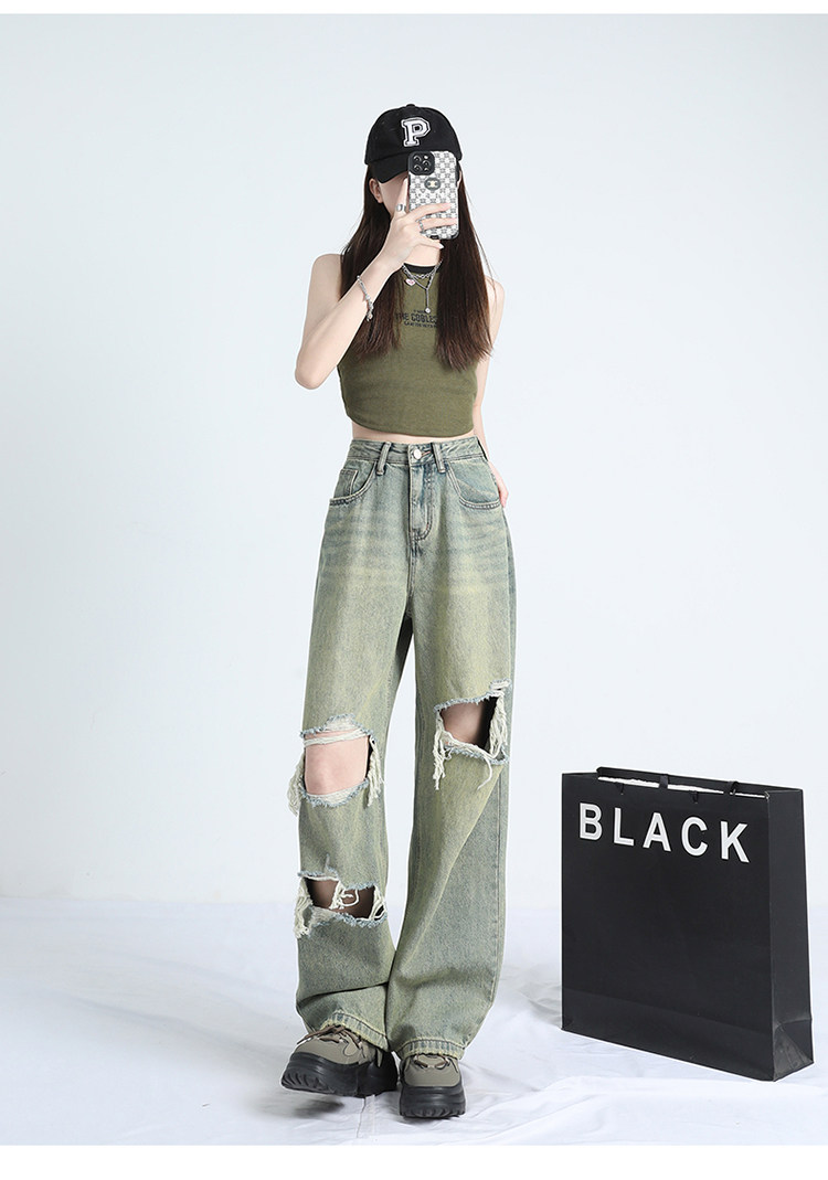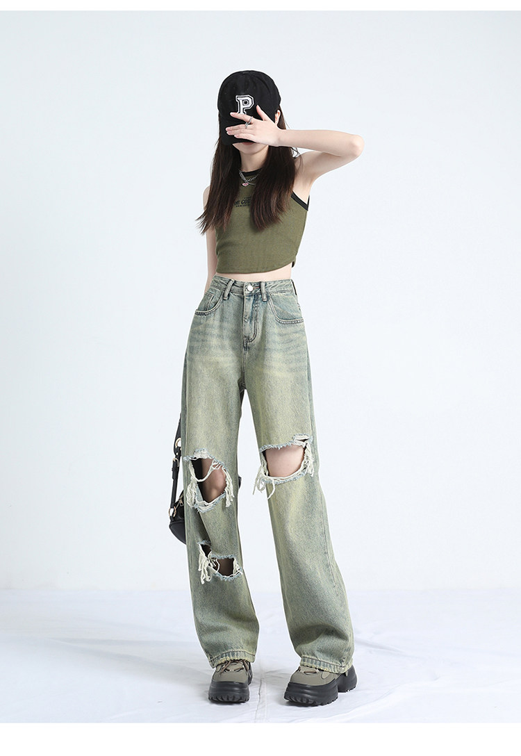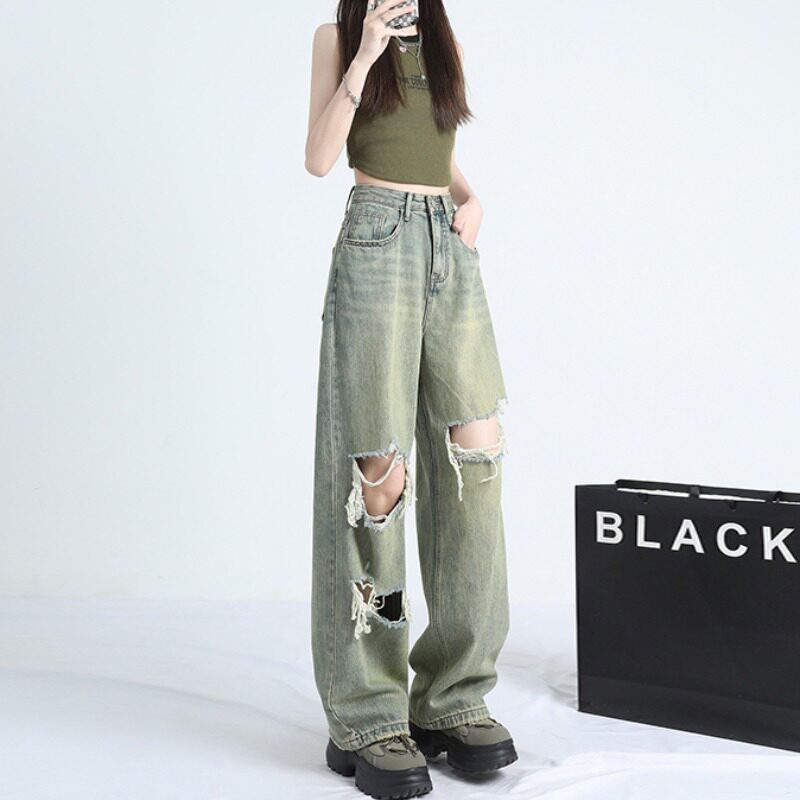 Ретро тонкие джинсы, штаны, в американском стиле, высокая талия, оверсайз, свободный крой