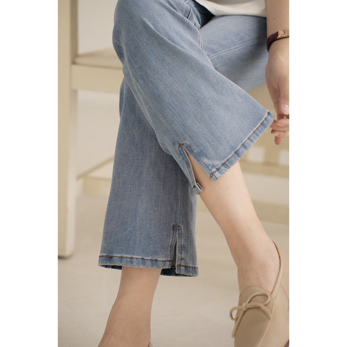 Может бежать, прыгнуть, разделите универсальную бомб с разделением брюк джинсы, леди тонкие мягкие укороченные брюки k