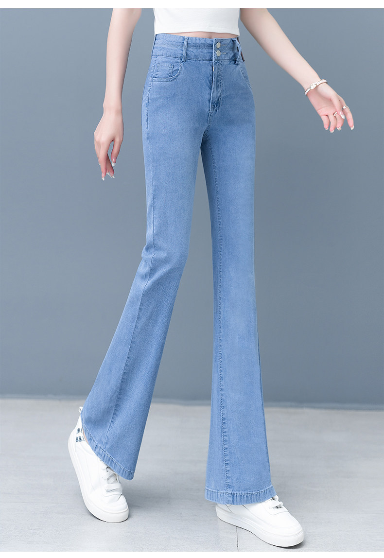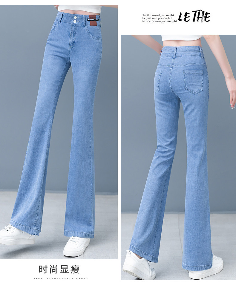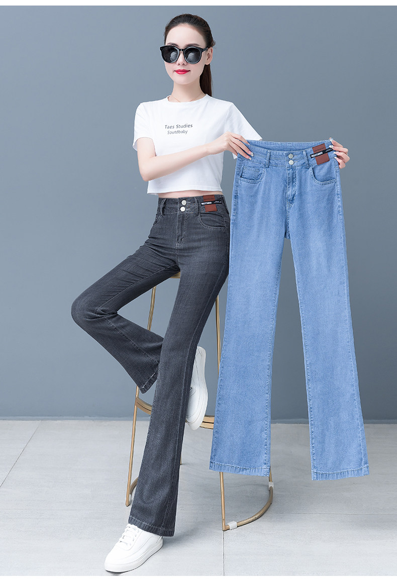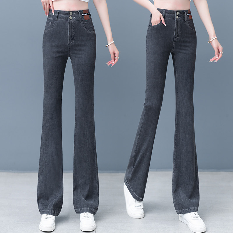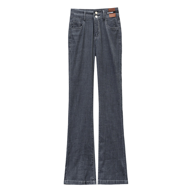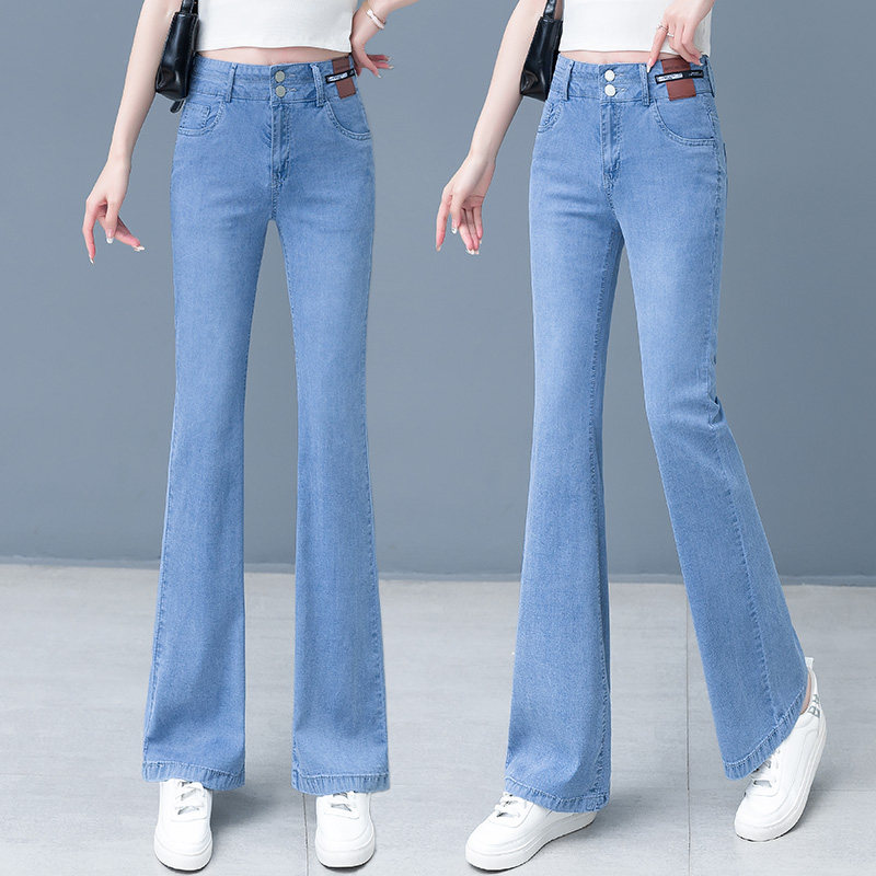 Джинсы, летние штаны, тонкие шелковые штаны-клёш, 2024 года, высокая талия, свободный прямой крой, стройный силуэт