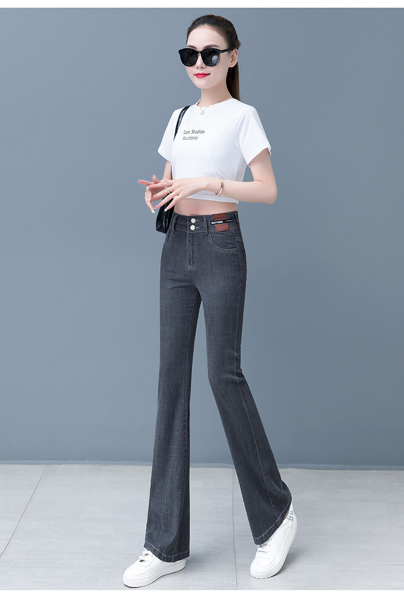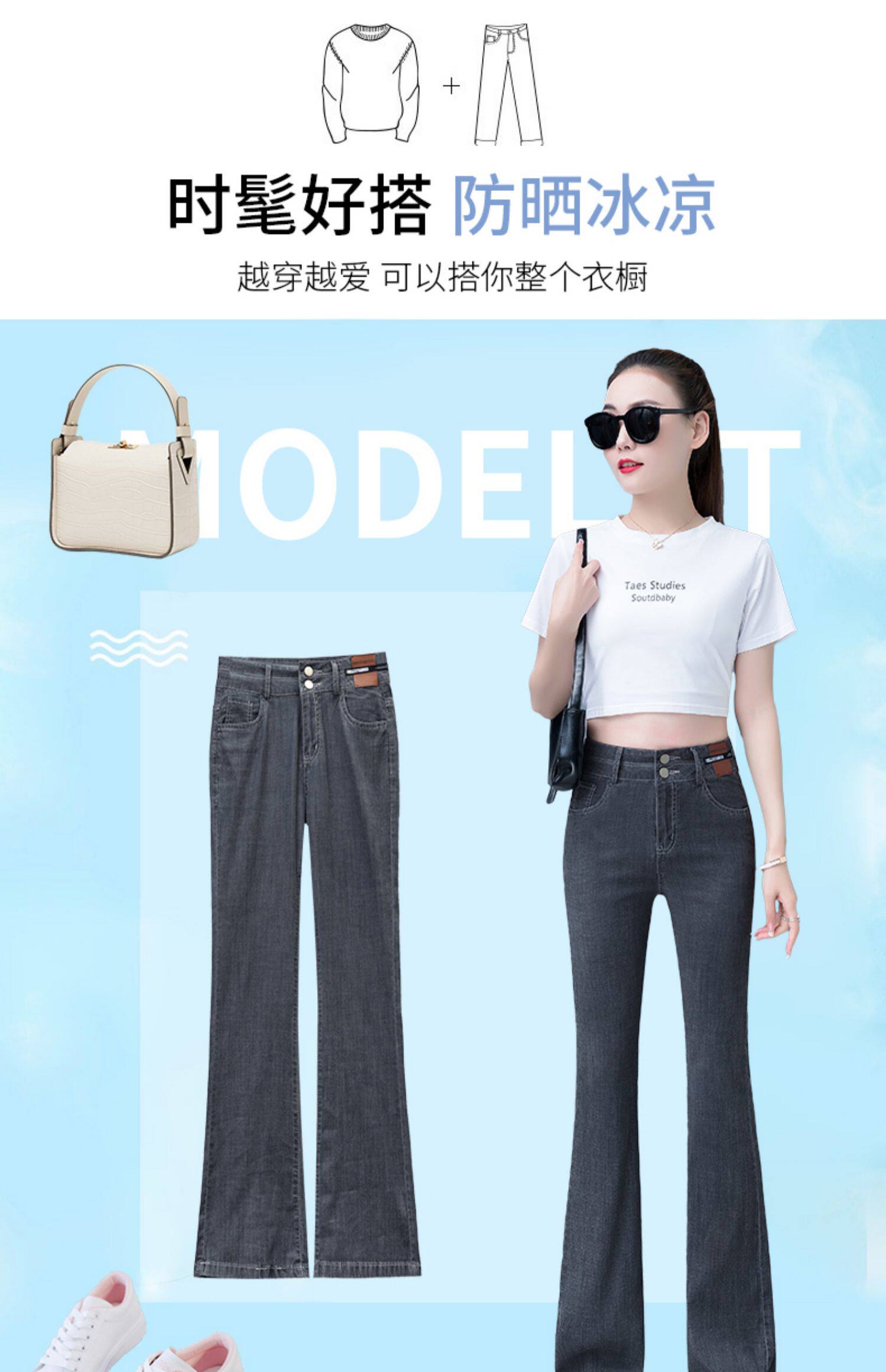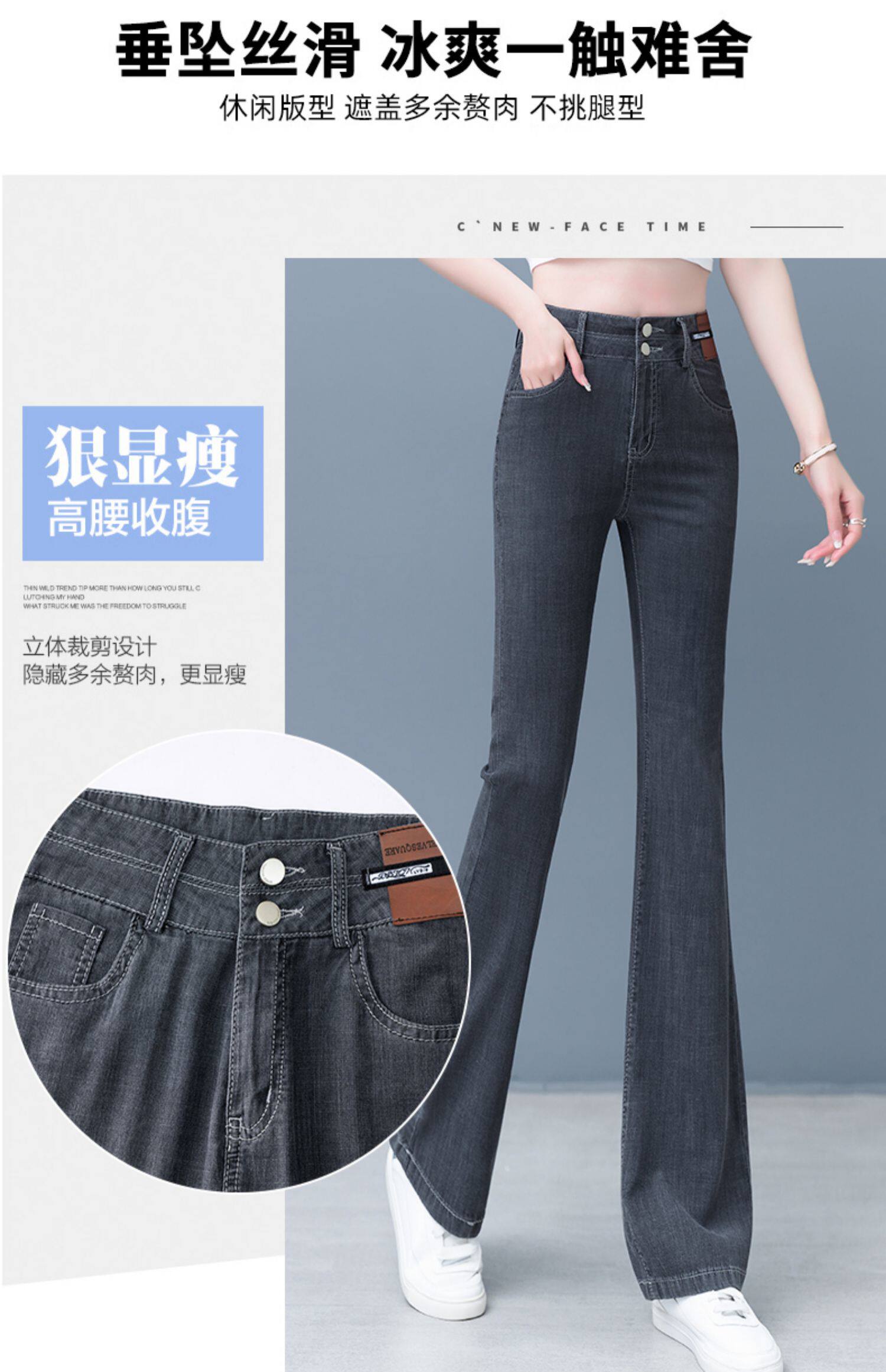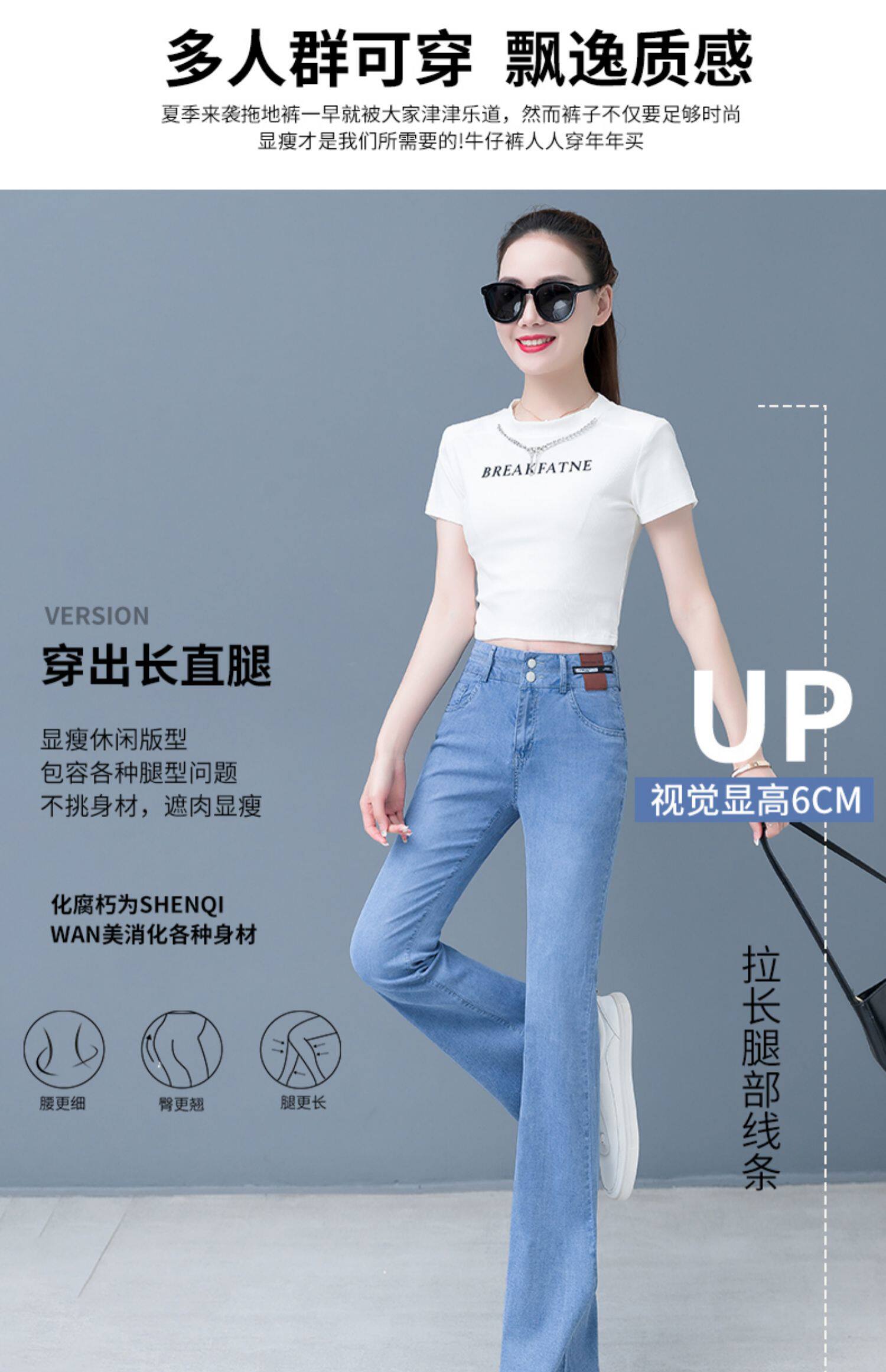 Джинсы, летние штаны, тонкие шелковые штаны-клёш, 2024 года, высокая талия, свободный прямой крой, стройный силуэт