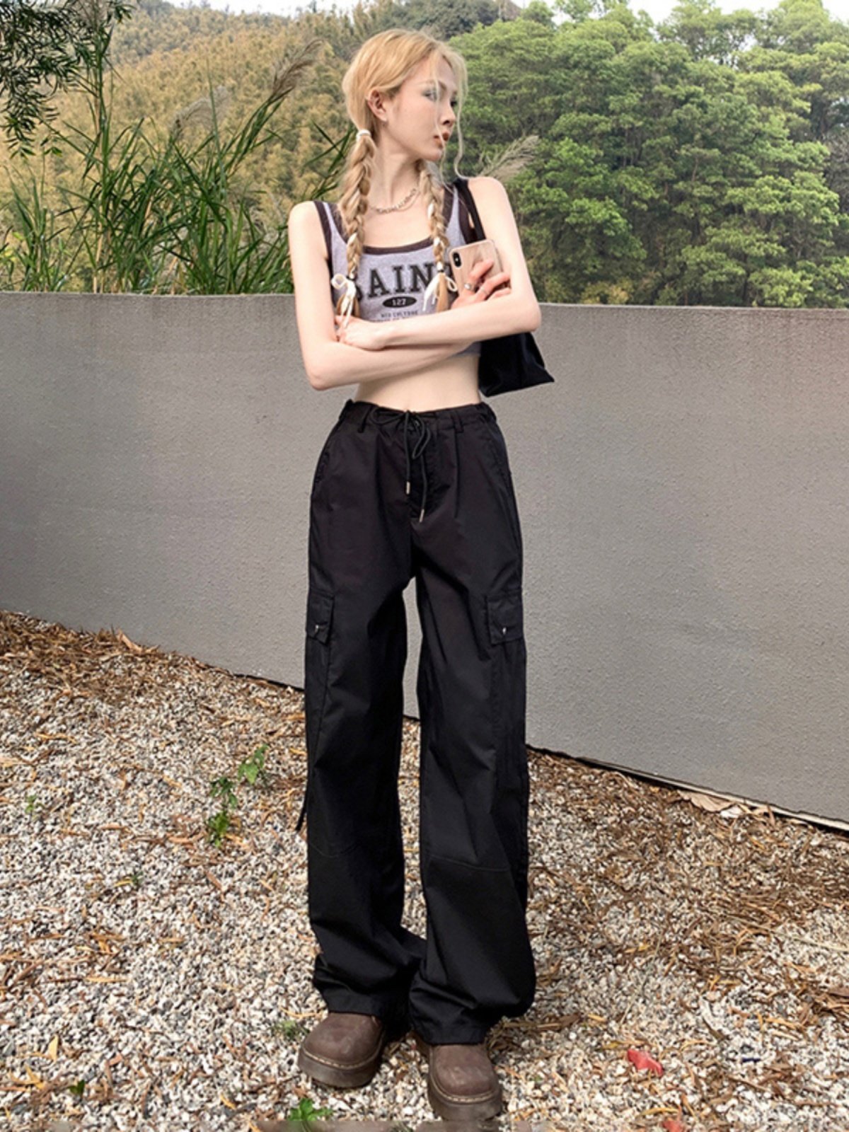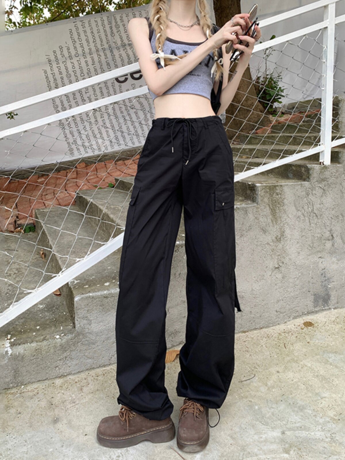 Черная униформа медсестры, тонкие приталенные ретро штаны для отдыха, в американском стиле, высокая талия, оверсайз, свободный прямой крой
