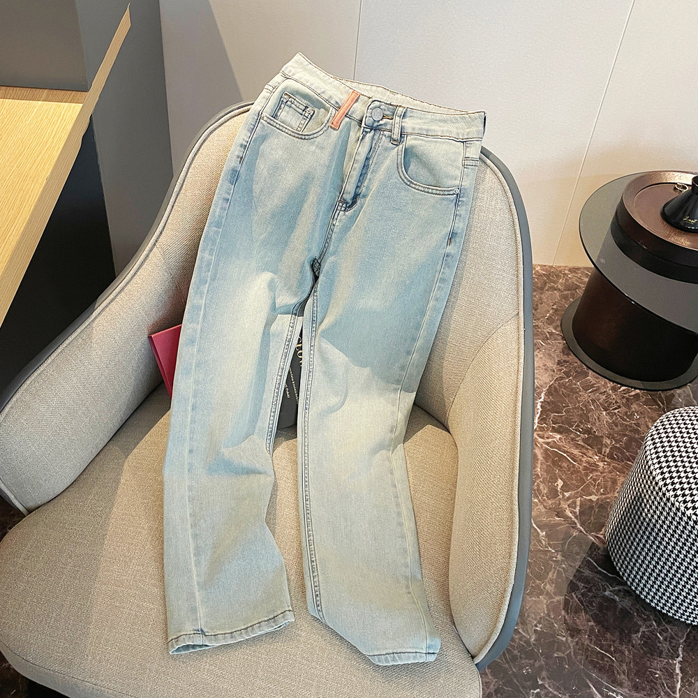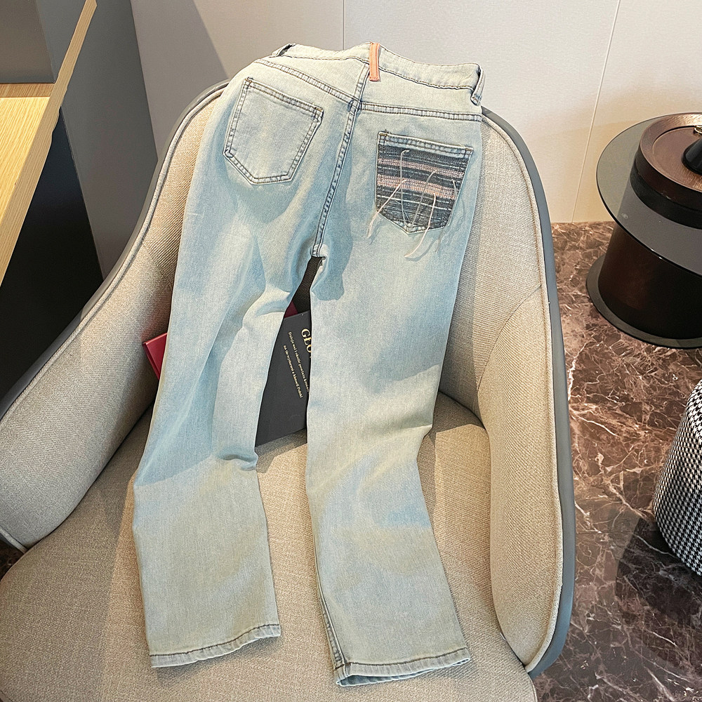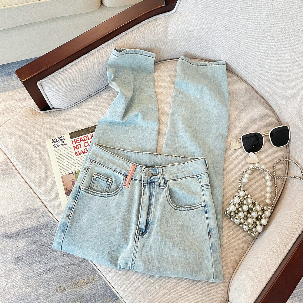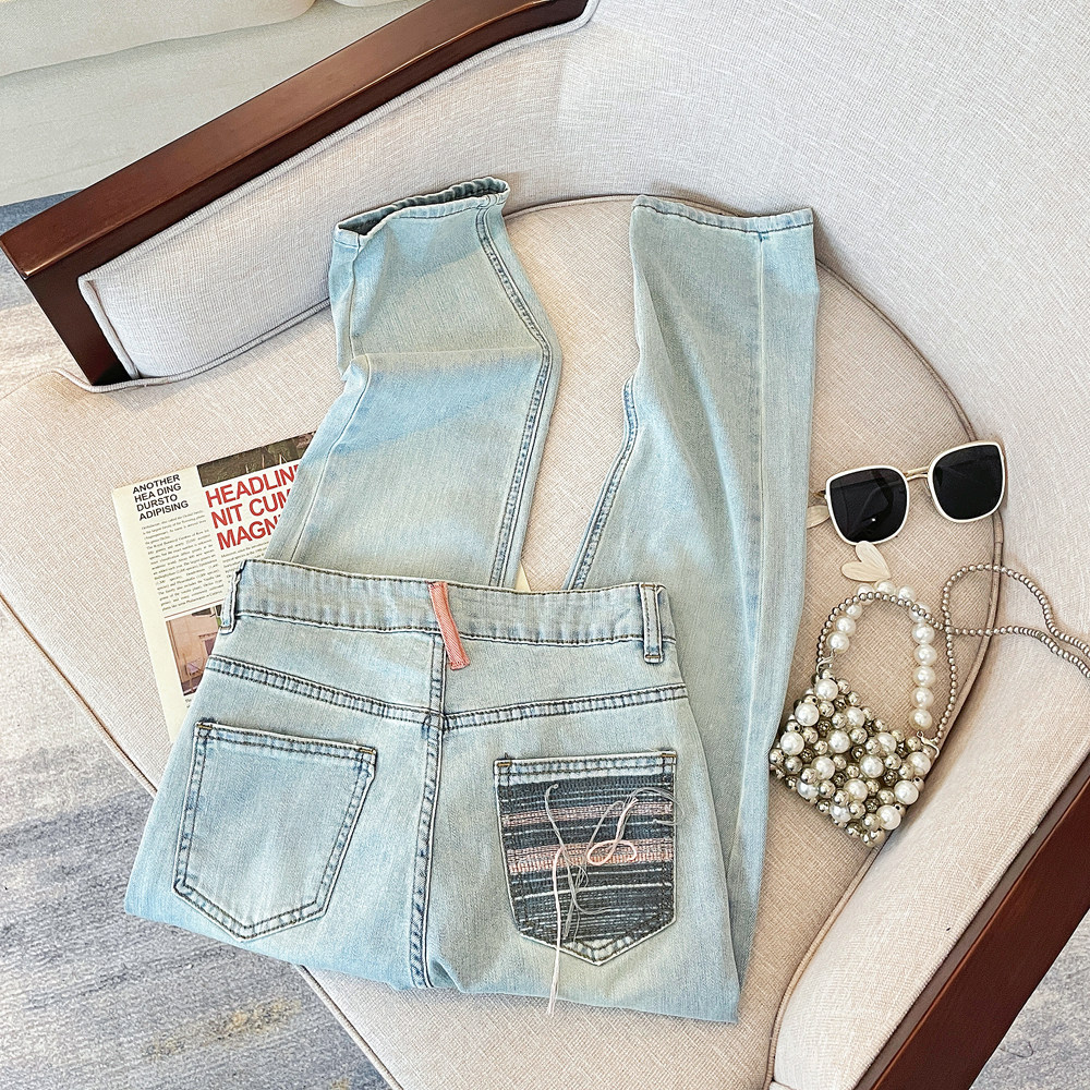 Летние светлые прямые свободные джинсы, штаны, подходят для подростков, с вышивкой, для формы тела «груша»