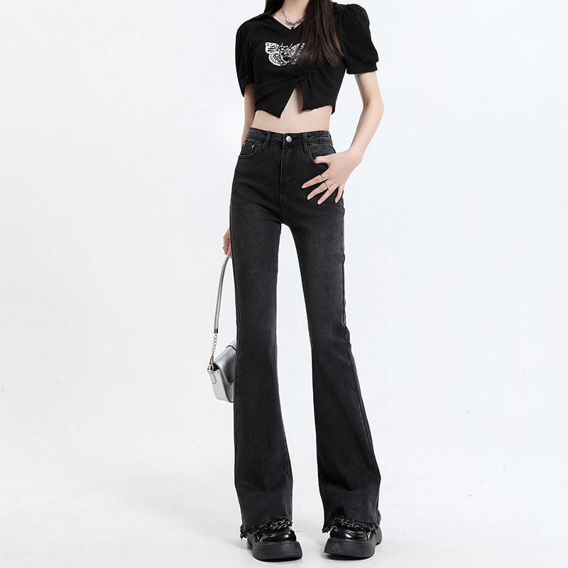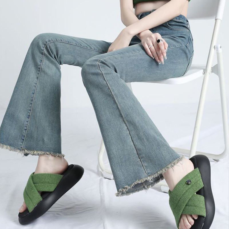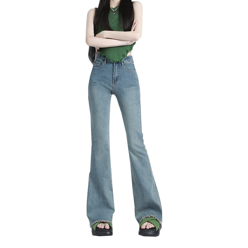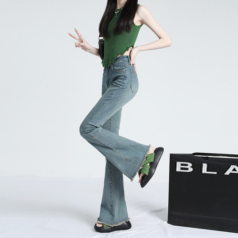 Летние джинсы, штаны, приталенные длинные ретро штаны-клёш, высокая талия, в американском стиле