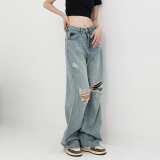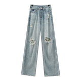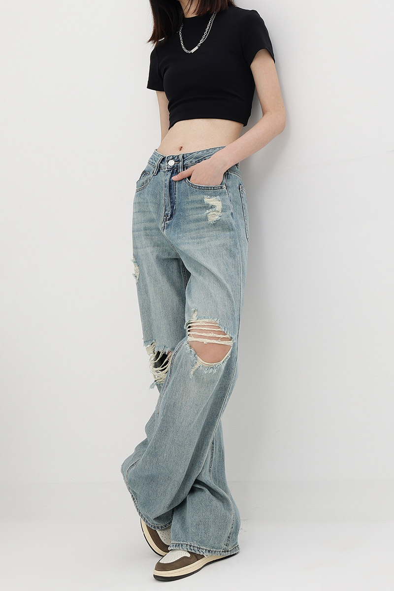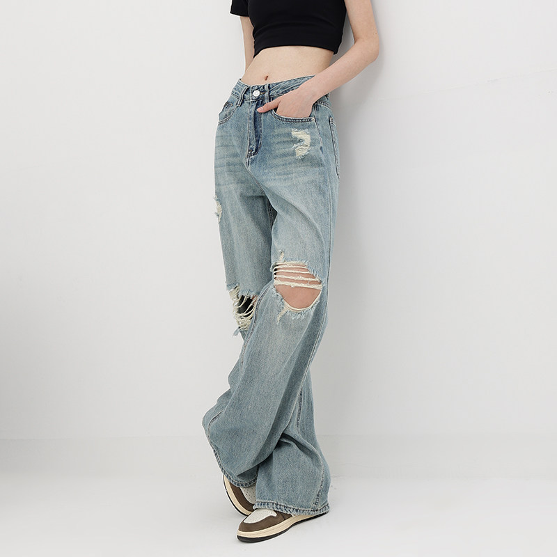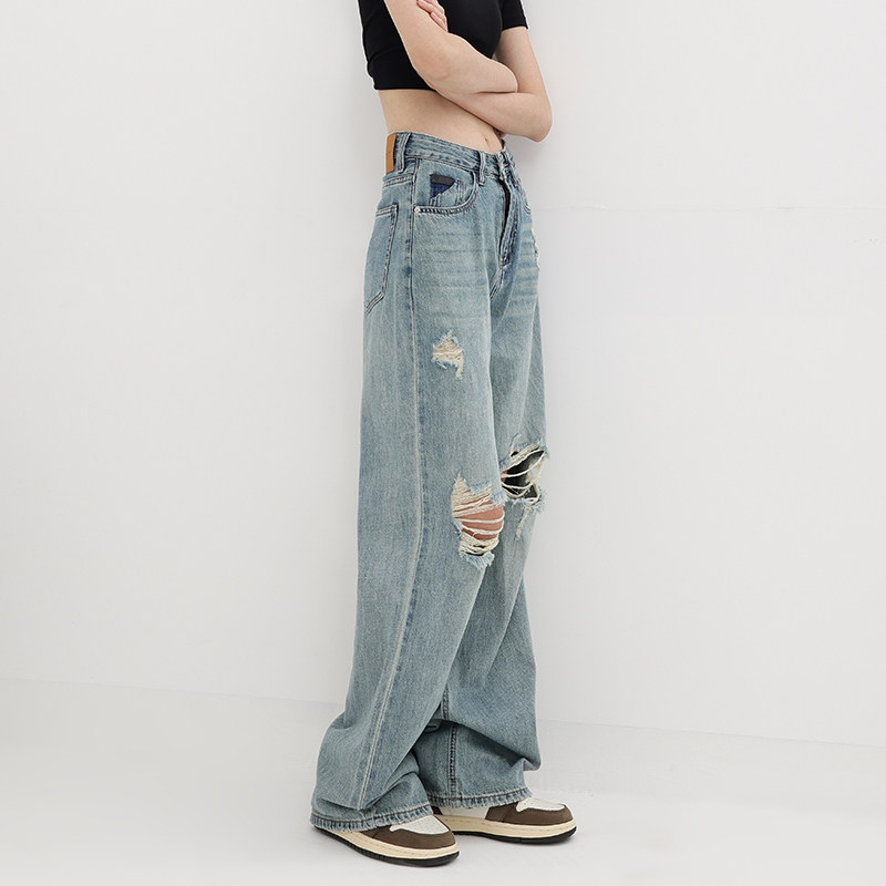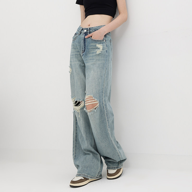 Летние джинсы, штаны, в американском стиле, свободный прямой крой