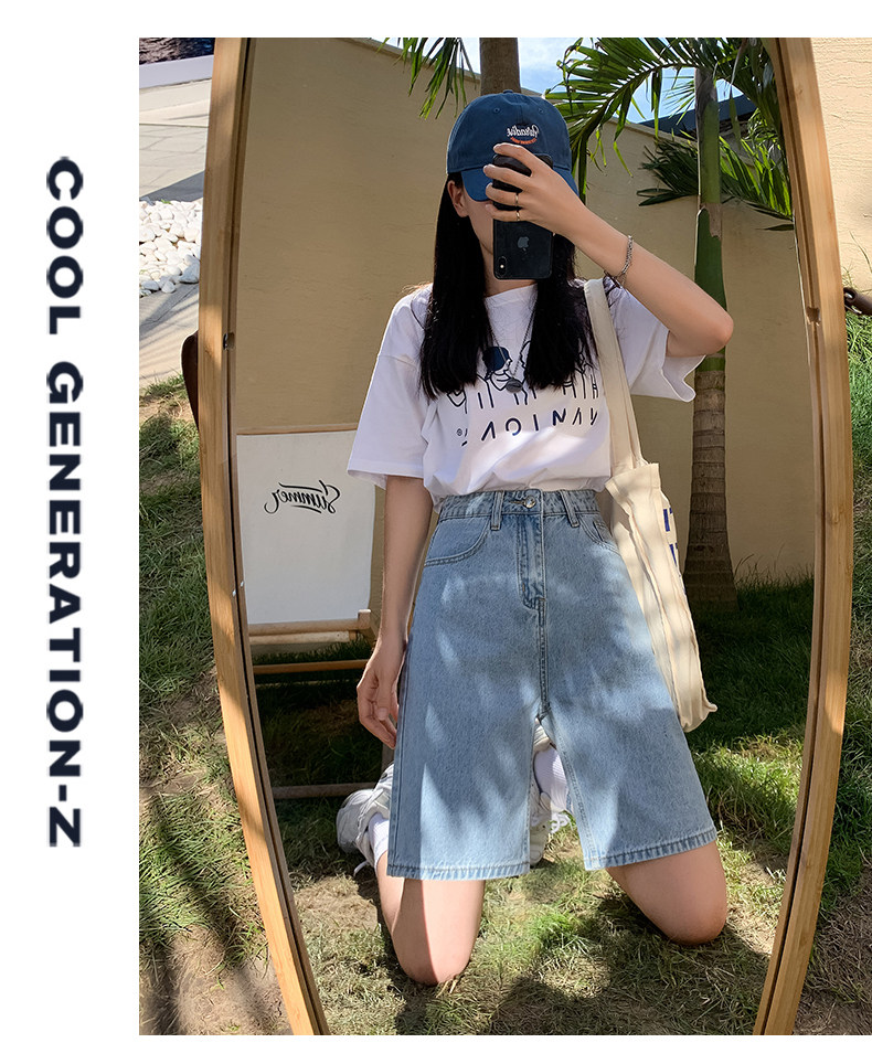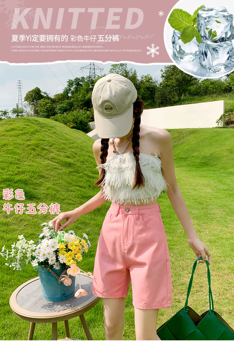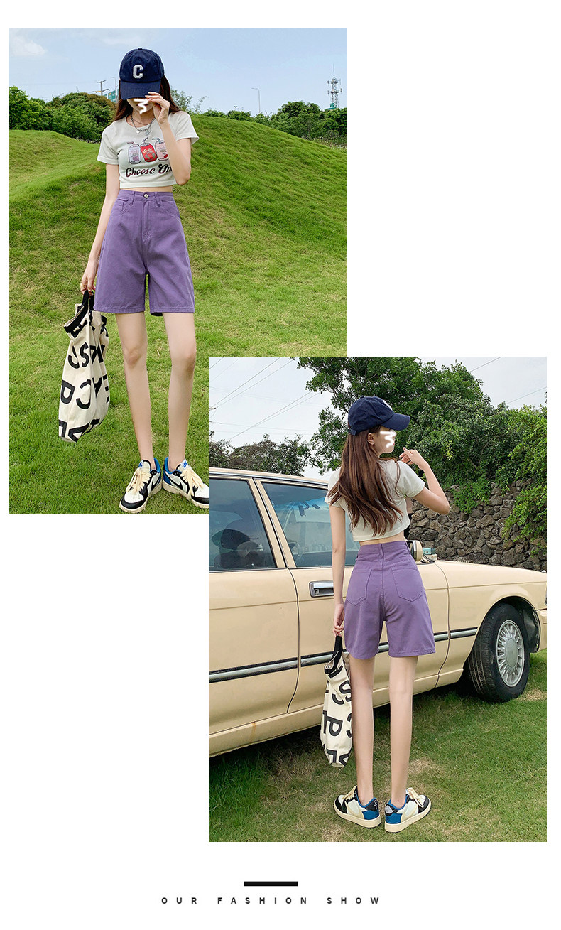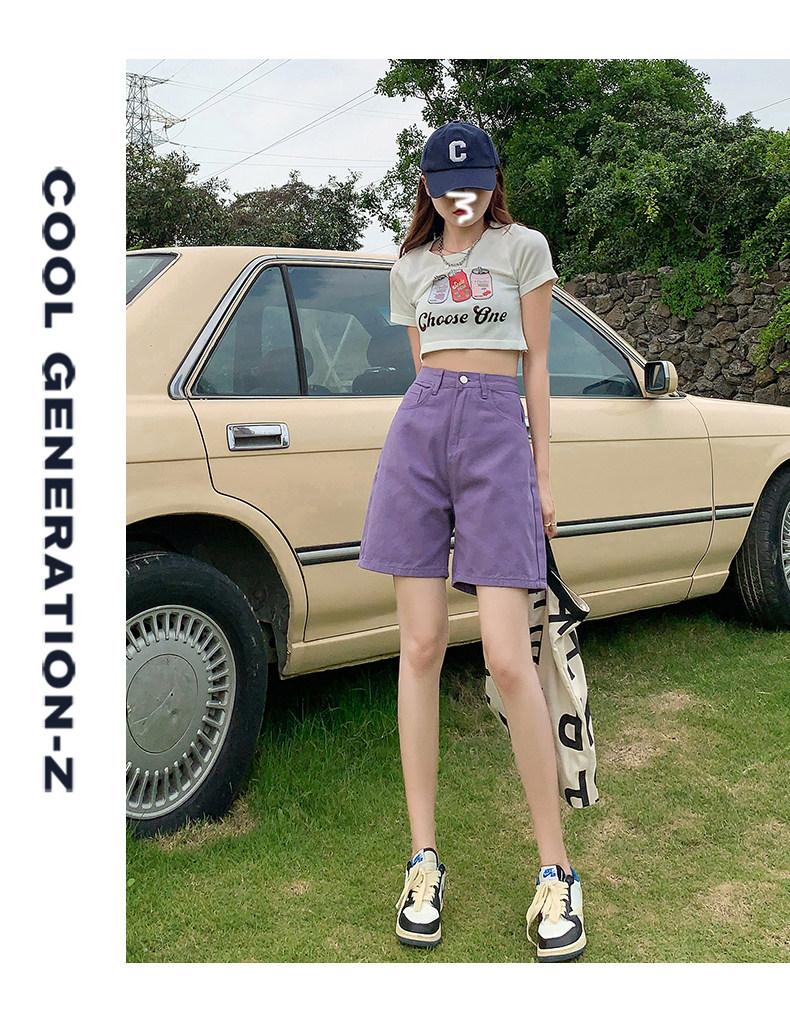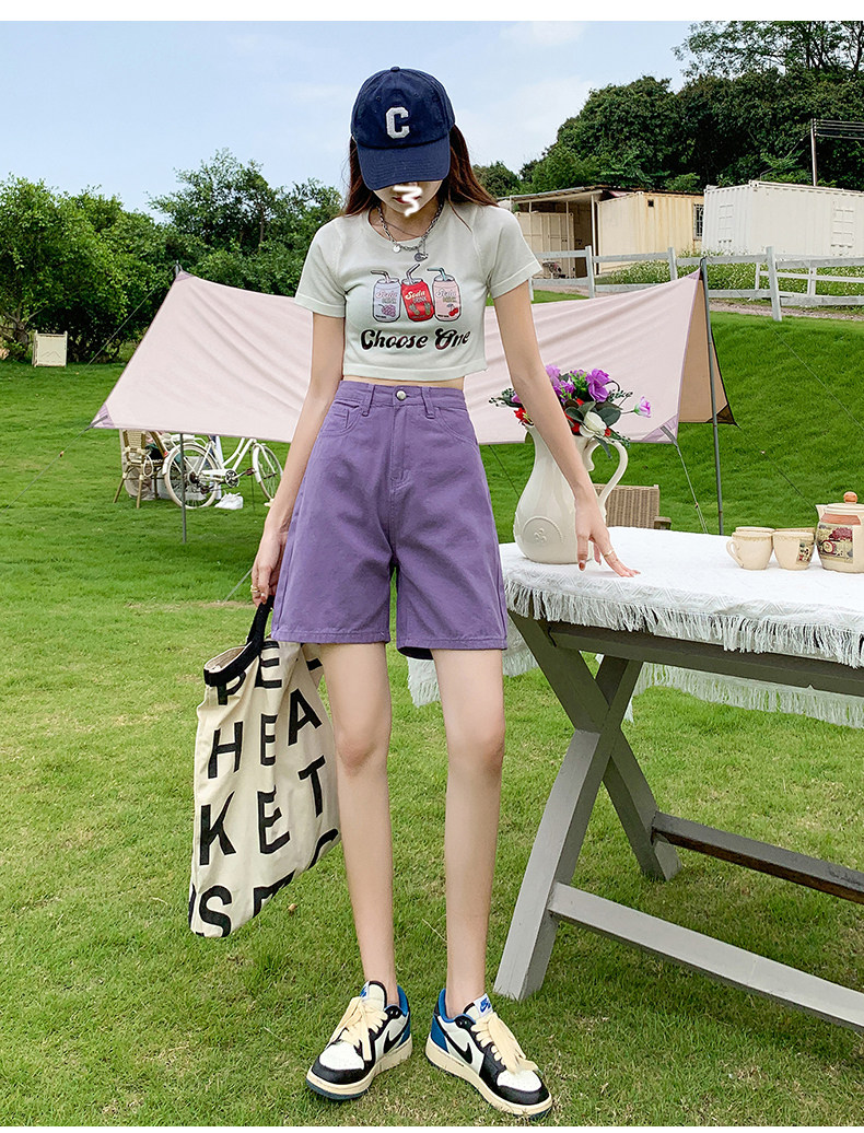 Сиреневая джинсовая юбка, шорты, летние штаны, коллекция 2023, высокая талия, свободный прямой крой, стройный силуэт