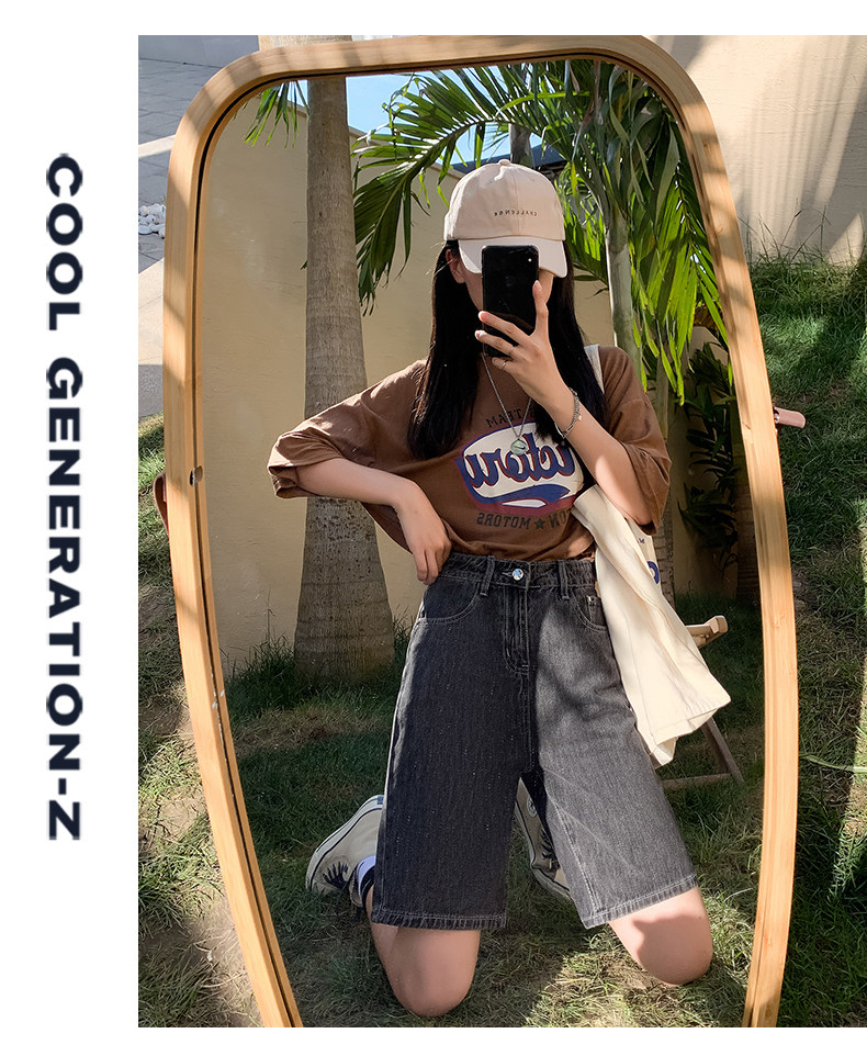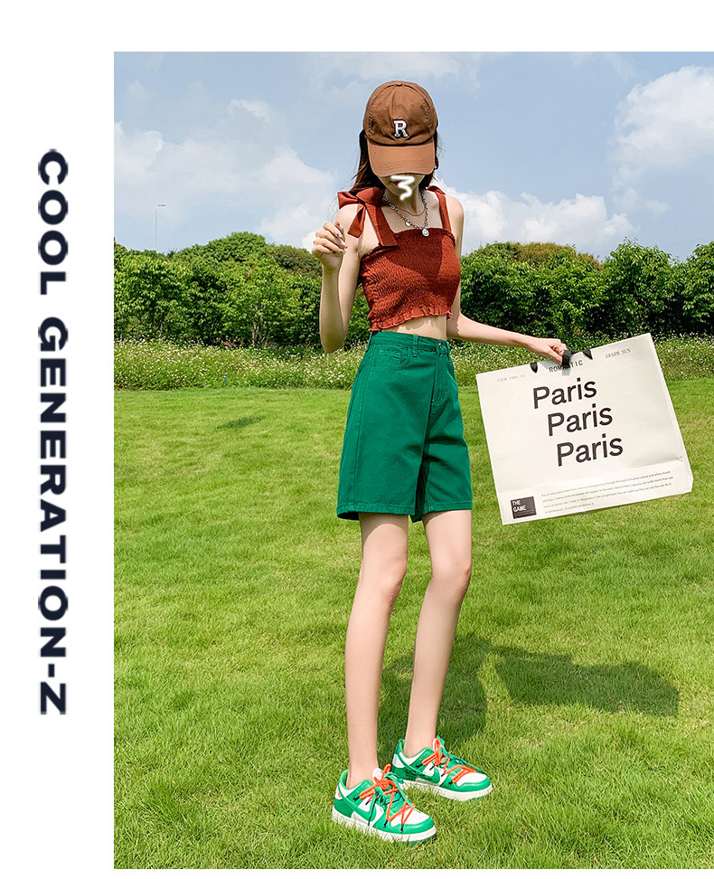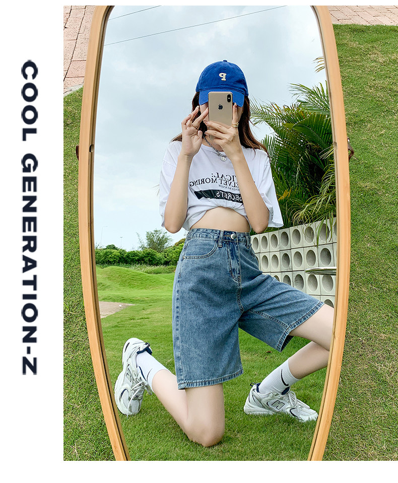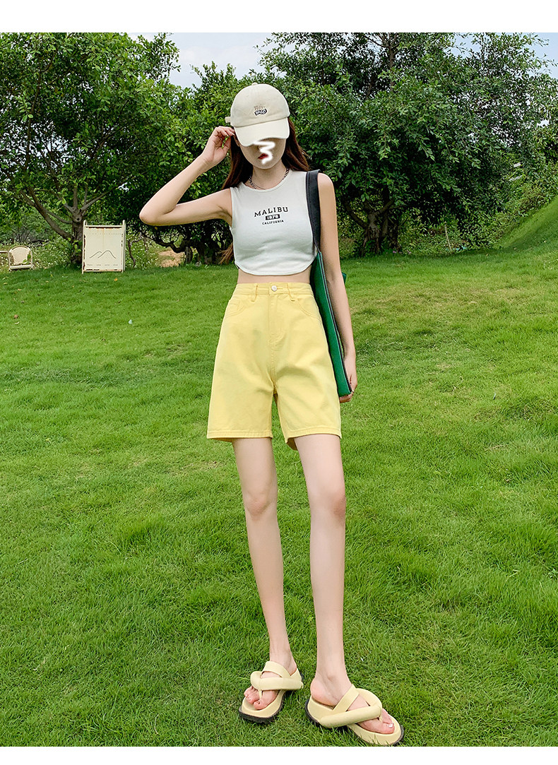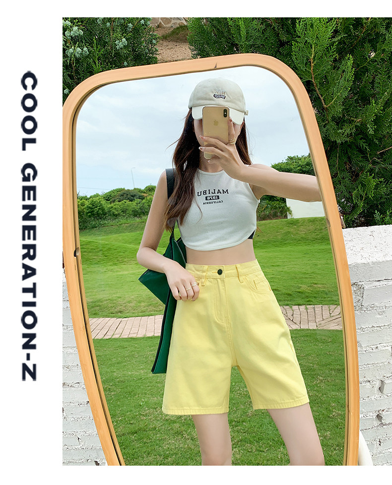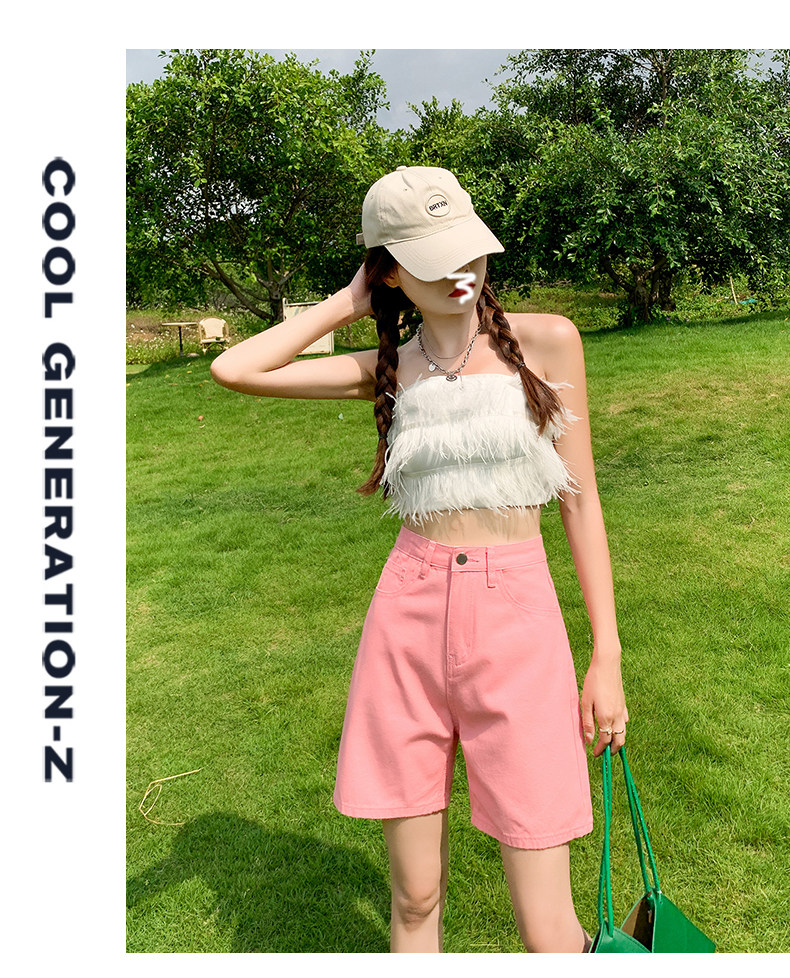 Сиреневая джинсовая юбка, шорты, летние штаны, коллекция 2023, высокая талия, свободный прямой крой, стройный силуэт