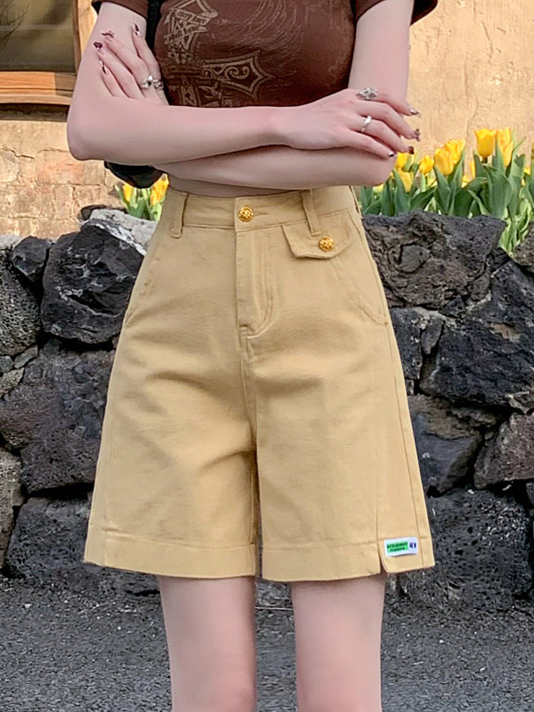 Желтая джинсовая юбка, демисезонные шорты, приталенные леггинсы, штаны, свободный прямой крой, высокая талия, А-силуэт