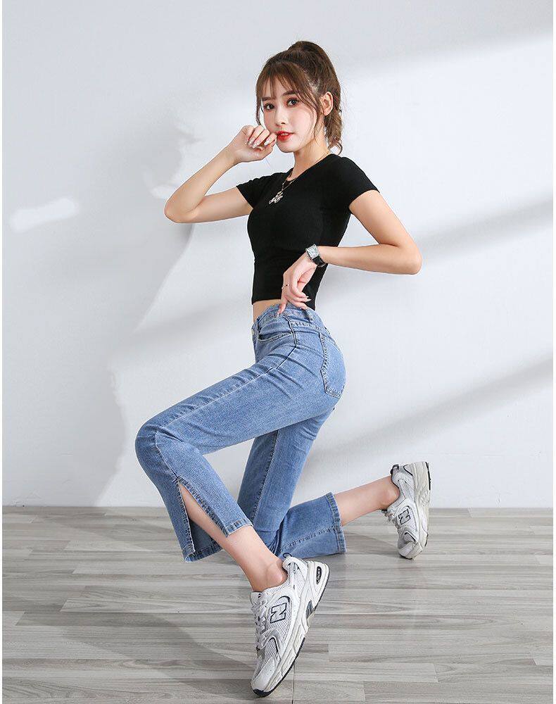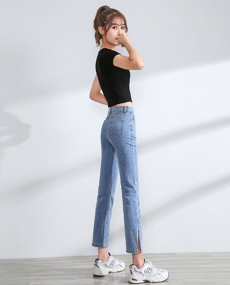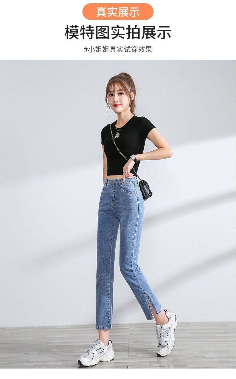 Тонкие джинсы, приталенные эластичные штаны, высокая талия, подходит для подростков, свободный прямой крой