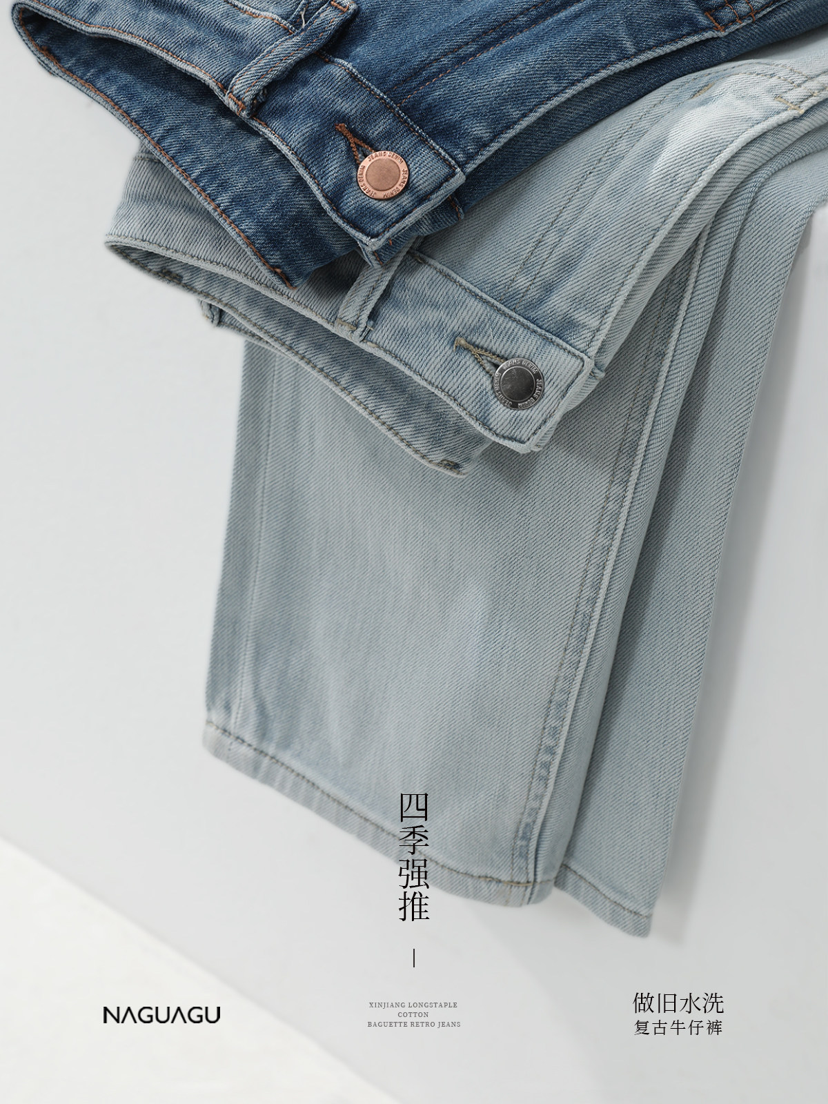 | Сложность в выборе 度Старый процесс мытья воды, Согласно летним потребностям Вымойте три разных уровня джинсового синего на разных уровнях воды, чтобы мода была более разнообразной После -процессДжинсовая ткань нелегко исчезать и исчезать, Чувство качества более гарантировано И джинсовая ткань после промывания мягче и мягче, и она не жесткая. | ||