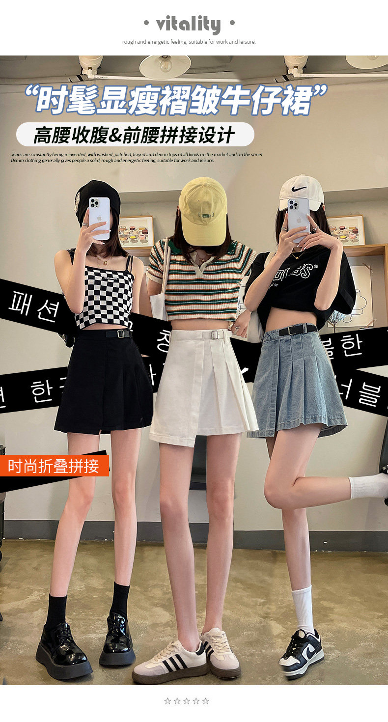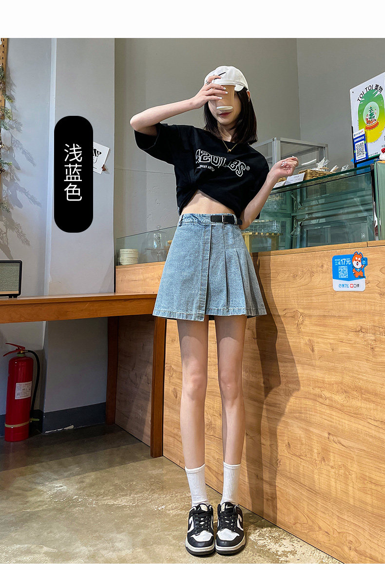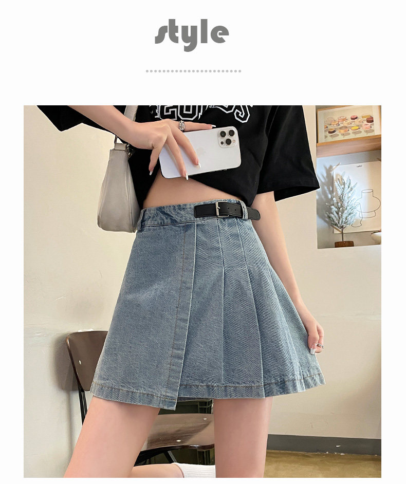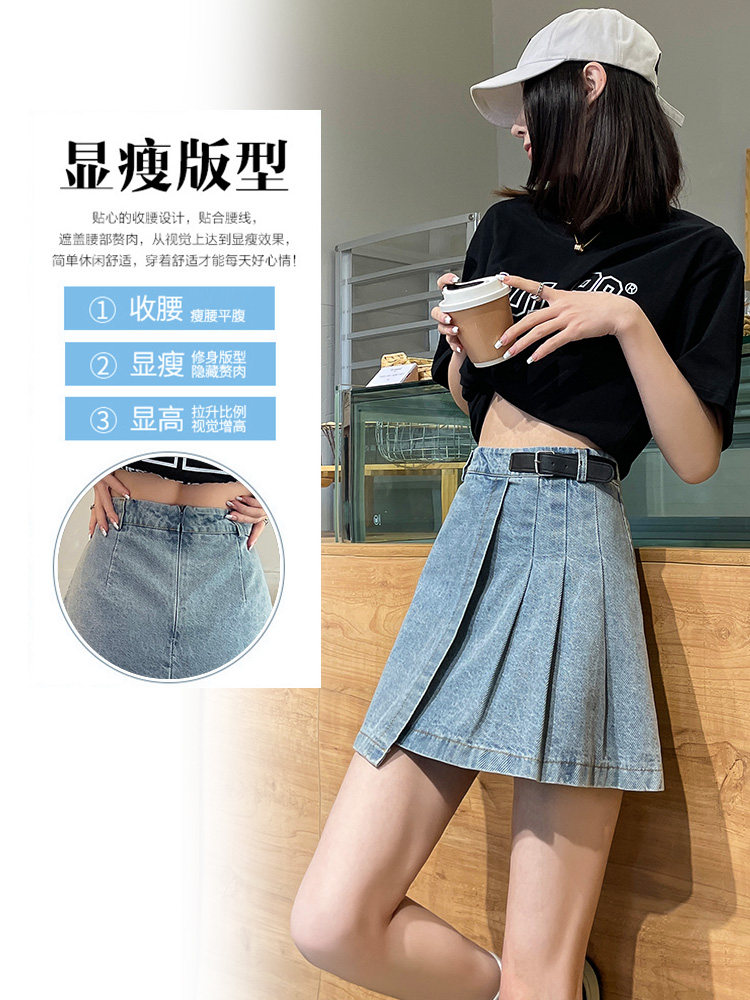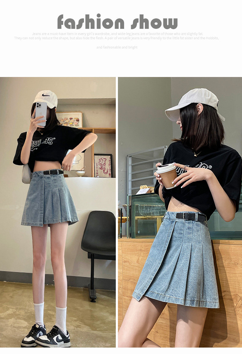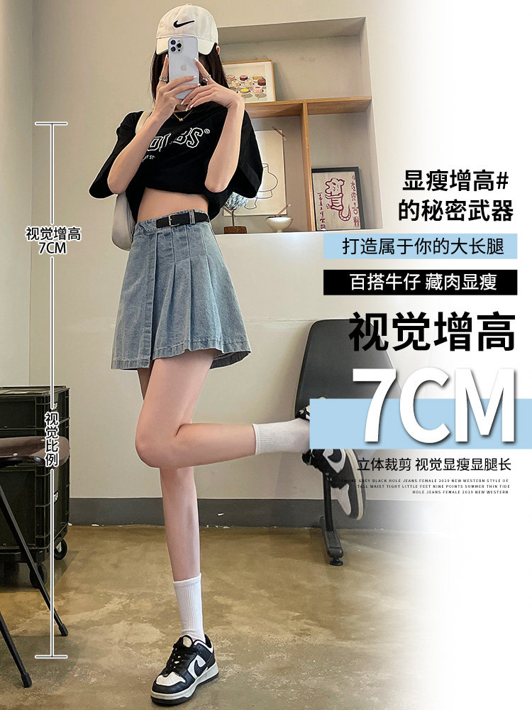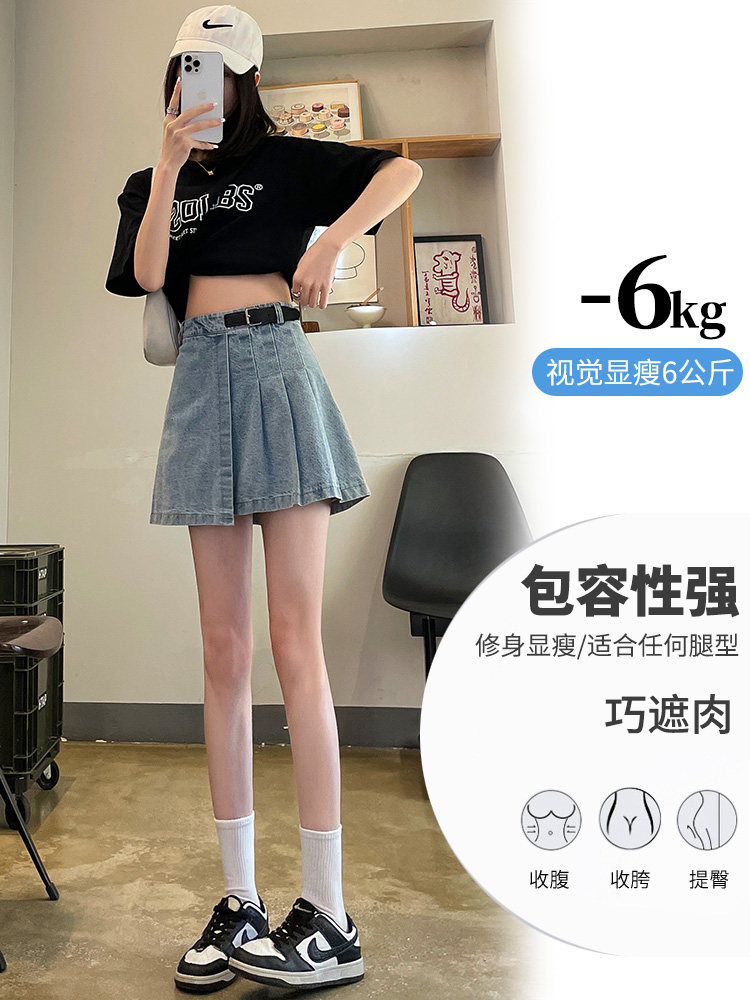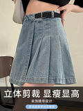 Светлая джинсовая летняя тонкая юбка в складку, мини-юбка, 2024 года, высокая талия, А-силуэт