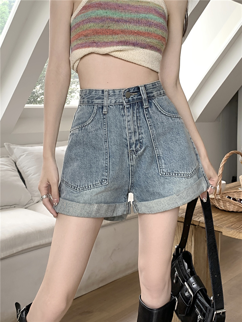 Тонкие летние штаны, джинсовые шорты, высокая талия, А-силуэт, по фигуре, свободный крой