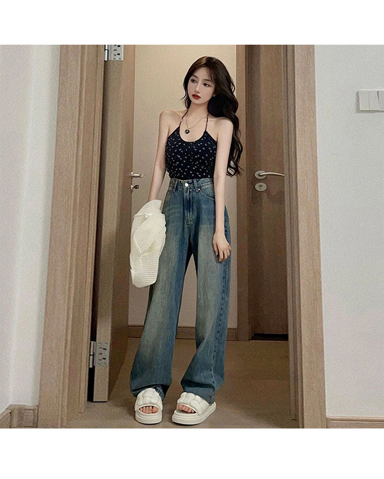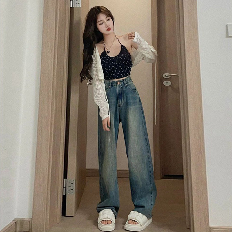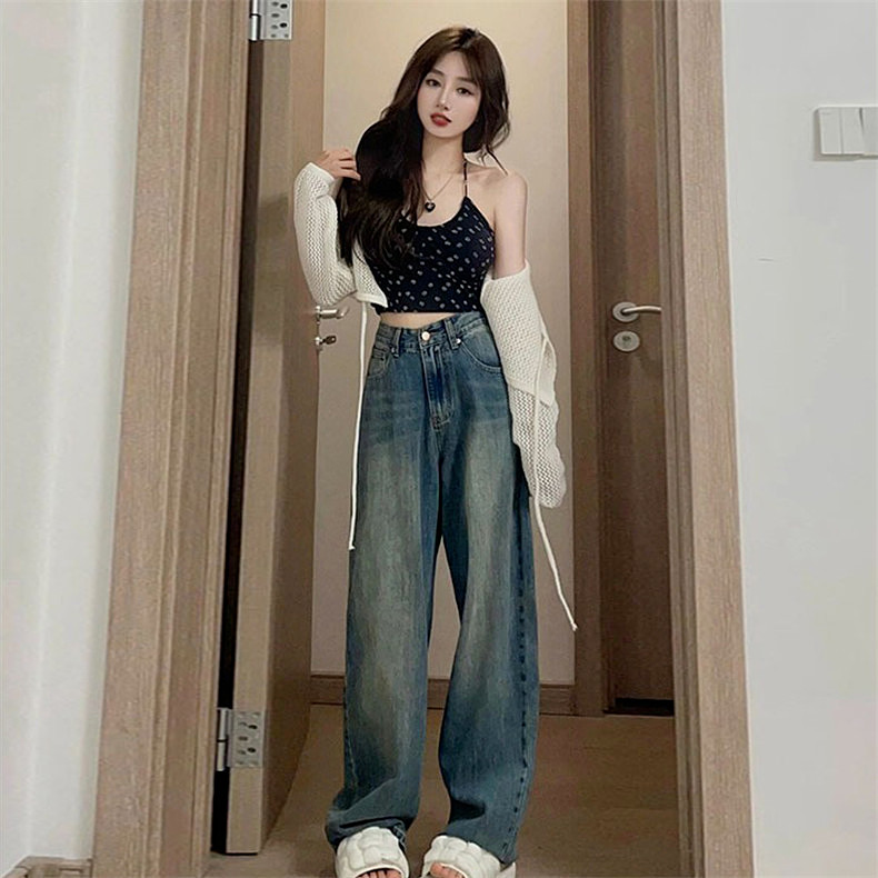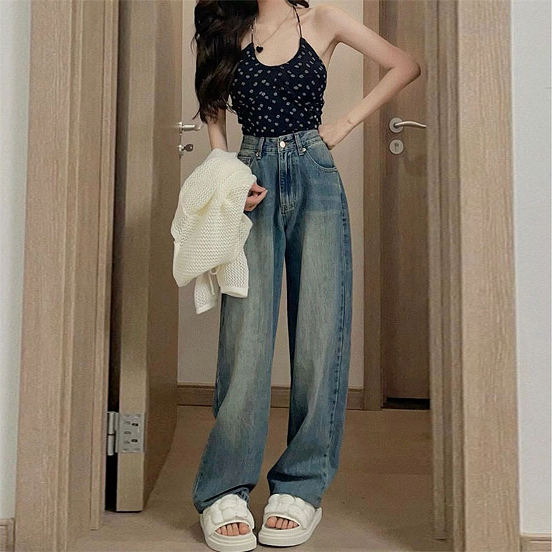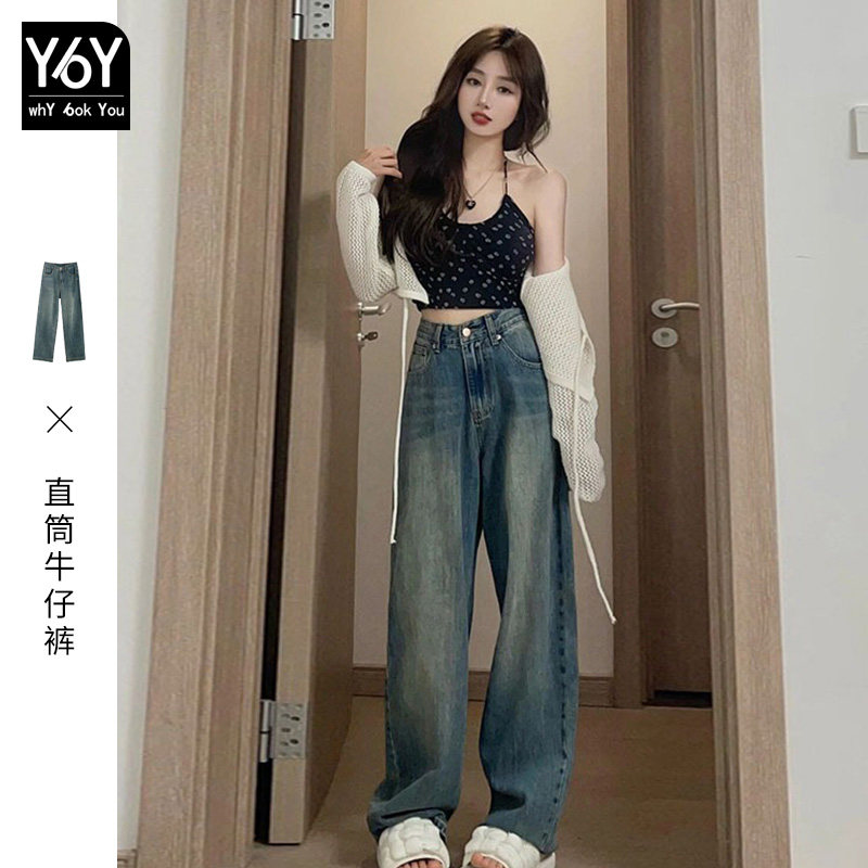 Прямые свободные джинсы, осенние тонкие ретро штаны, в американском стиле, свободный крой, высокая талия