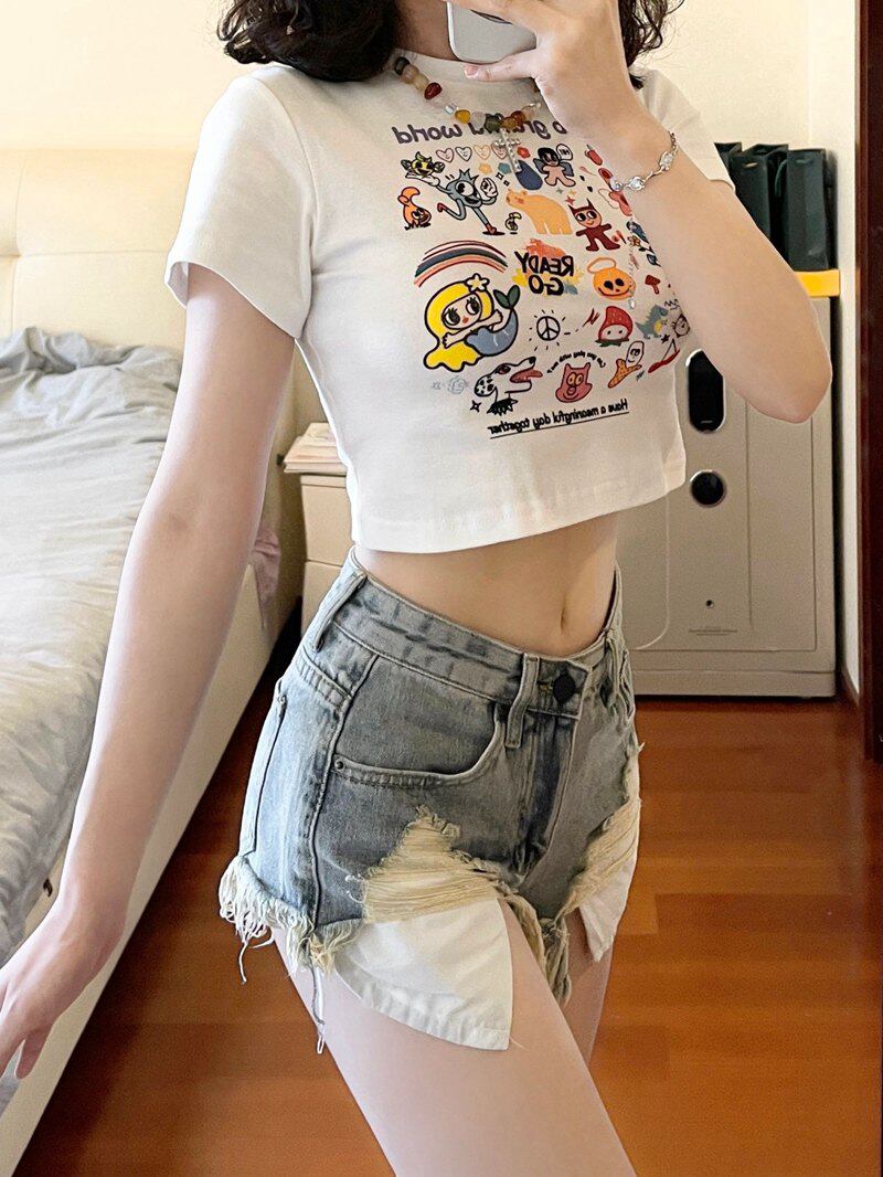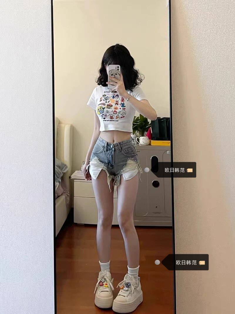 Джинсовая юбка, шорты, дизайнерские штаны, большой размер, европейский стиль, высокая талия, тренд сезона, А-силуэт