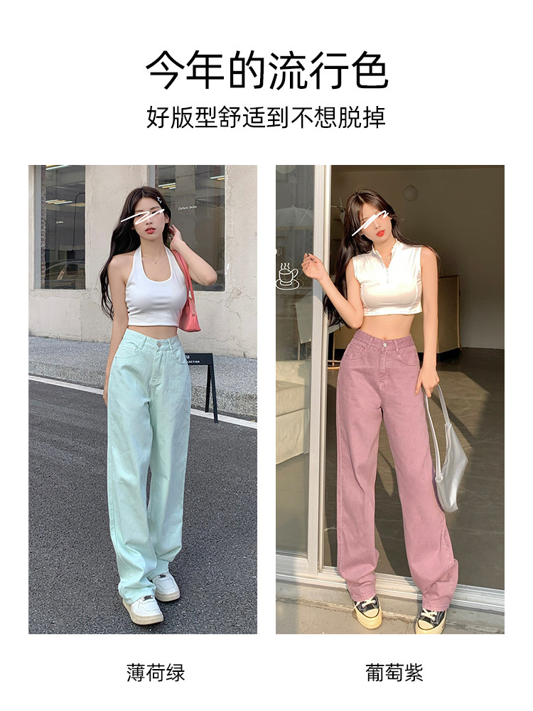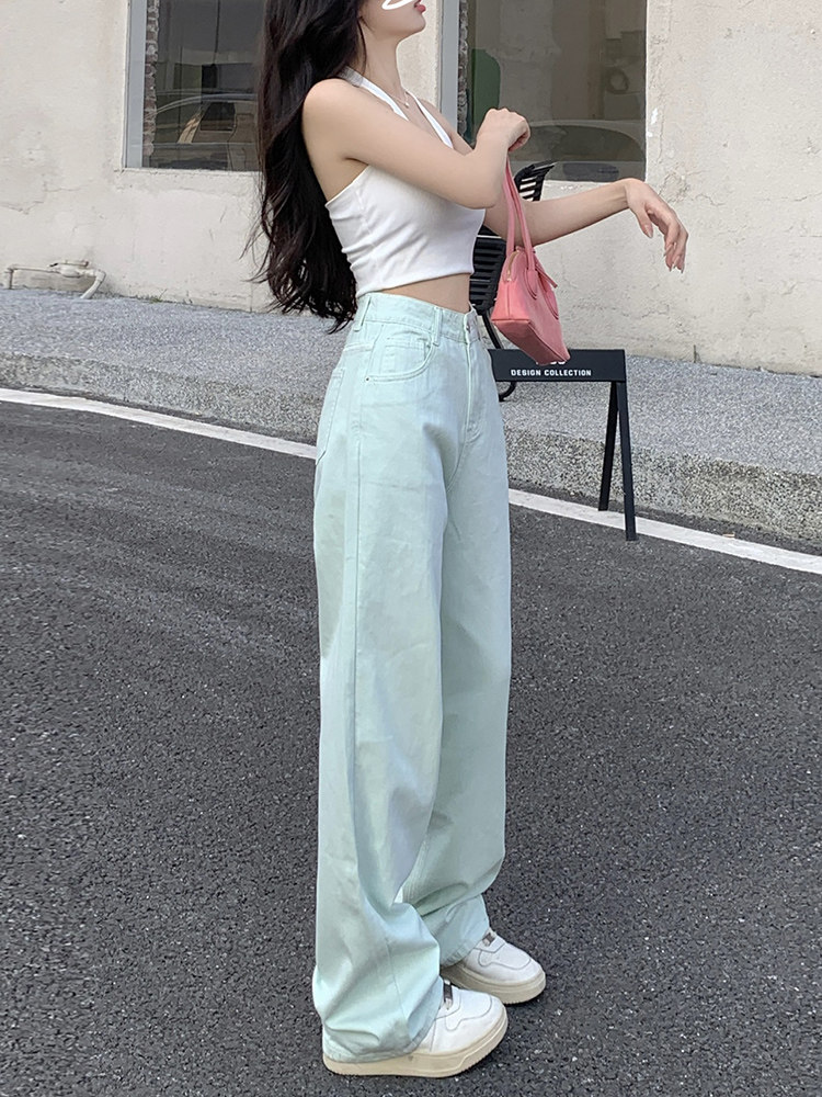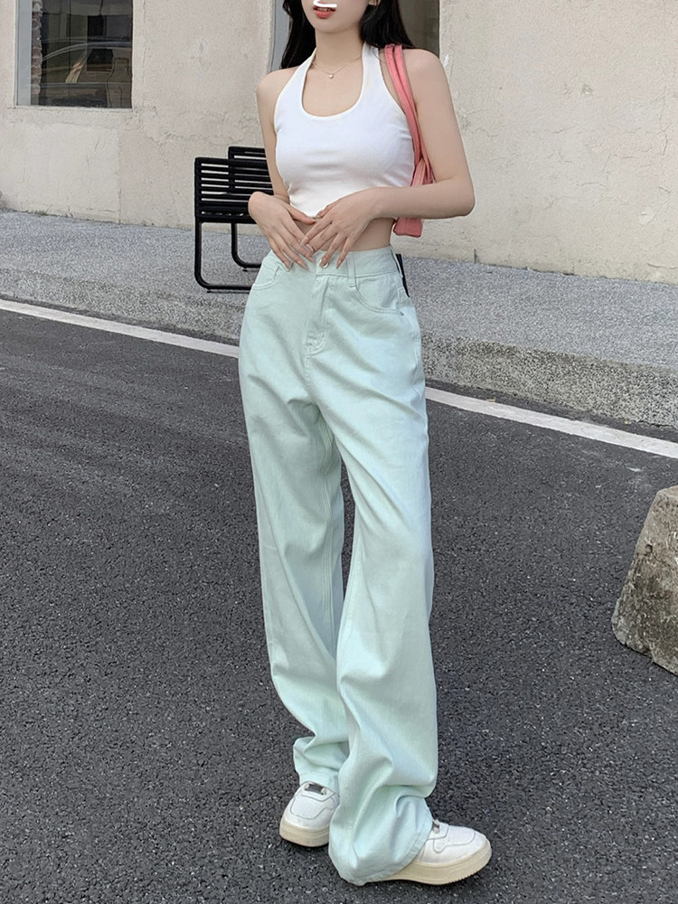 Мятные летние тонкие джинсы, приталенные штаны, высокая талия, свободный прямой крой