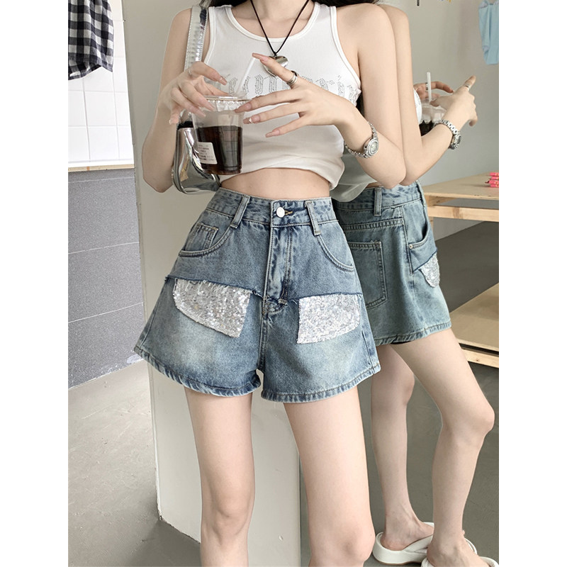 Комплект, джинсовая юбка, летние шорты, дизайнерские штаны, свободный крой, высокая талия, тренд сезона, А-силуэт