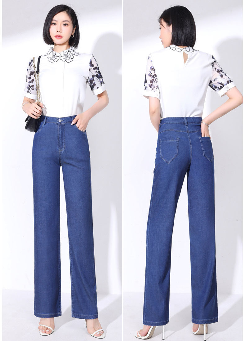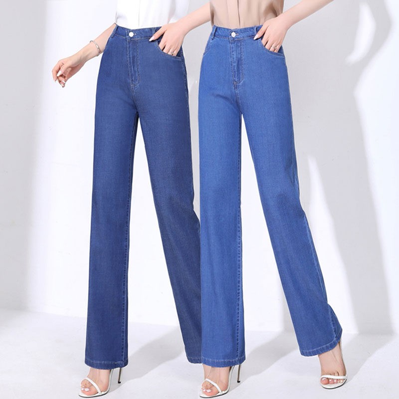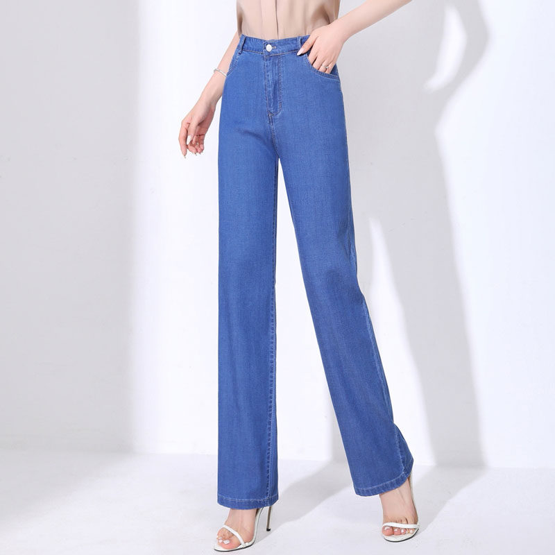 Тонкие джинсы, шелковые штаны, высокая талия, свободный прямой крой