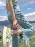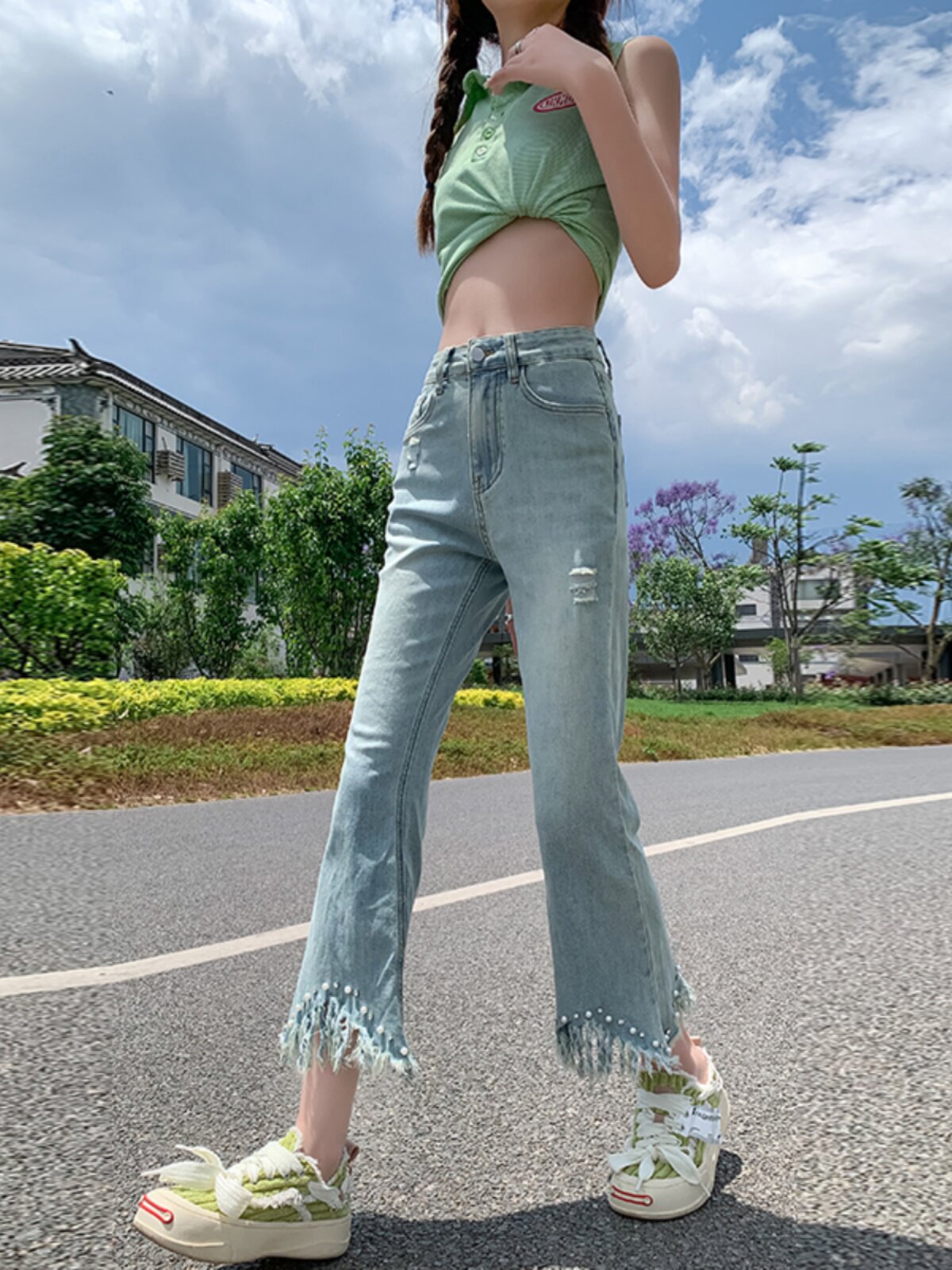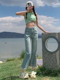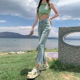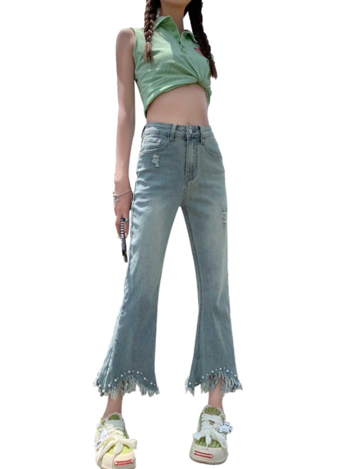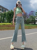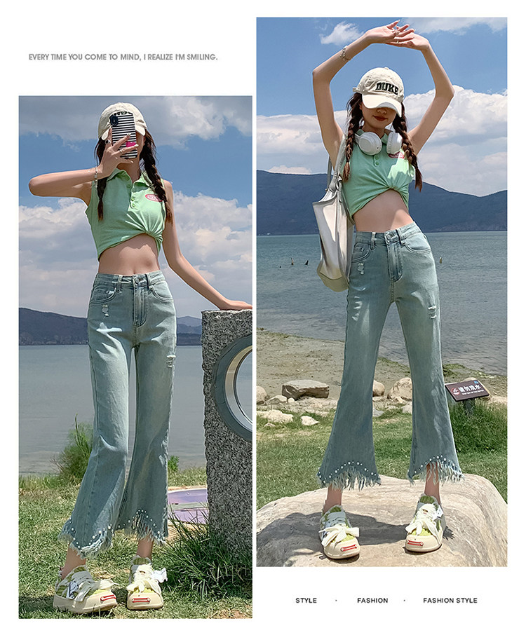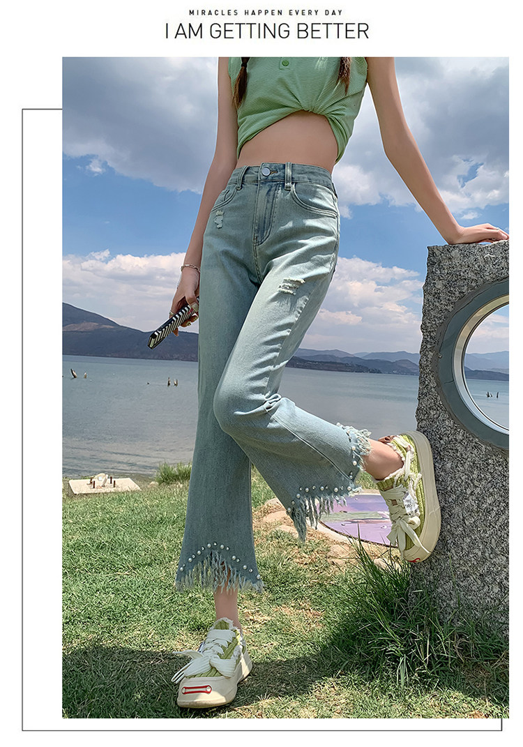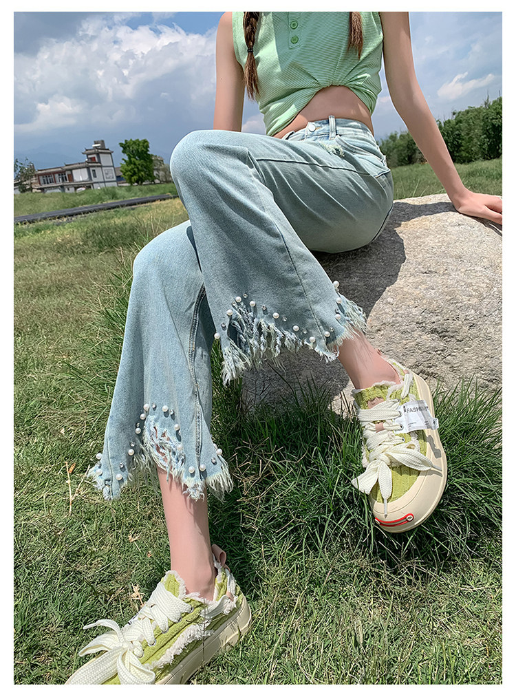 Джинсы, летние дизайнерские приталенные штаны, подходит для подростков, высокая талия