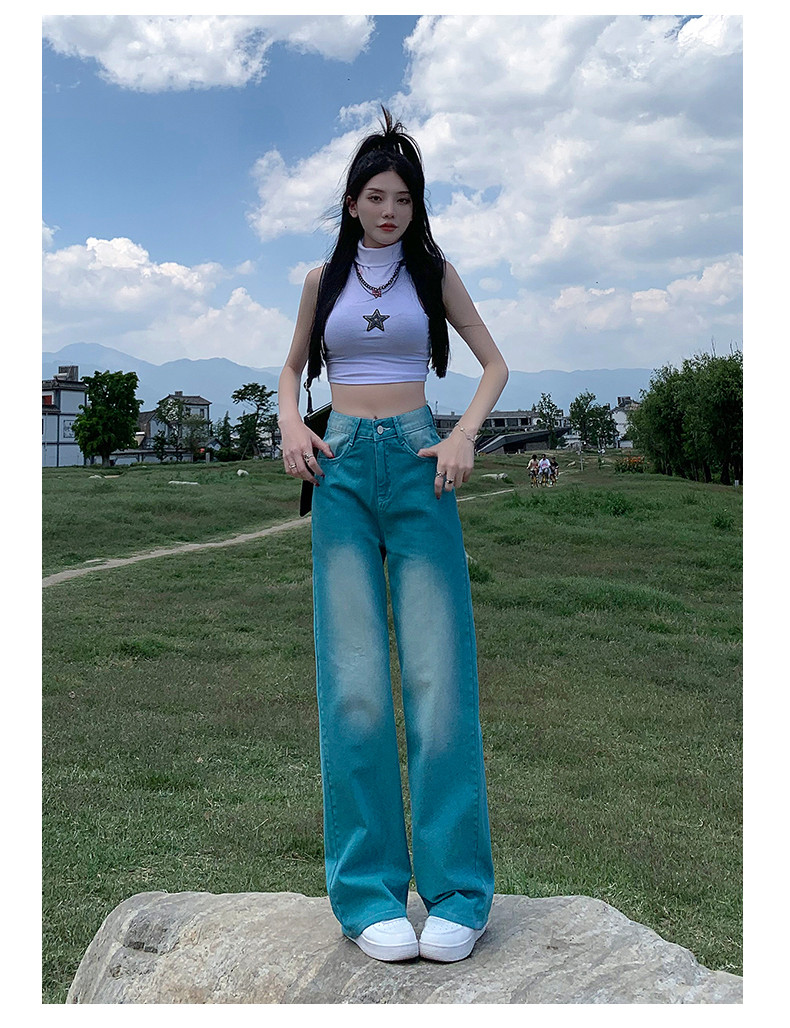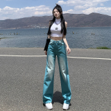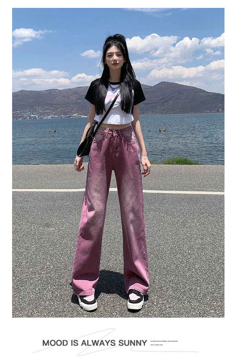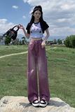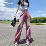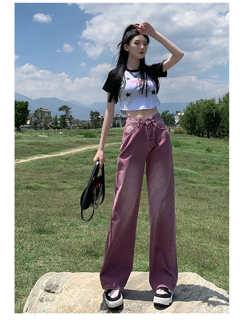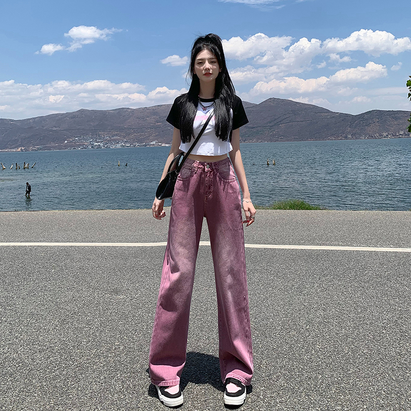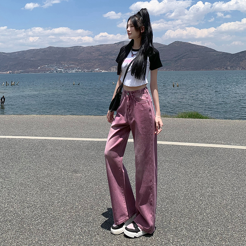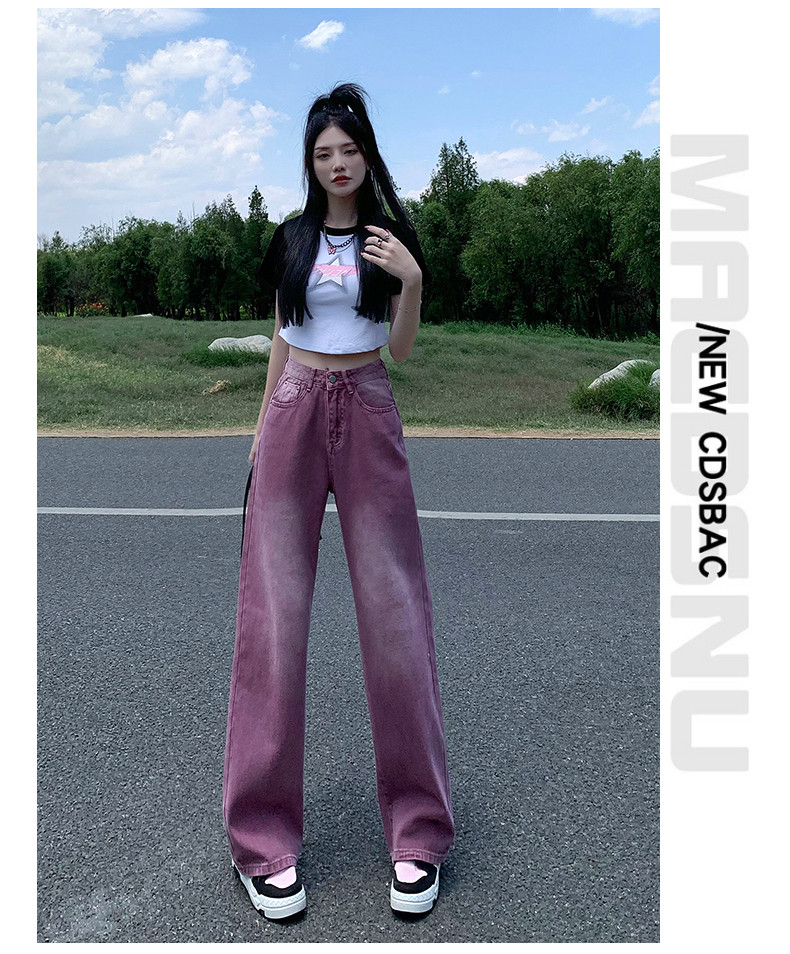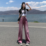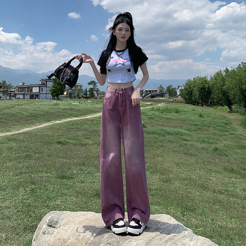 Сиреневые летние тонкие джинсы, ретро штаны, коллекция 2023, свободный прямой крой, в американском стиле