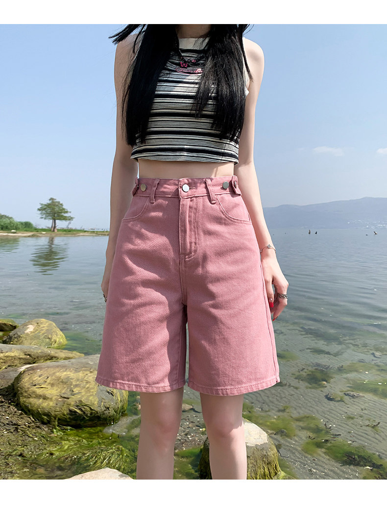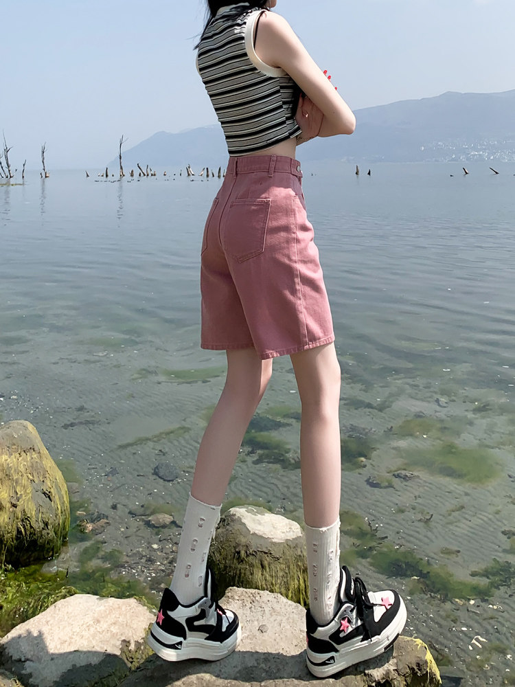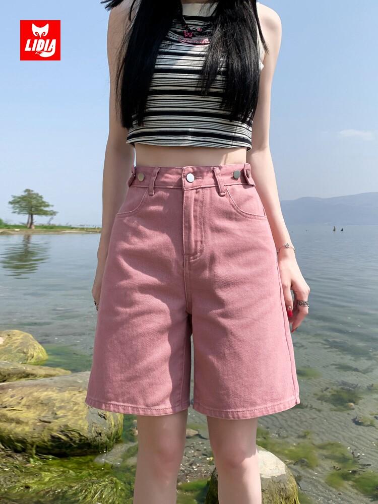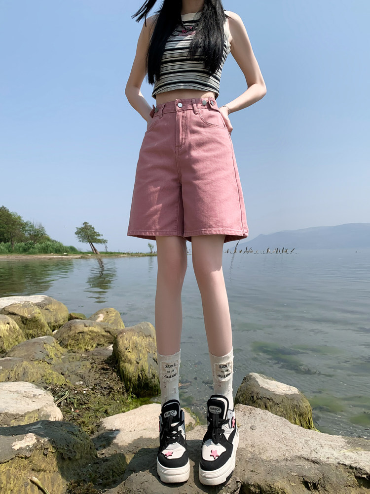 Розовые цветные приталенные джинсы, свободный прямой крой