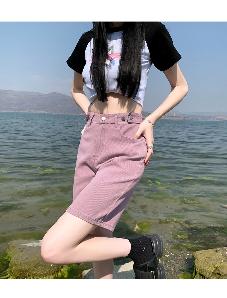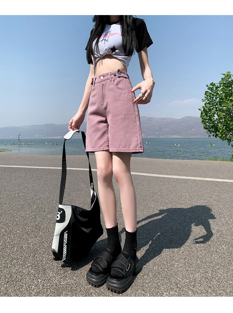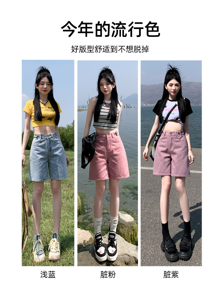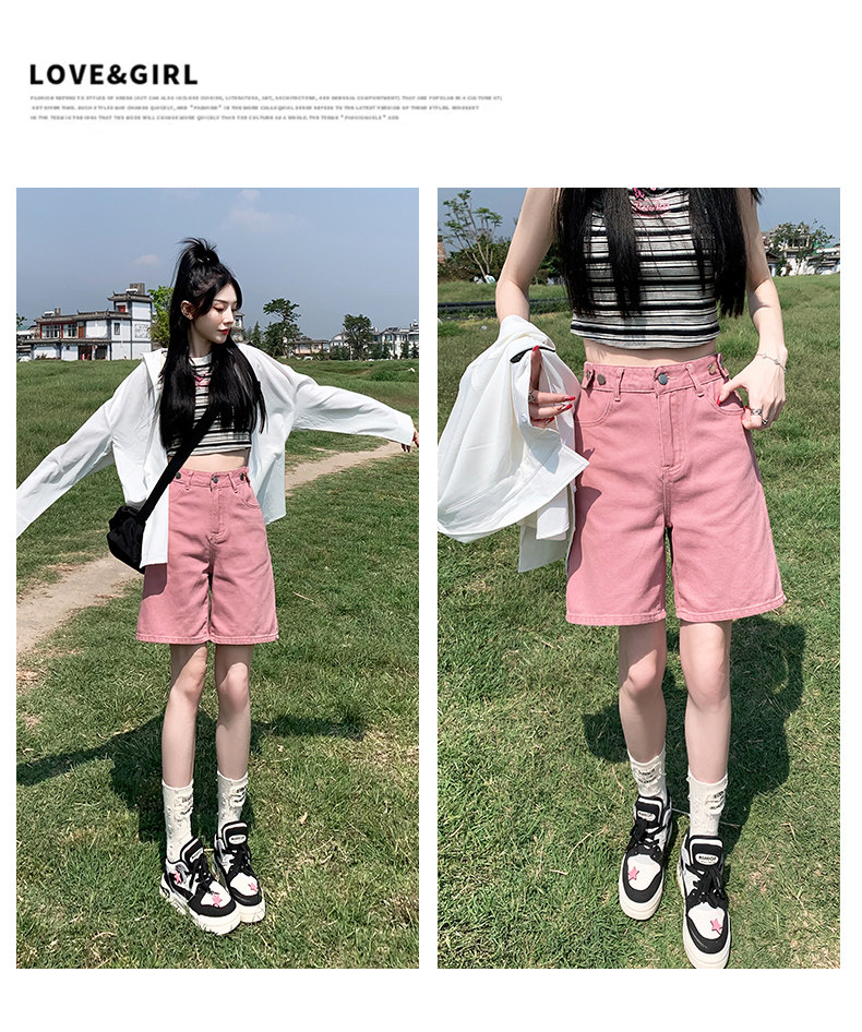 Розовые цветные приталенные джинсы, свободный прямой крой