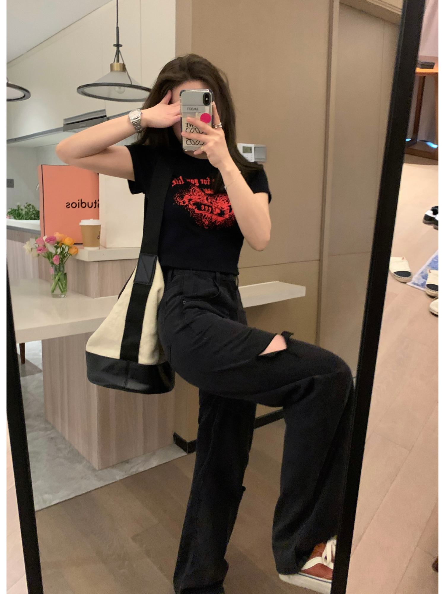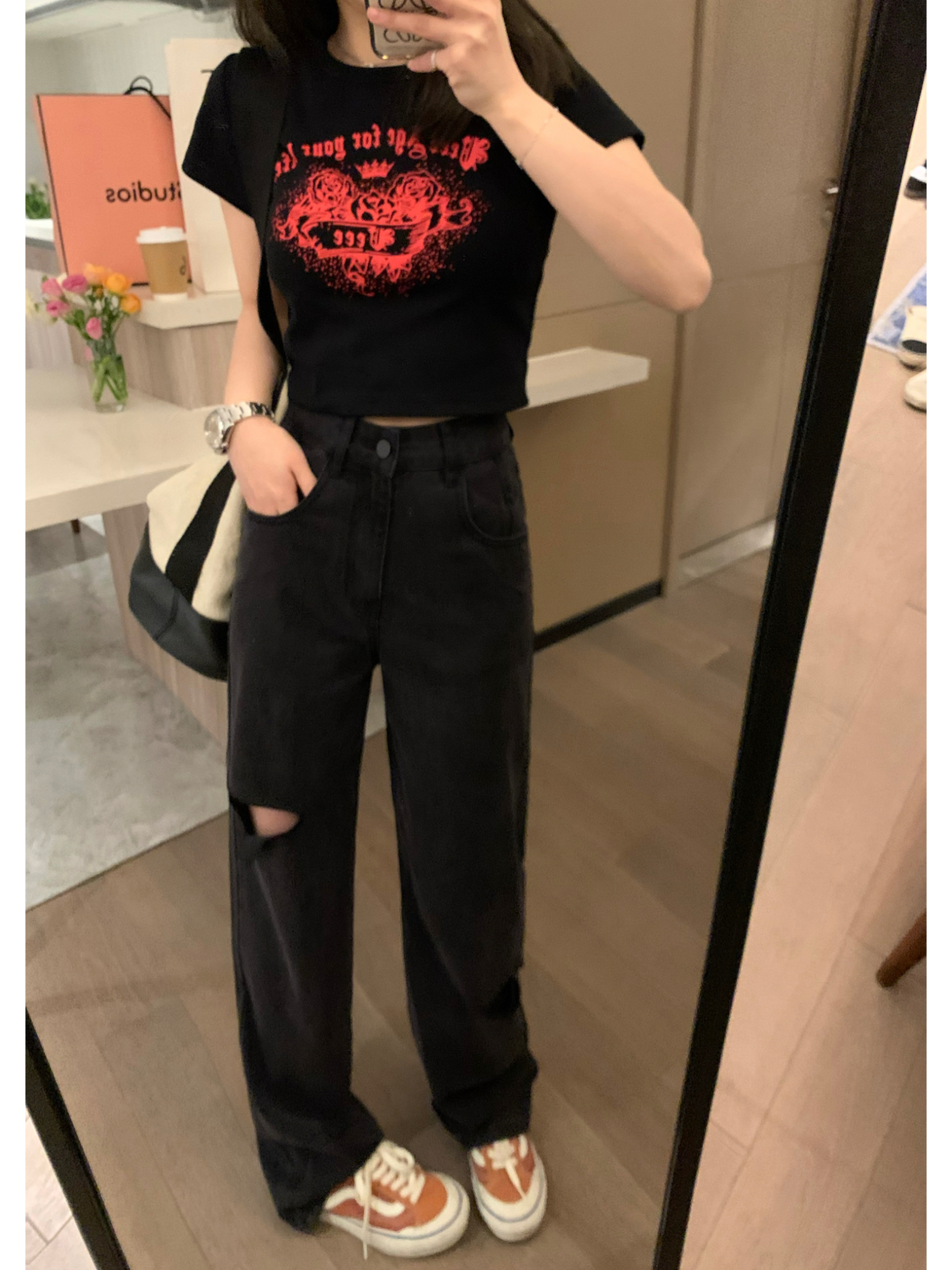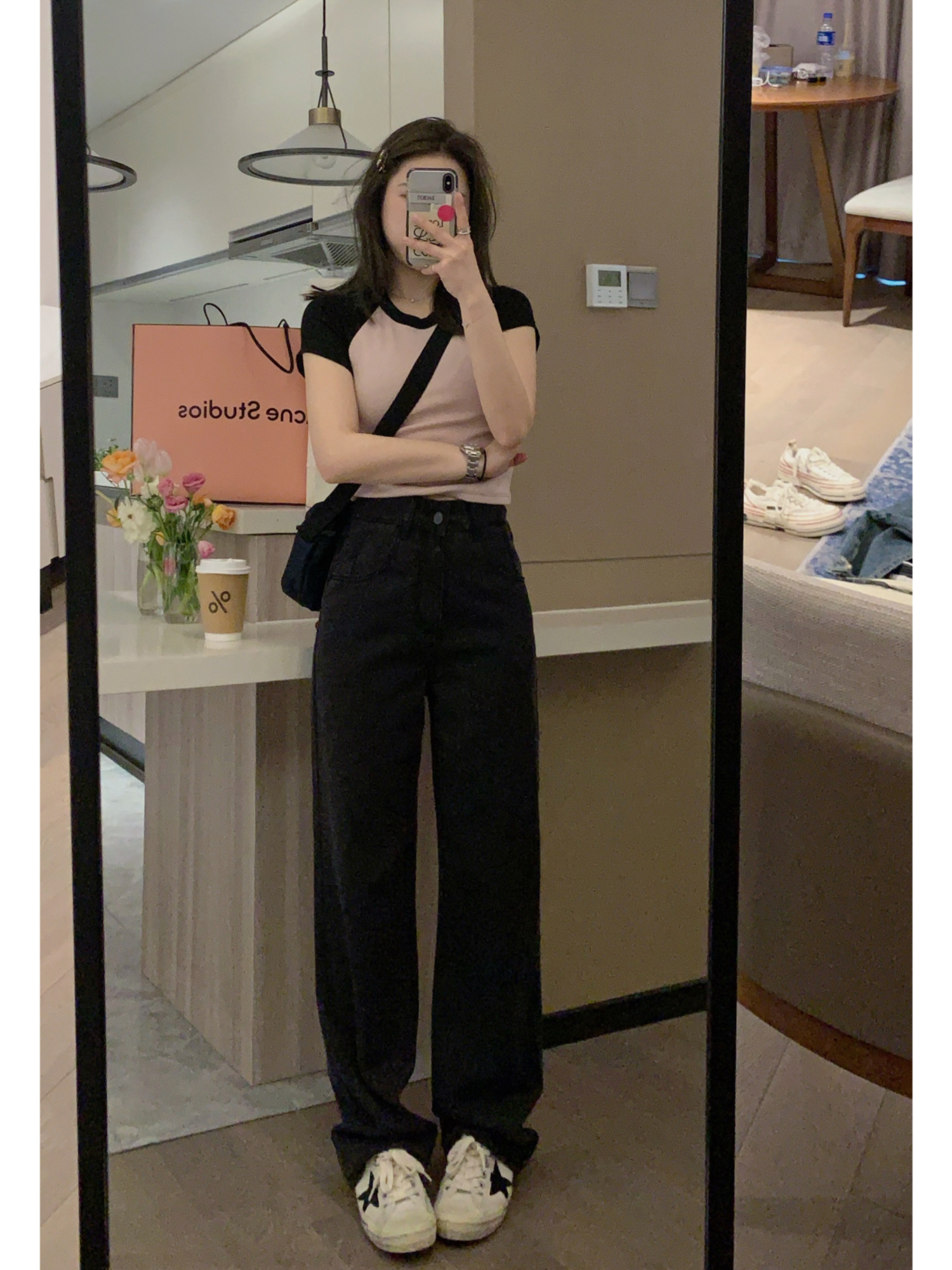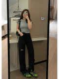 Летние черные джинсы для отдыха, свободный прямой крой, высокая талия