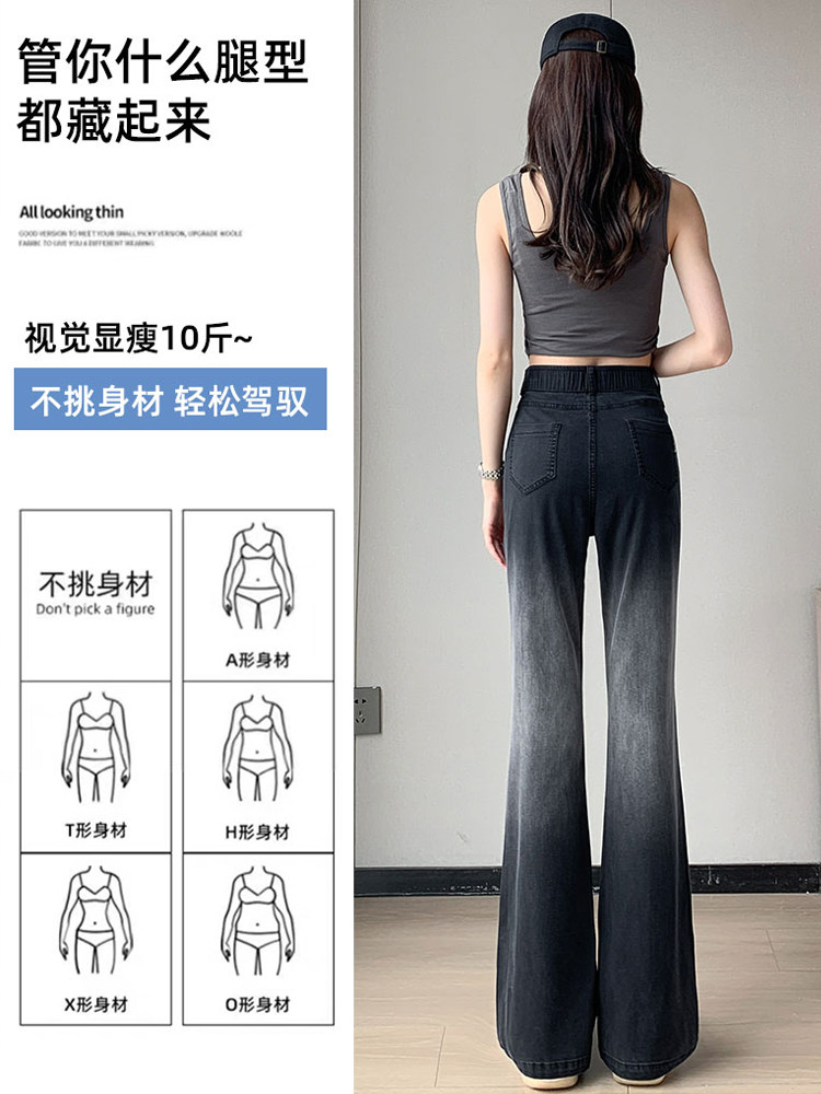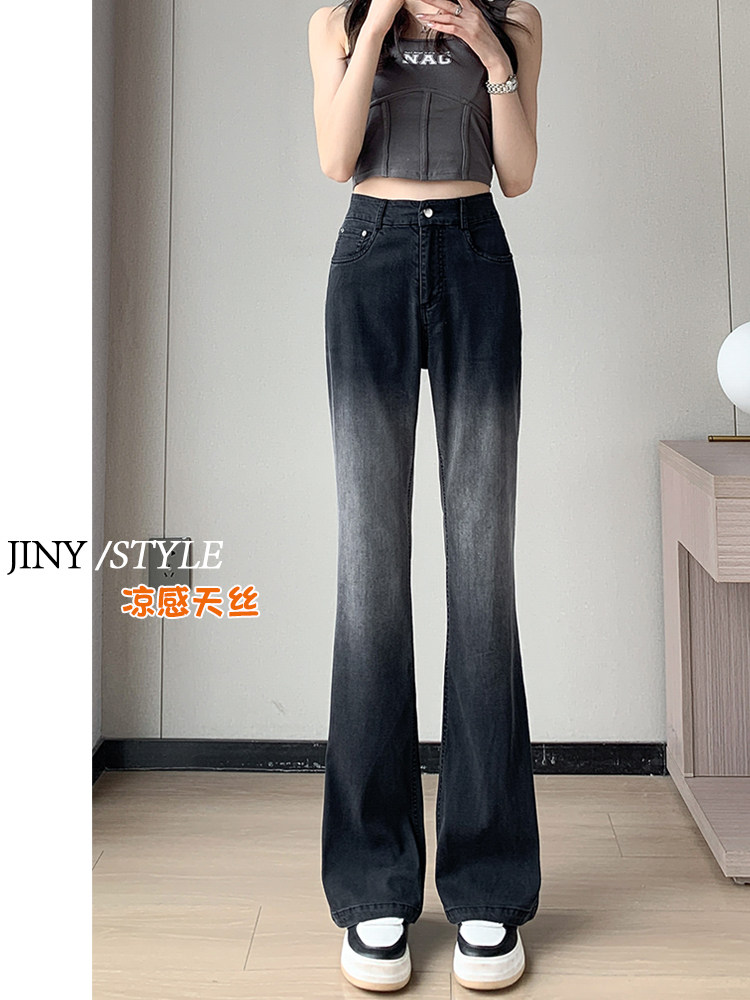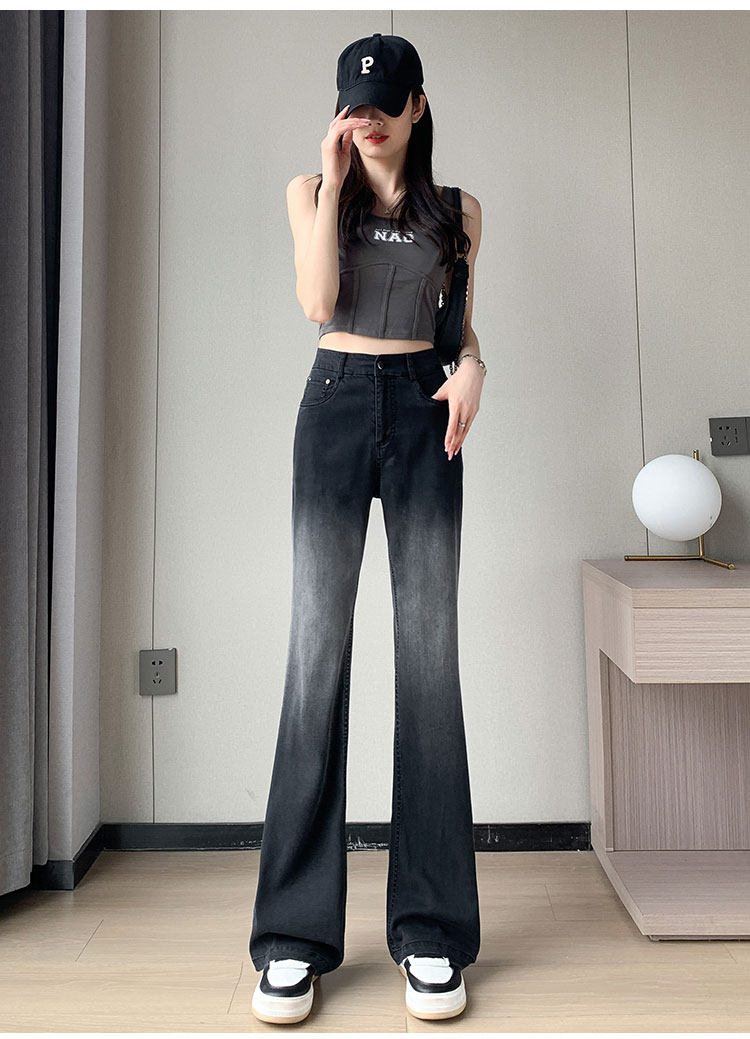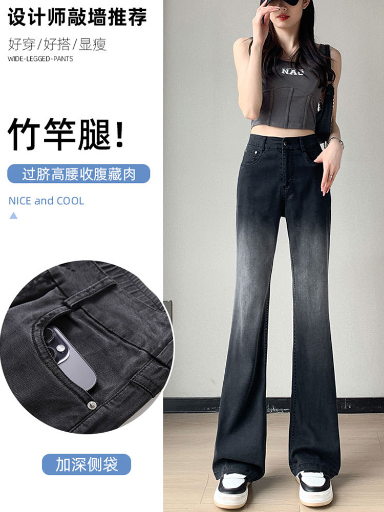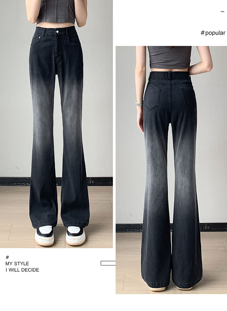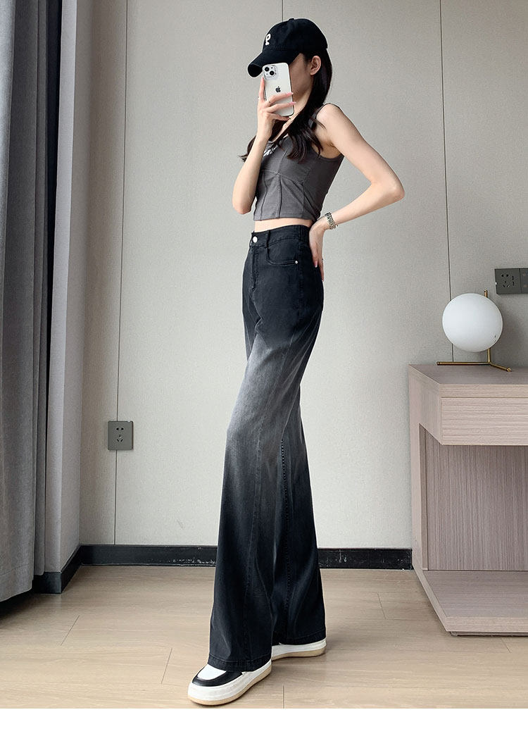 Тонкие приталенные джинсы, штаны, черные шелковые штаны-клёш, градиент, высокая талия, свободный крой
