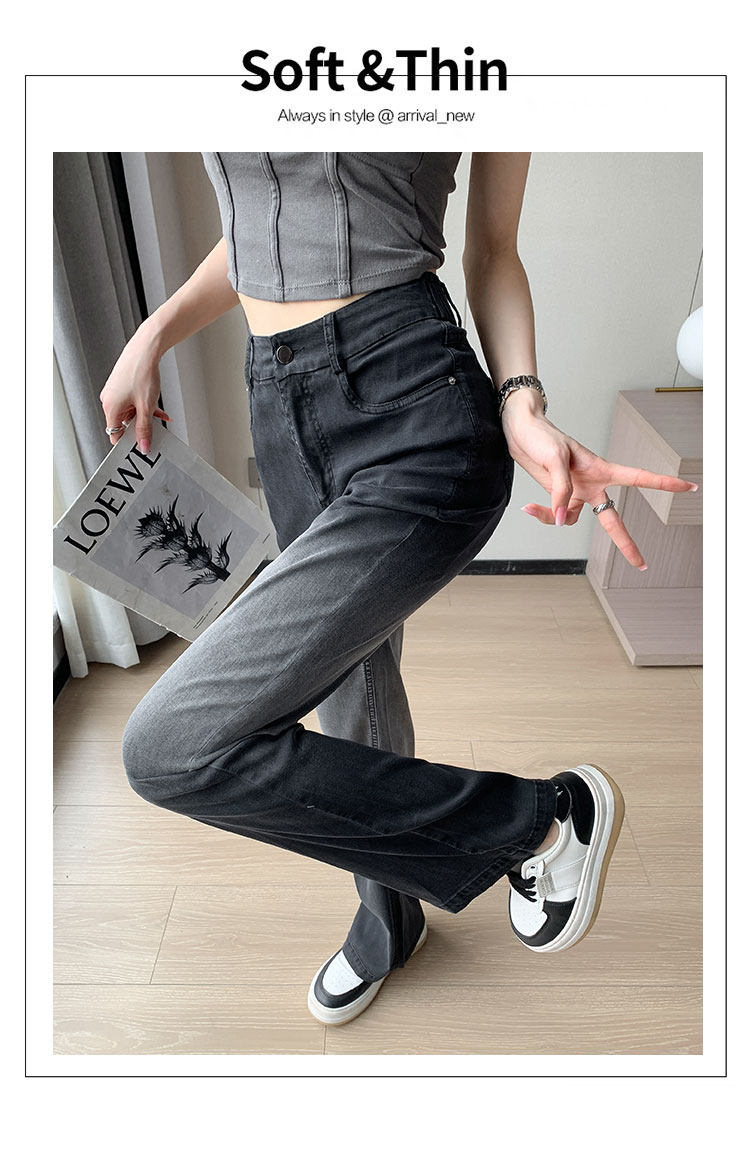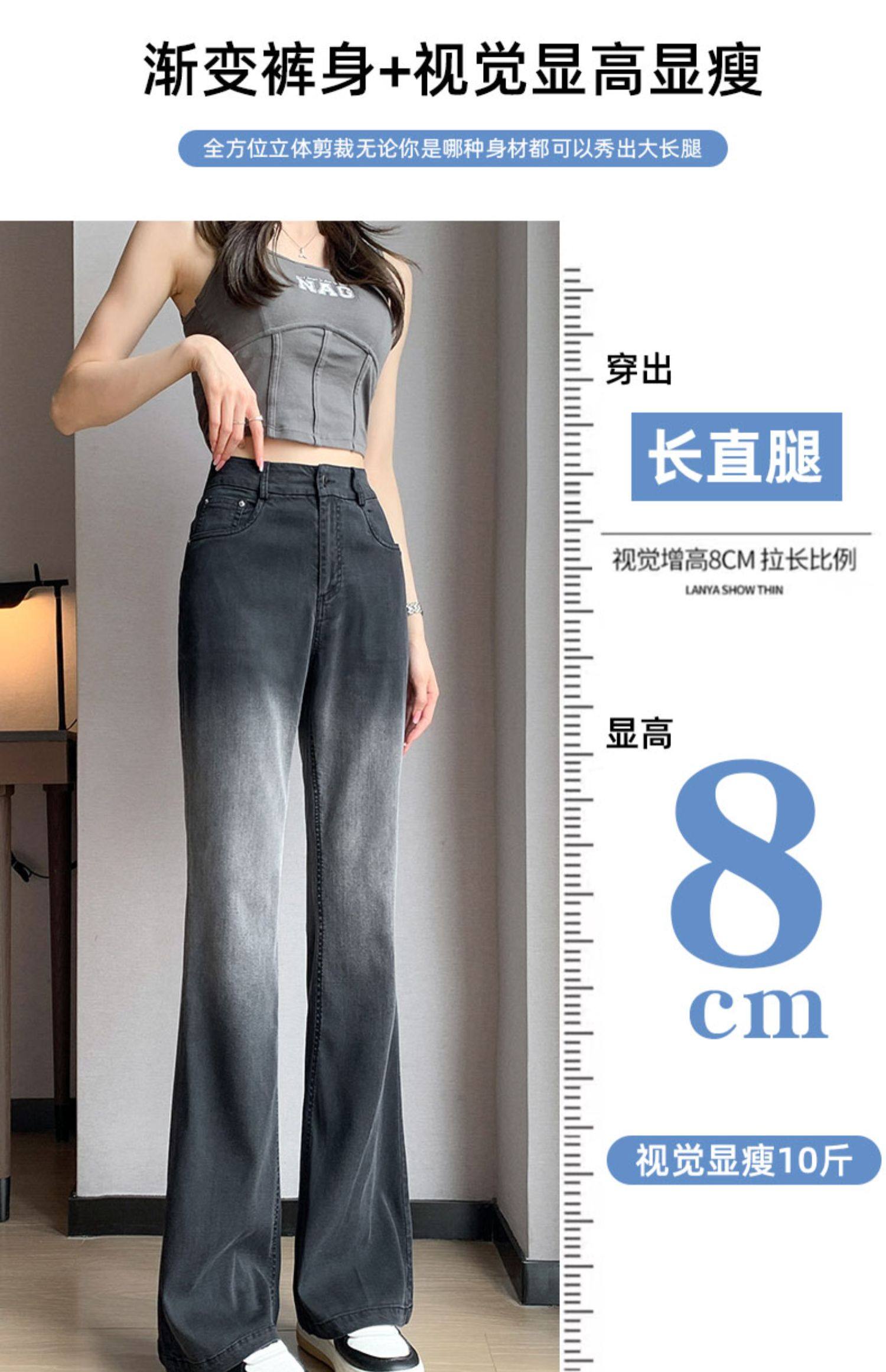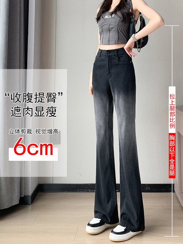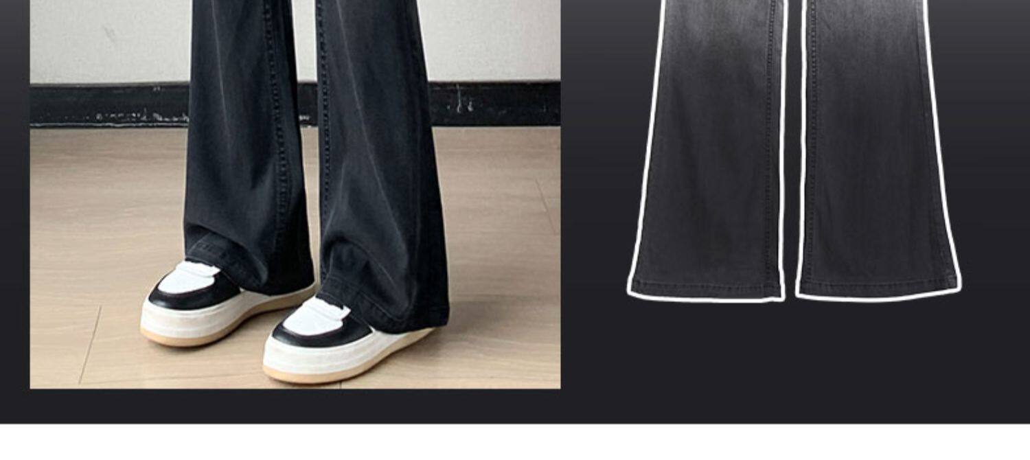 Тонкие приталенные джинсы, штаны, черные шелковые штаны-клёш, градиент, высокая талия, свободный крой