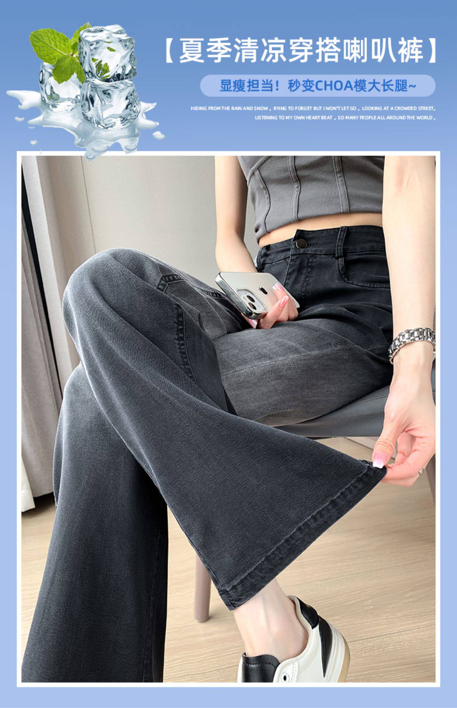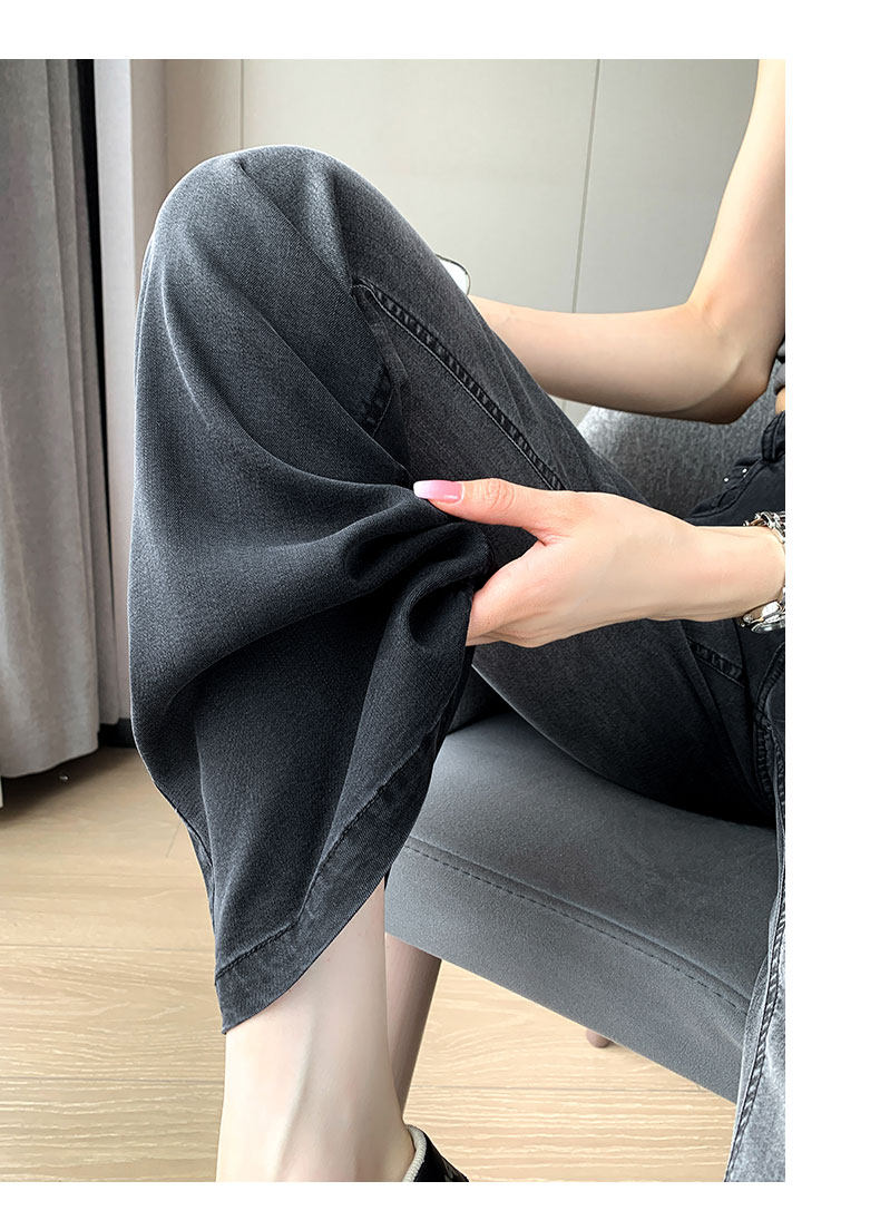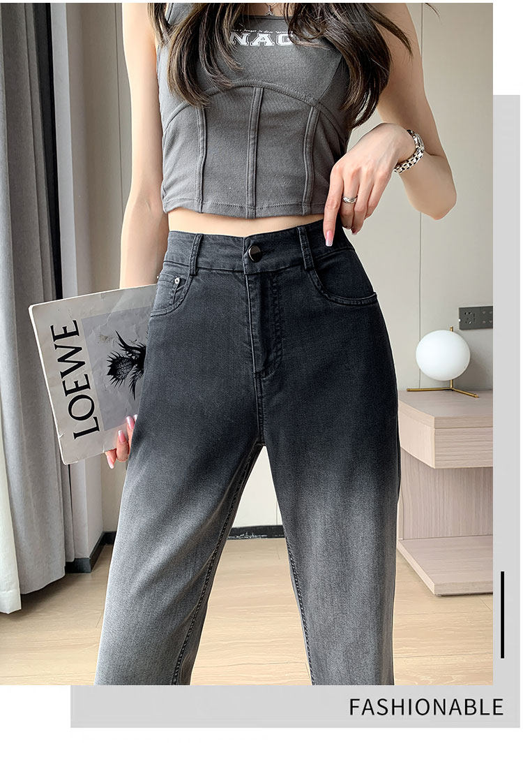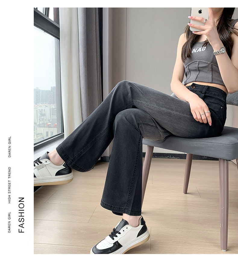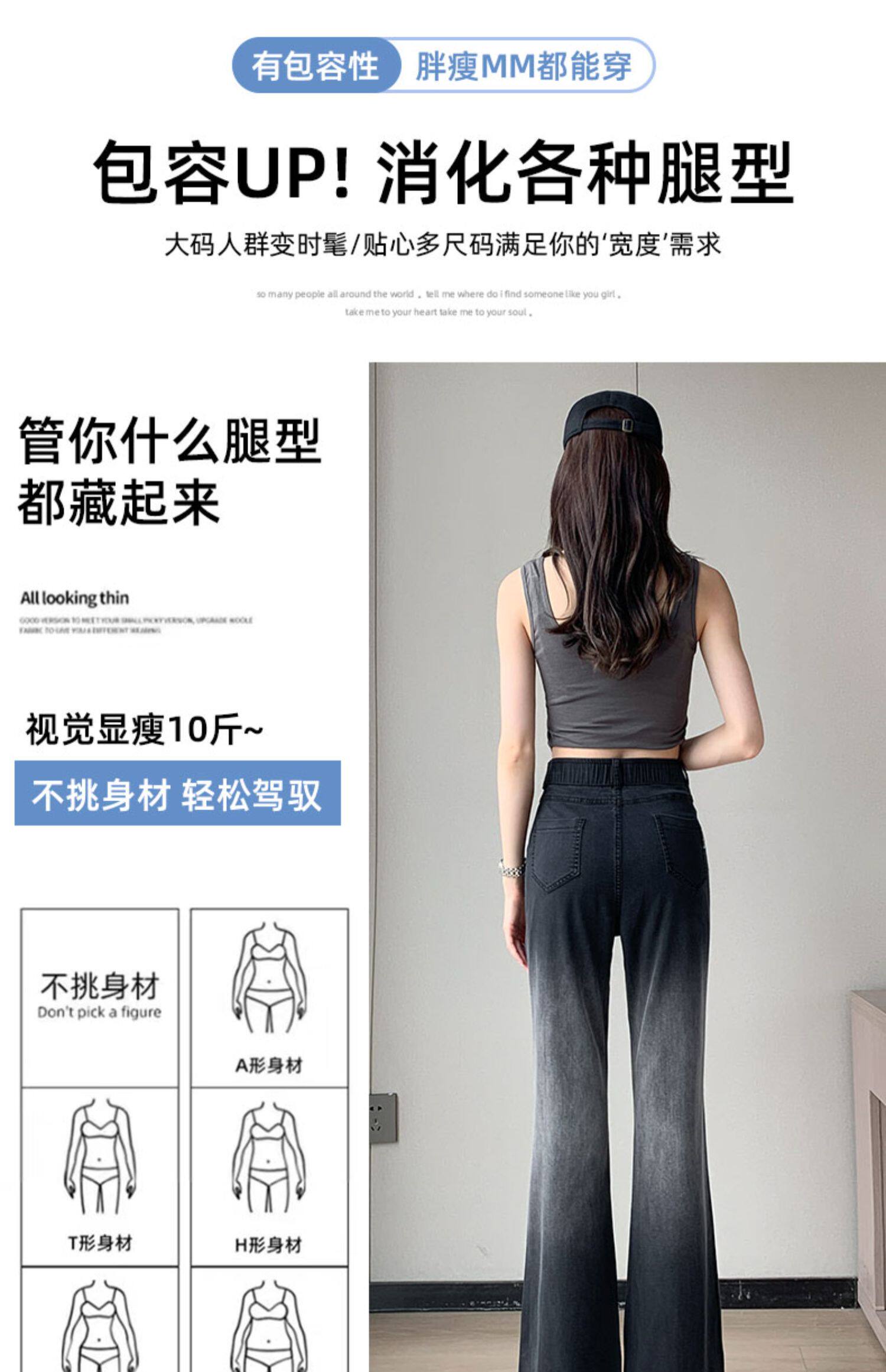 Тонкие приталенные джинсы, штаны, черные шелковые штаны-клёш, градиент, высокая талия, свободный крой