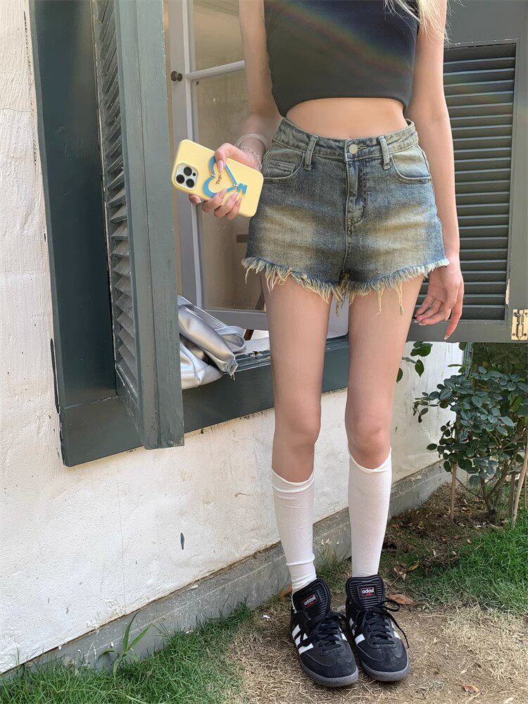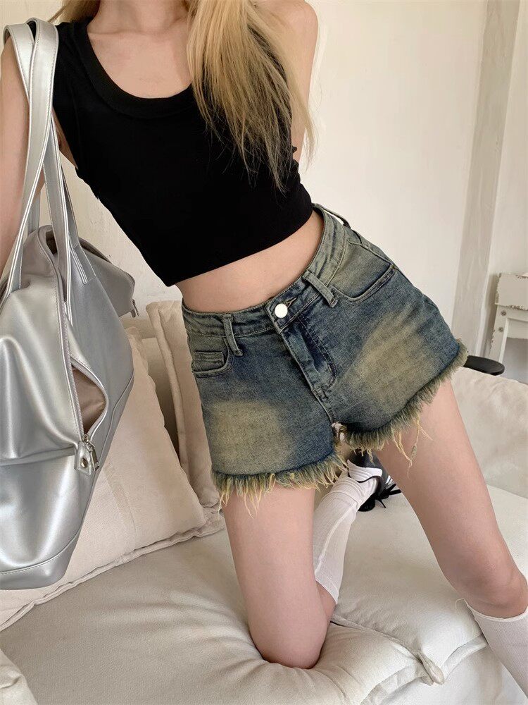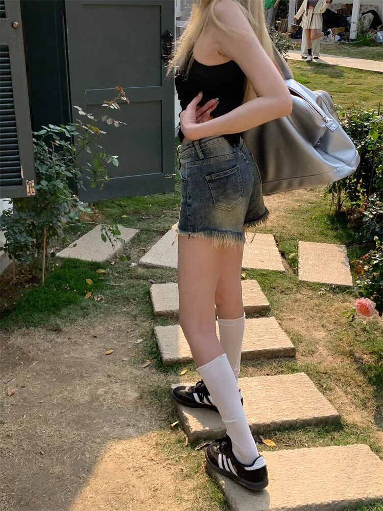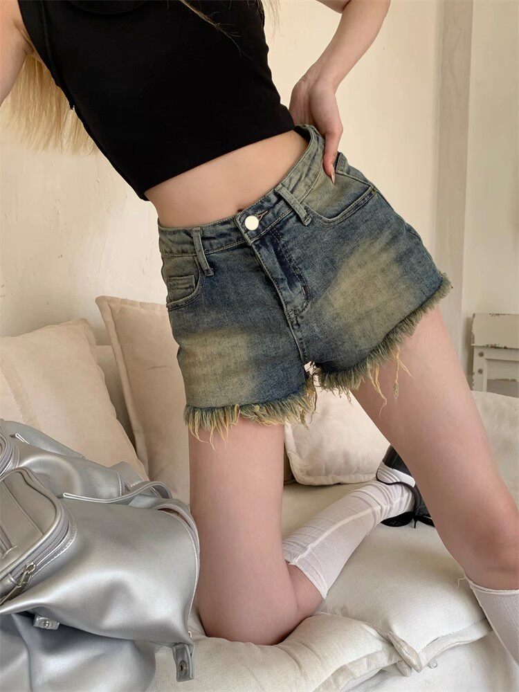 Tide, ретро джинсы, штаны, шорты, А-силуэт, высокая талия, свободный прямой крой, 2023