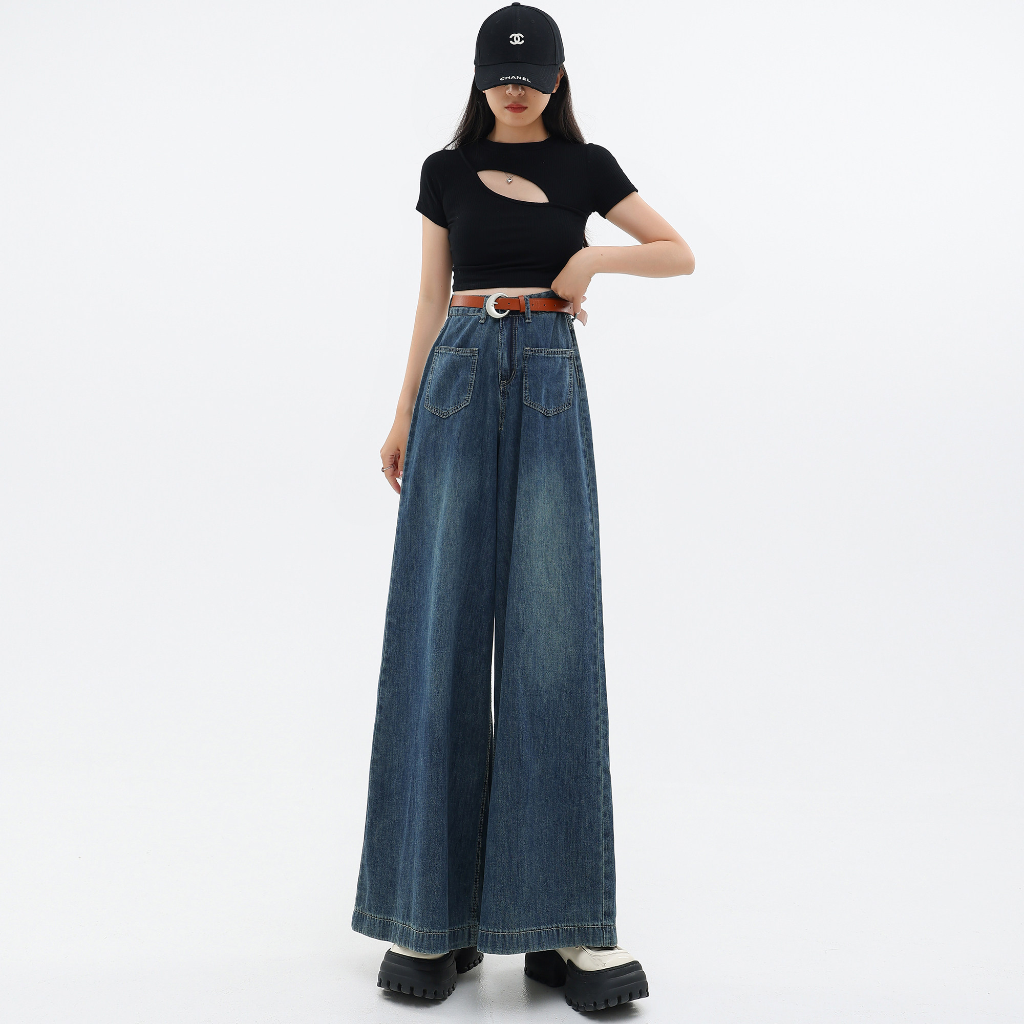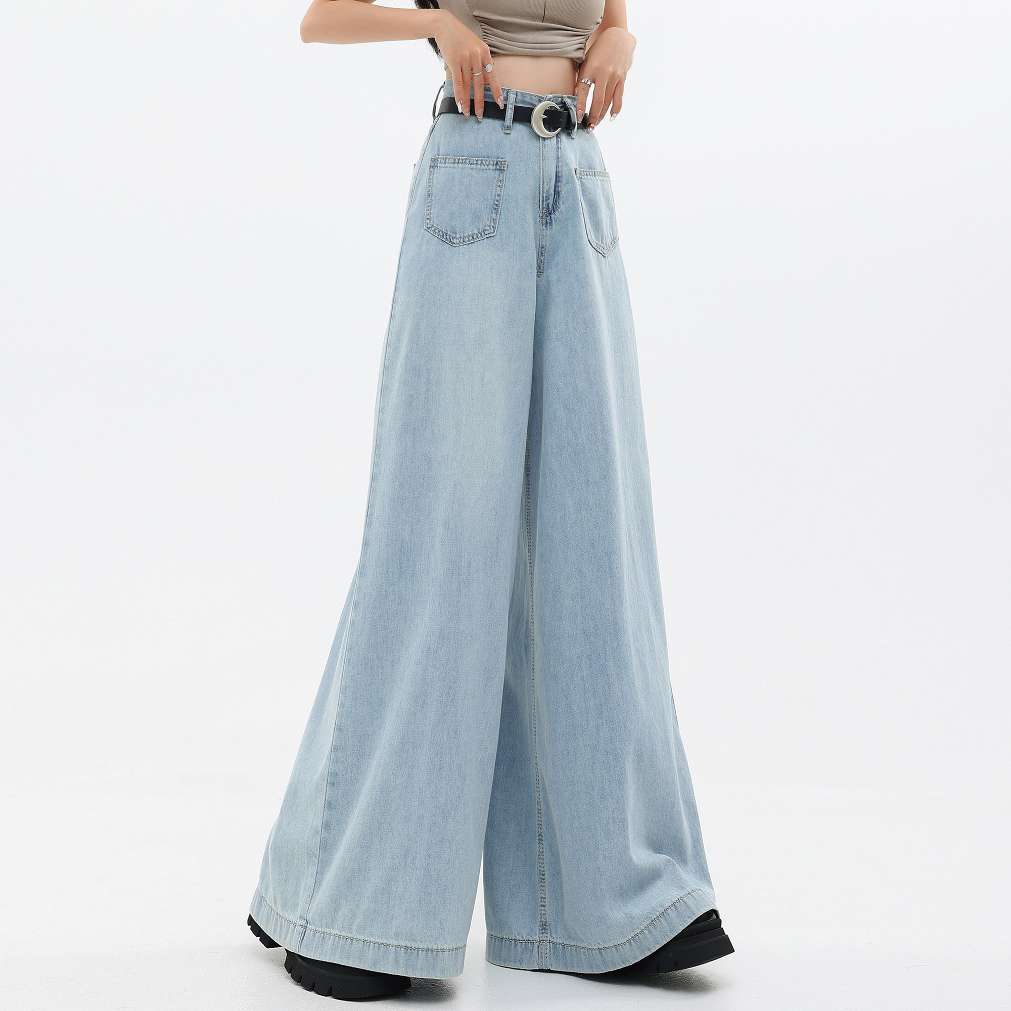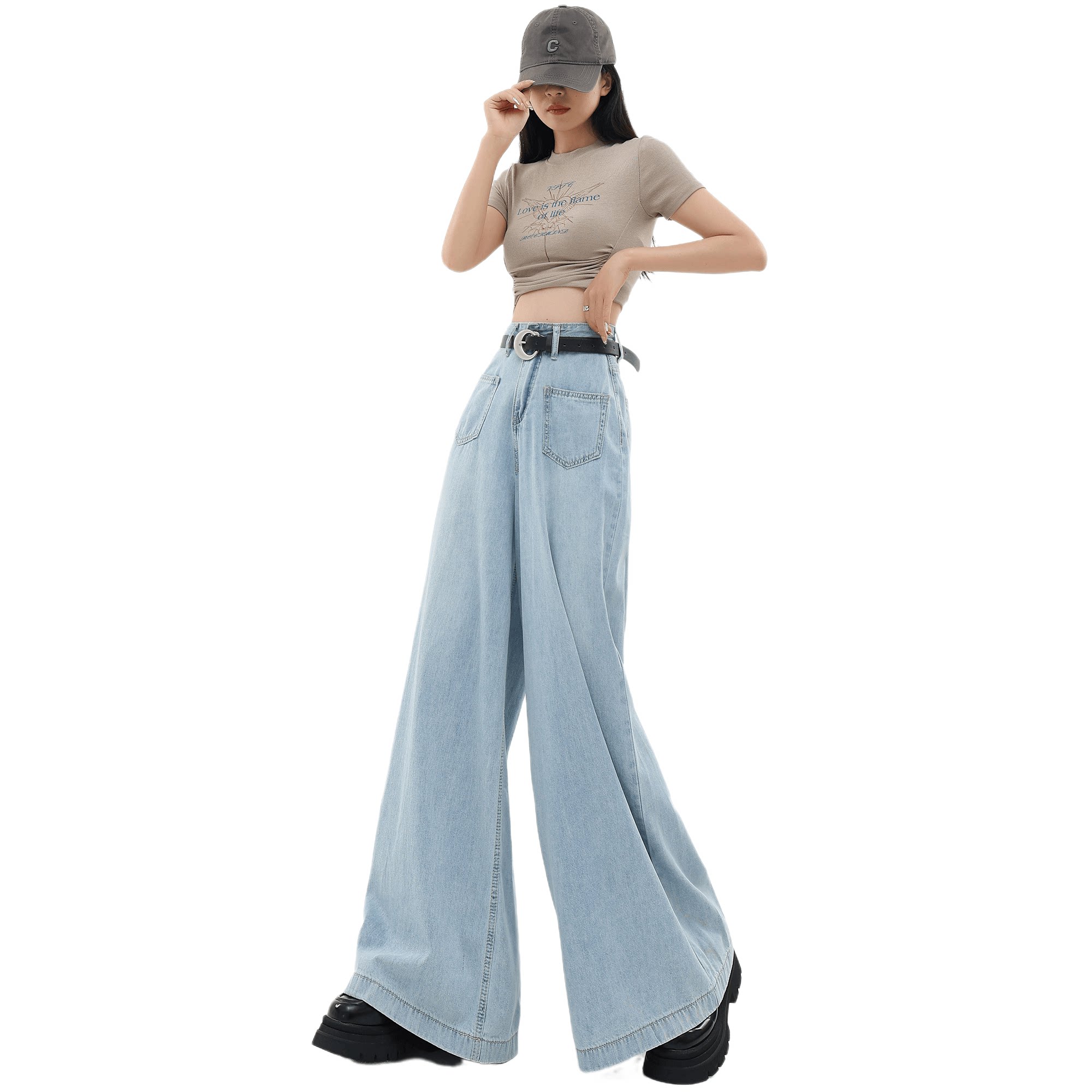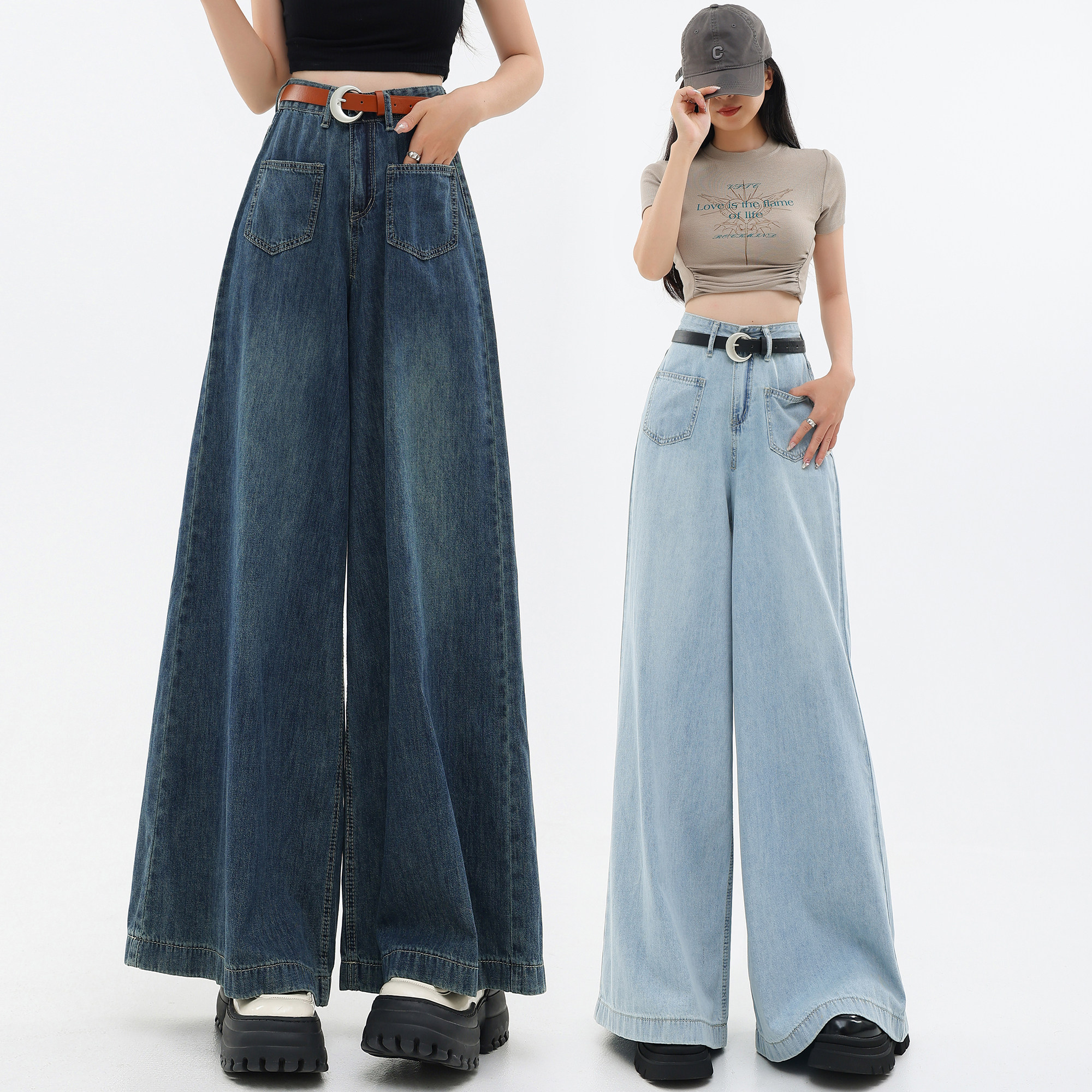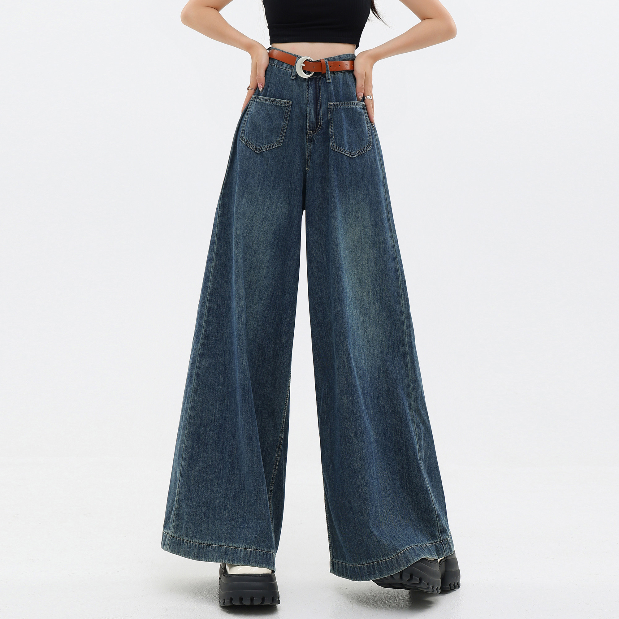 Джинсовые тонкие штаны, ретро повседневные брюки, громкоговоритель, штаны-клёш, в американском стиле, свободный крой