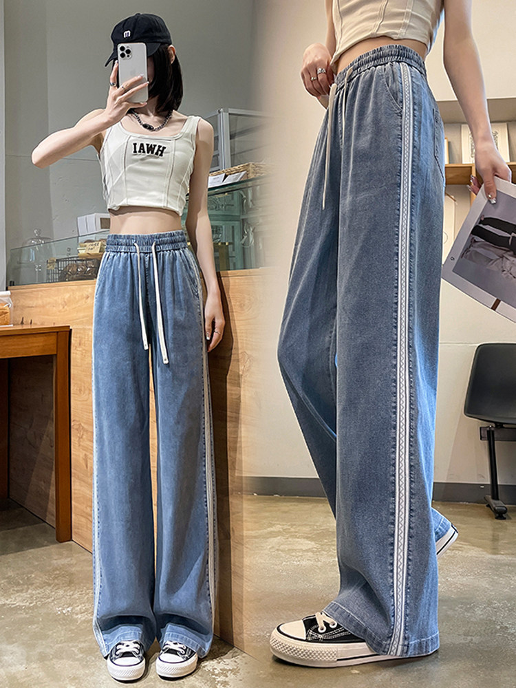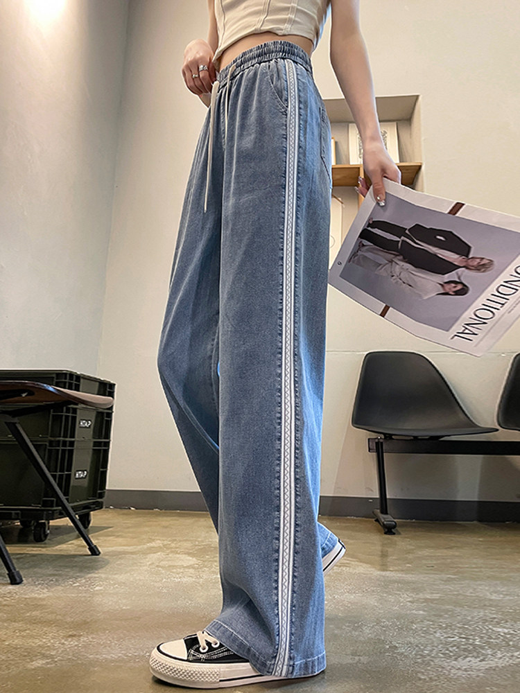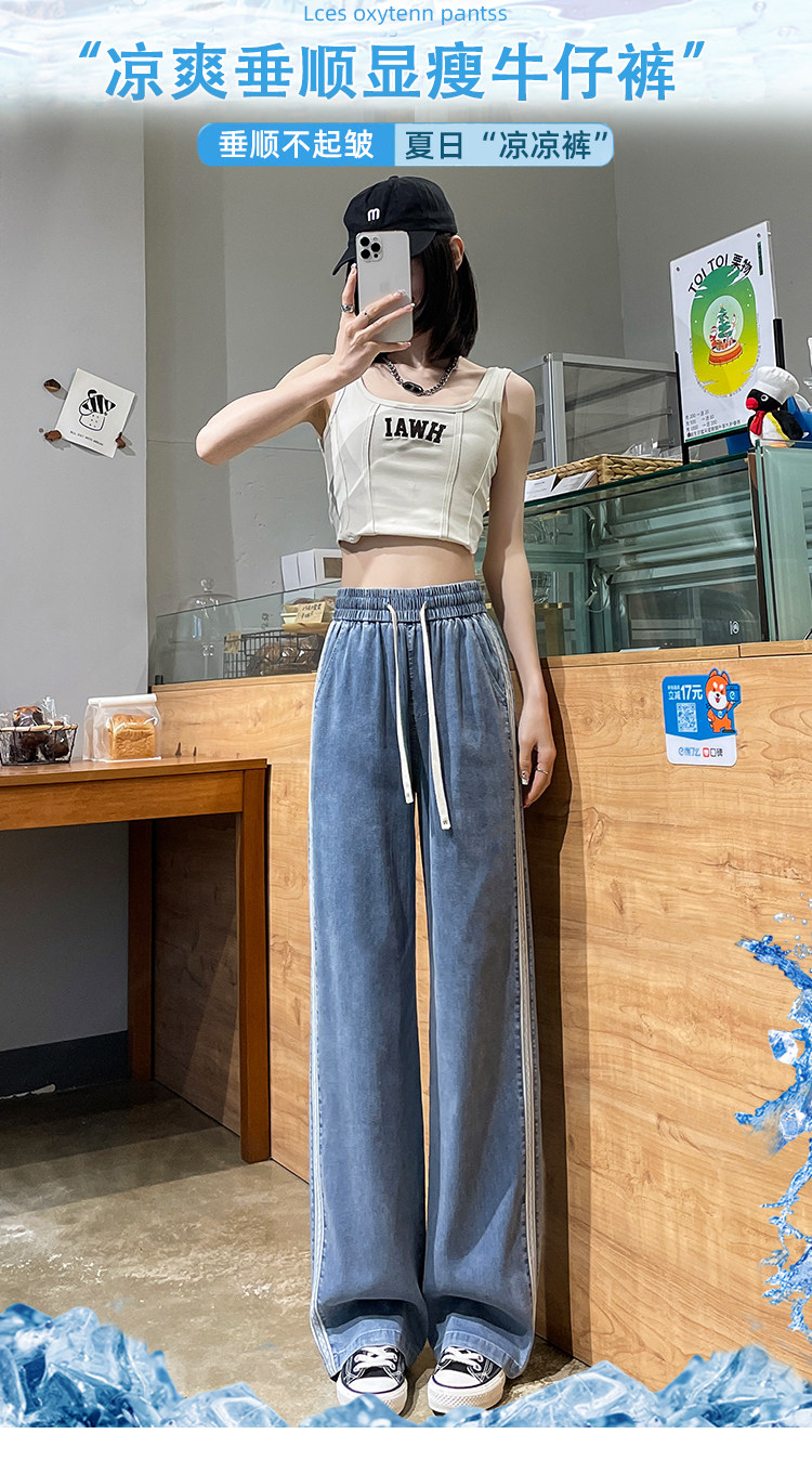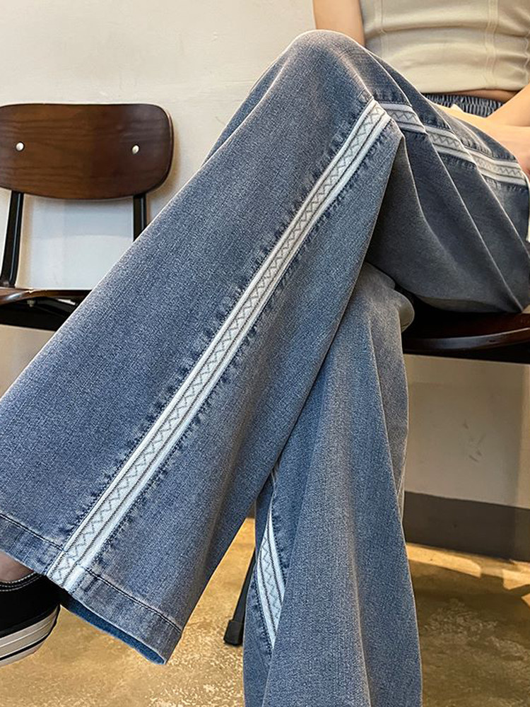 Тонкие ретро приталенные джинсы, шелковые штаны, высокая талия, свободный прямой крой