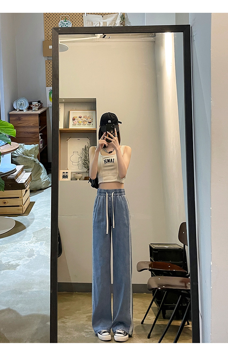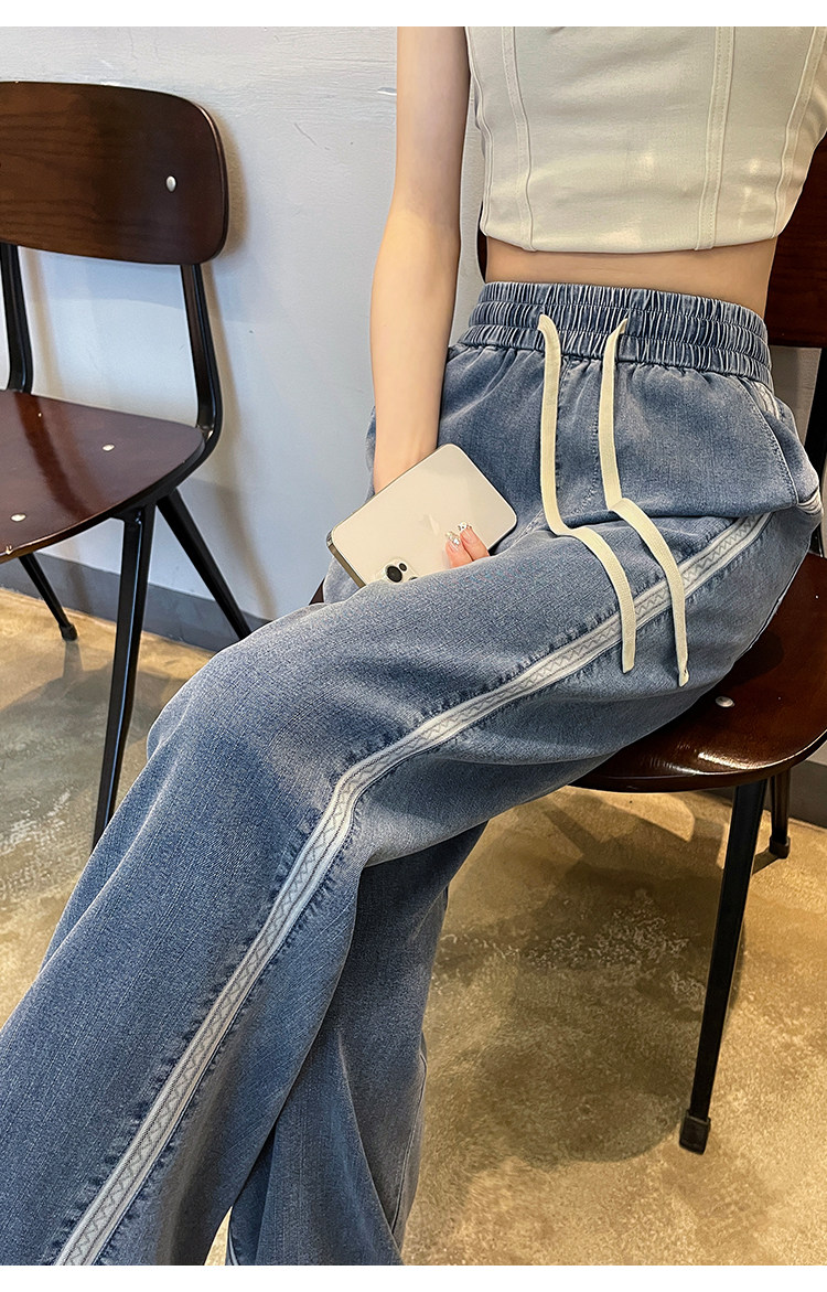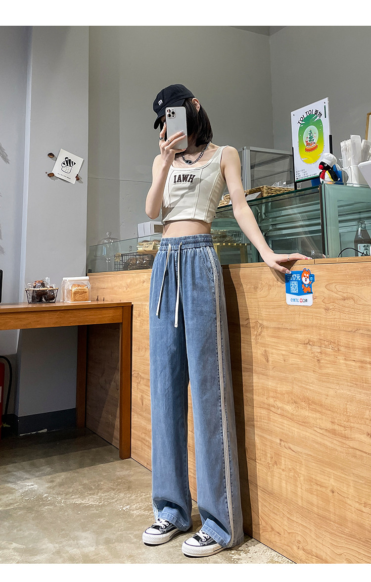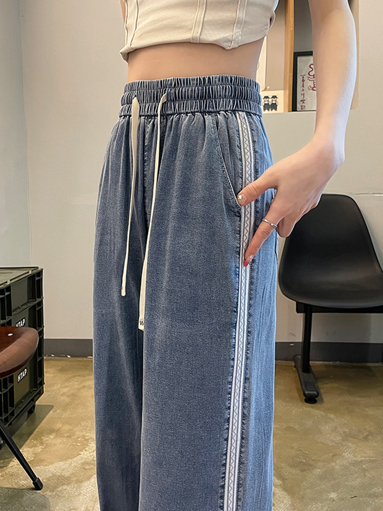 Тонкие ретро приталенные джинсы, шелковые штаны, высокая талия, свободный прямой крой