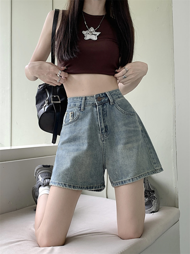 Комиксы, ретро прямые свободные джинсы, джинсовая юбка, осенние шорты, леггинсы, брендовые штаны, высокая талия, А-силуэт, свободный крой