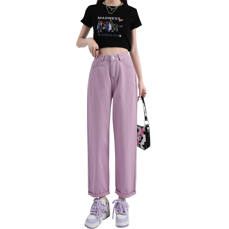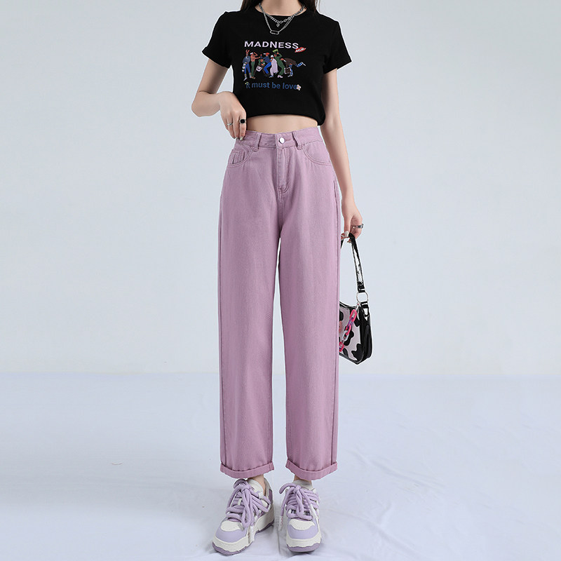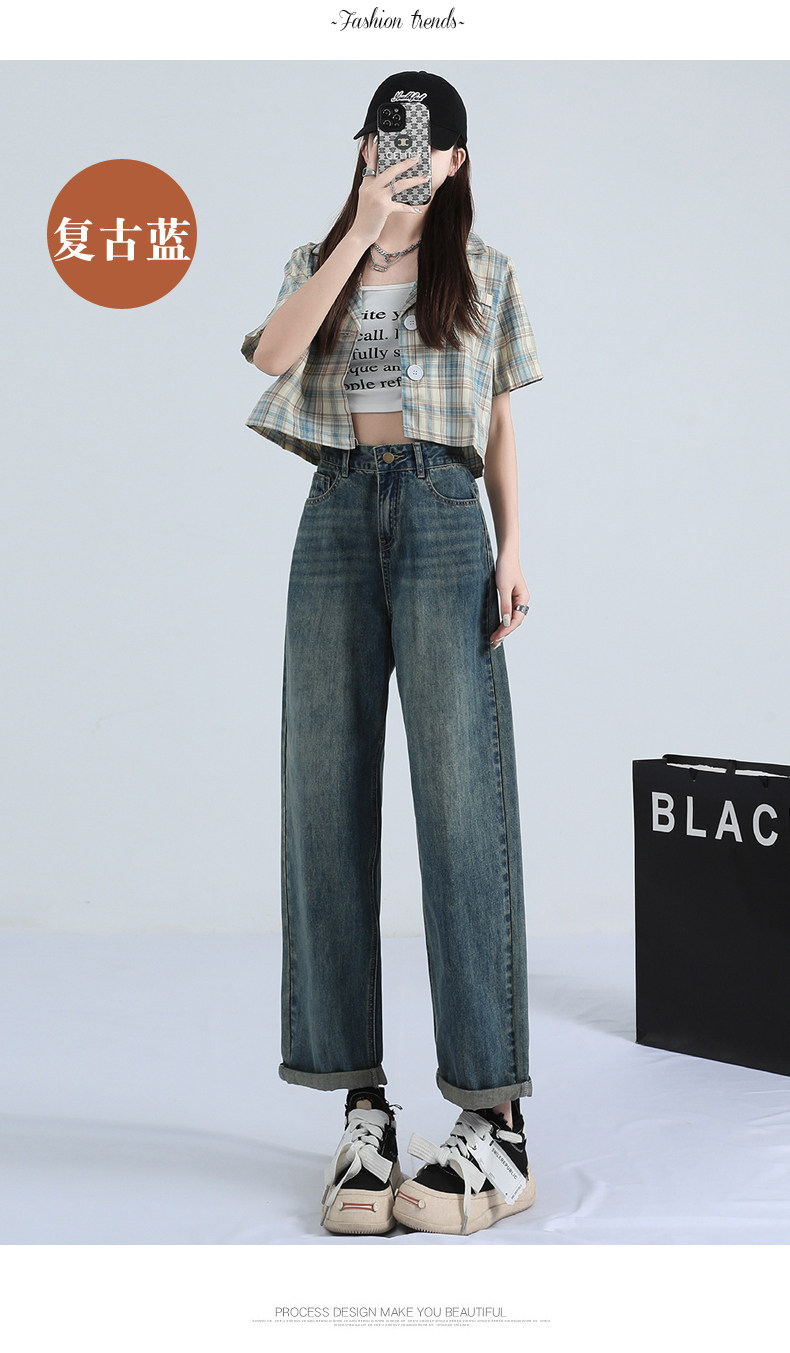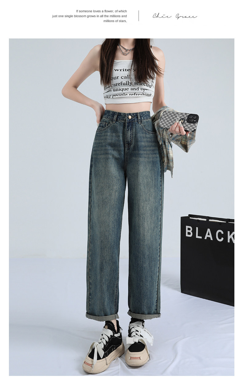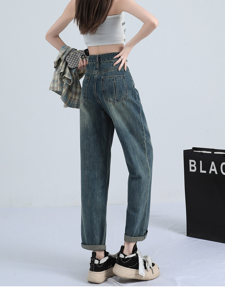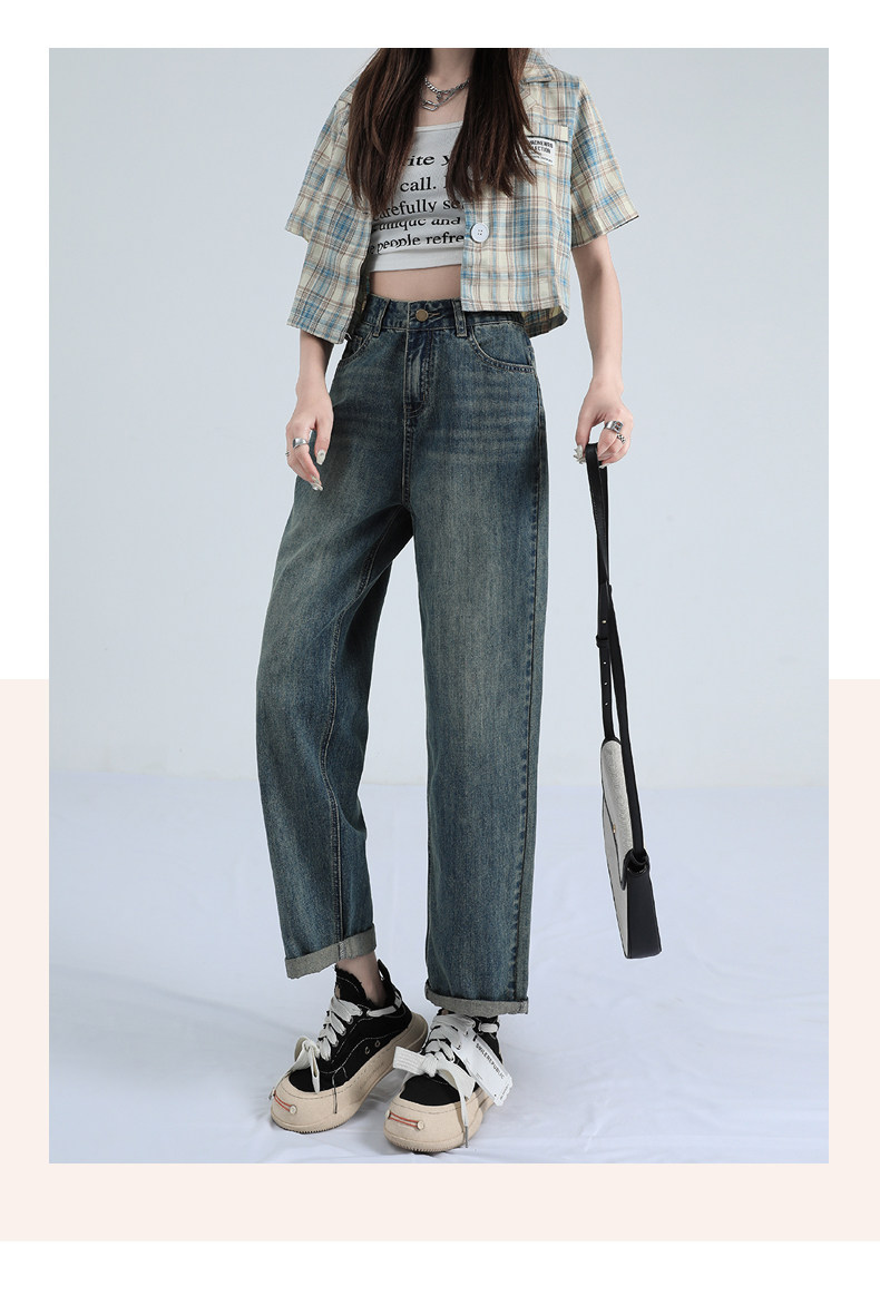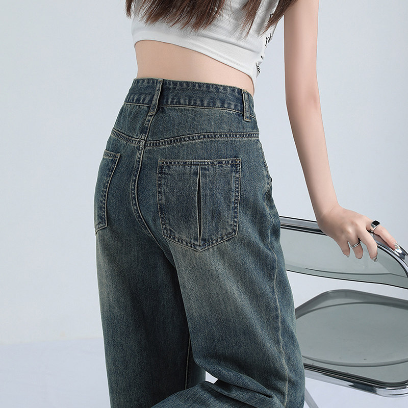 Ретро штаны, тонкие джинсы, высокая талия, свободный прямой крой