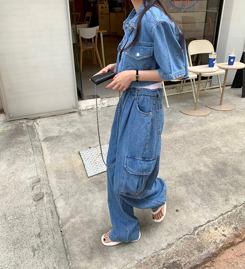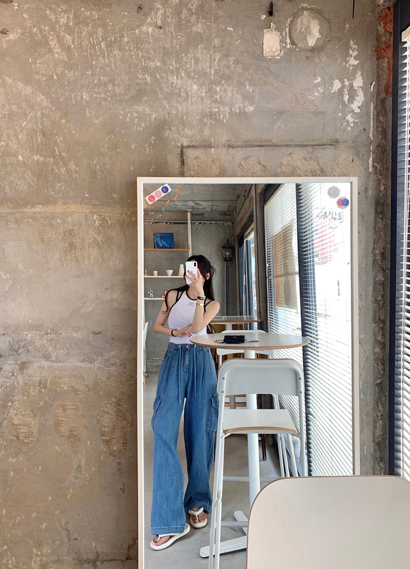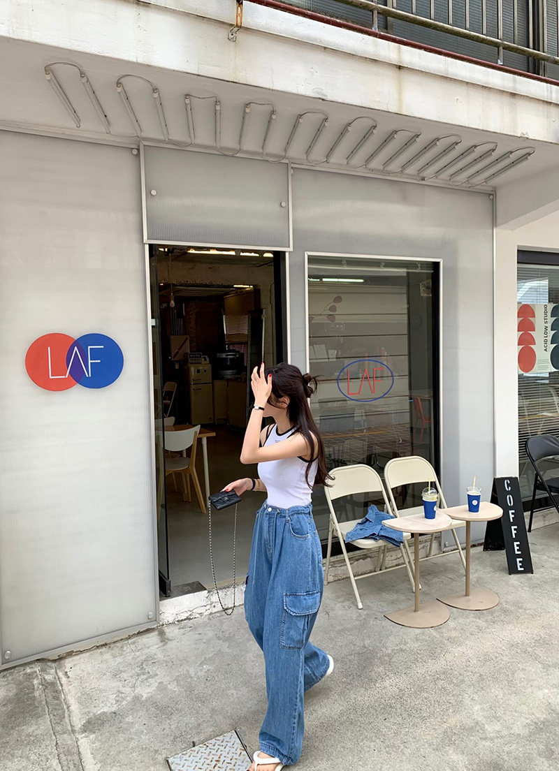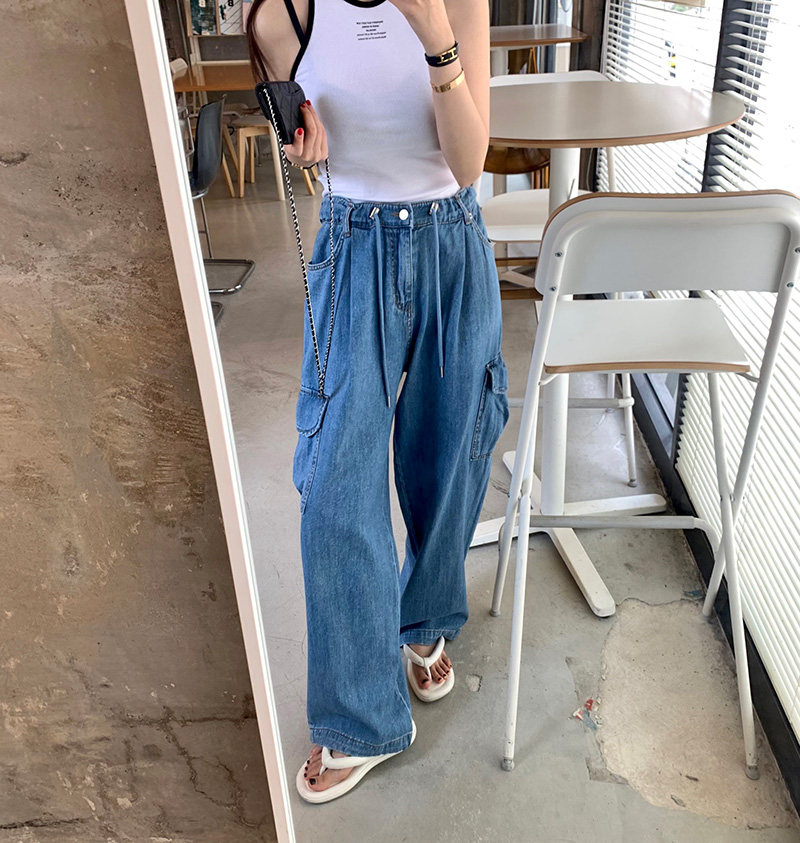 Ретро летние джинсы, штаны, французский ретро стиль, высокая талия, свободный крой