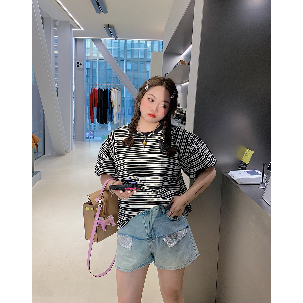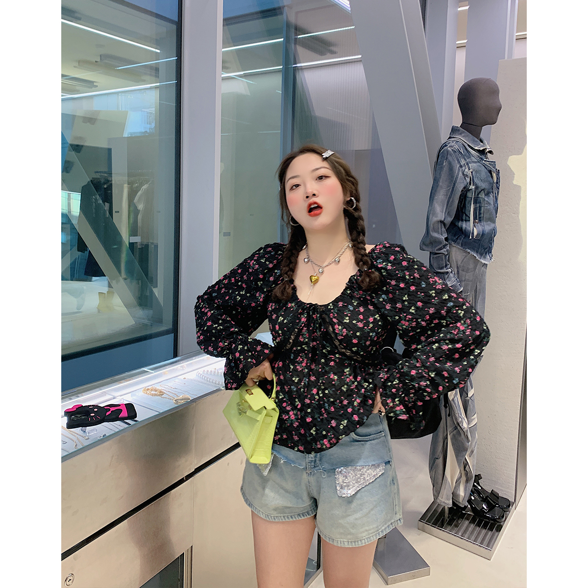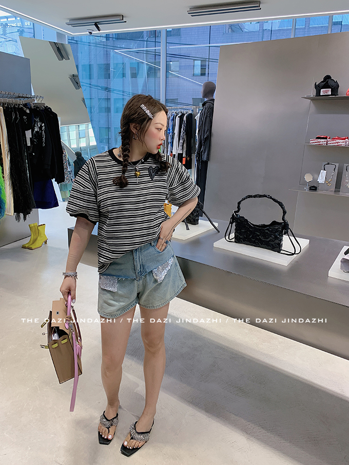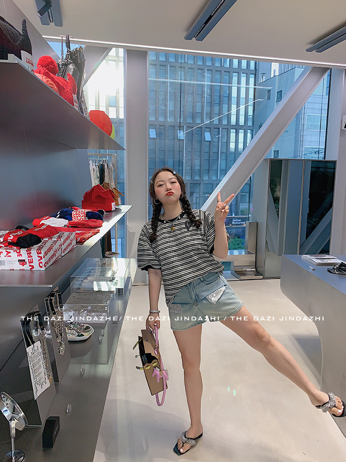 Блестки для ногтей, джинсовая юбка, летние шорты, приталенные штаны, высокая талия, большой размер, А-силуэт