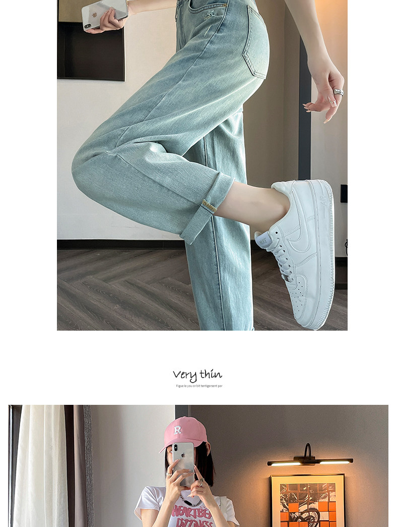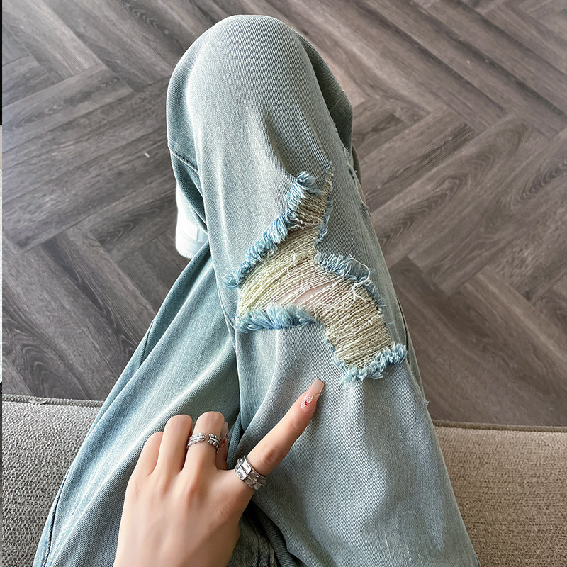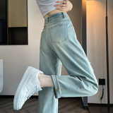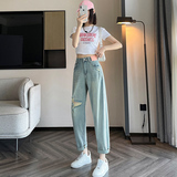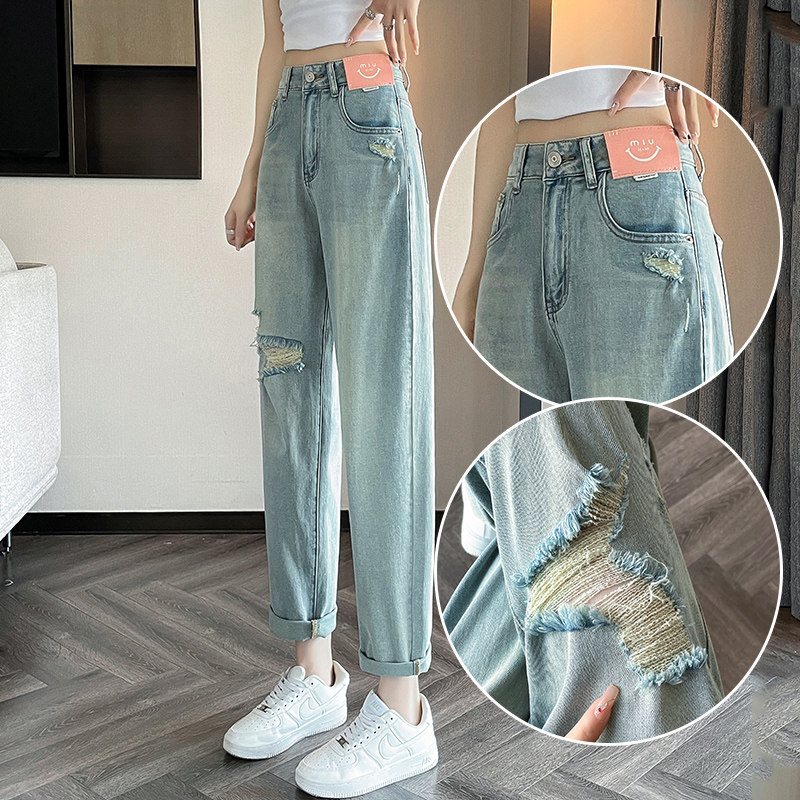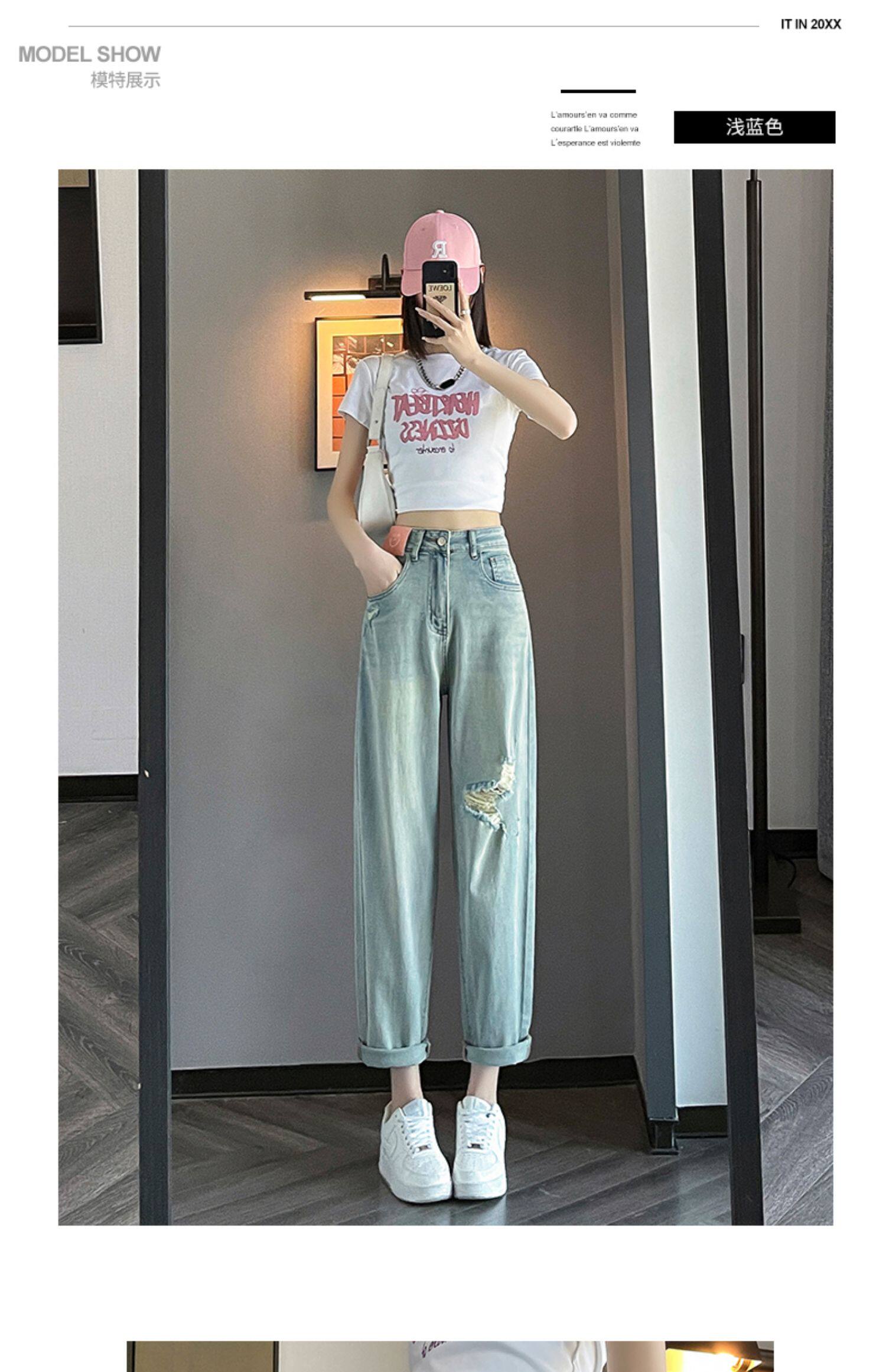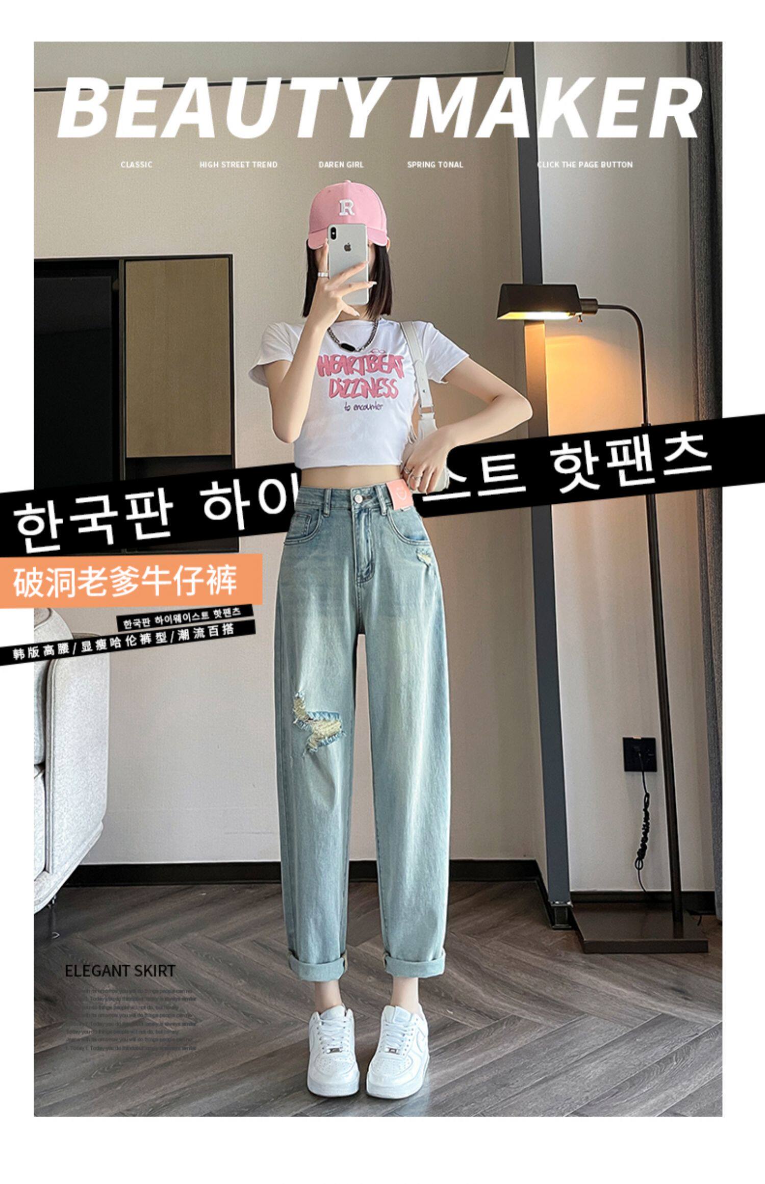 Джинсы, летние штаны, подходит для подростков, высокая талия, свободный крой, большой размер