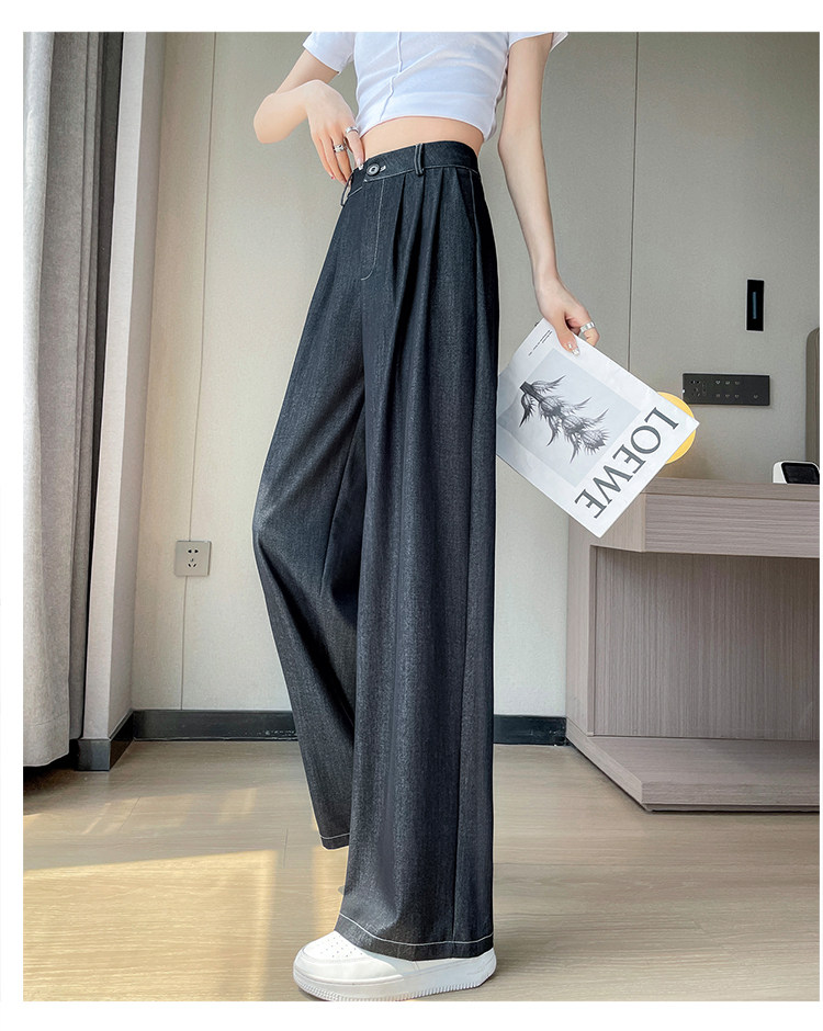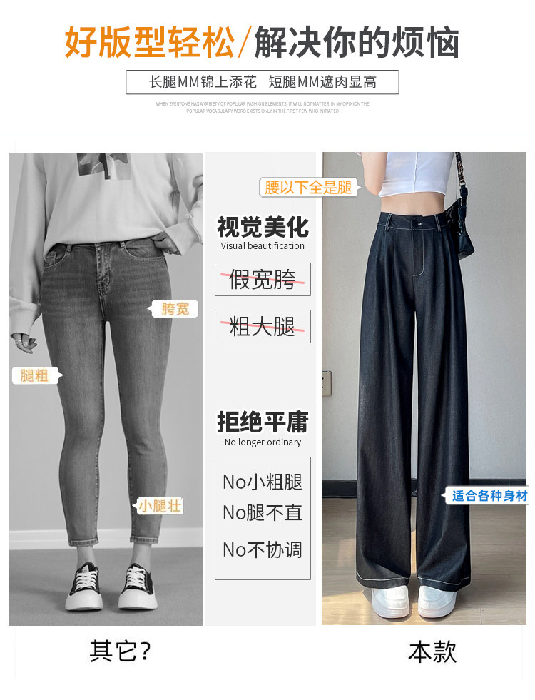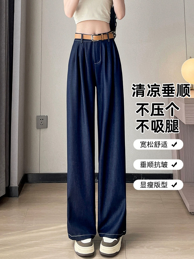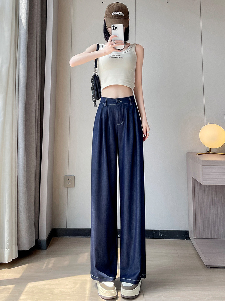 Тонкие джинсы, шелковые штаны, высокая талия, свободный прямой крой, подходит для подростков