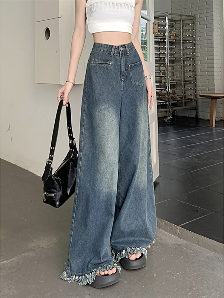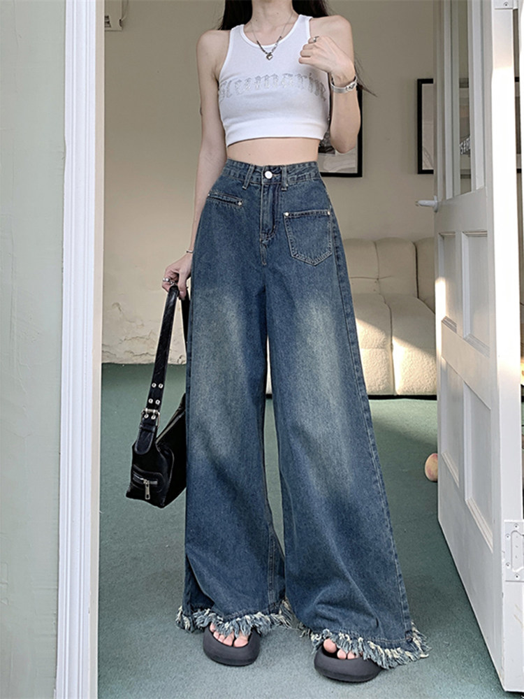 Ретро осенние джинсы, штаны, приталенные дизайнерские леггинсы, высокая талия, тренд сезона, свободный крой