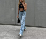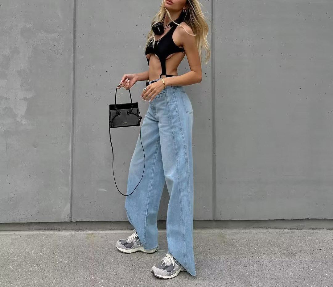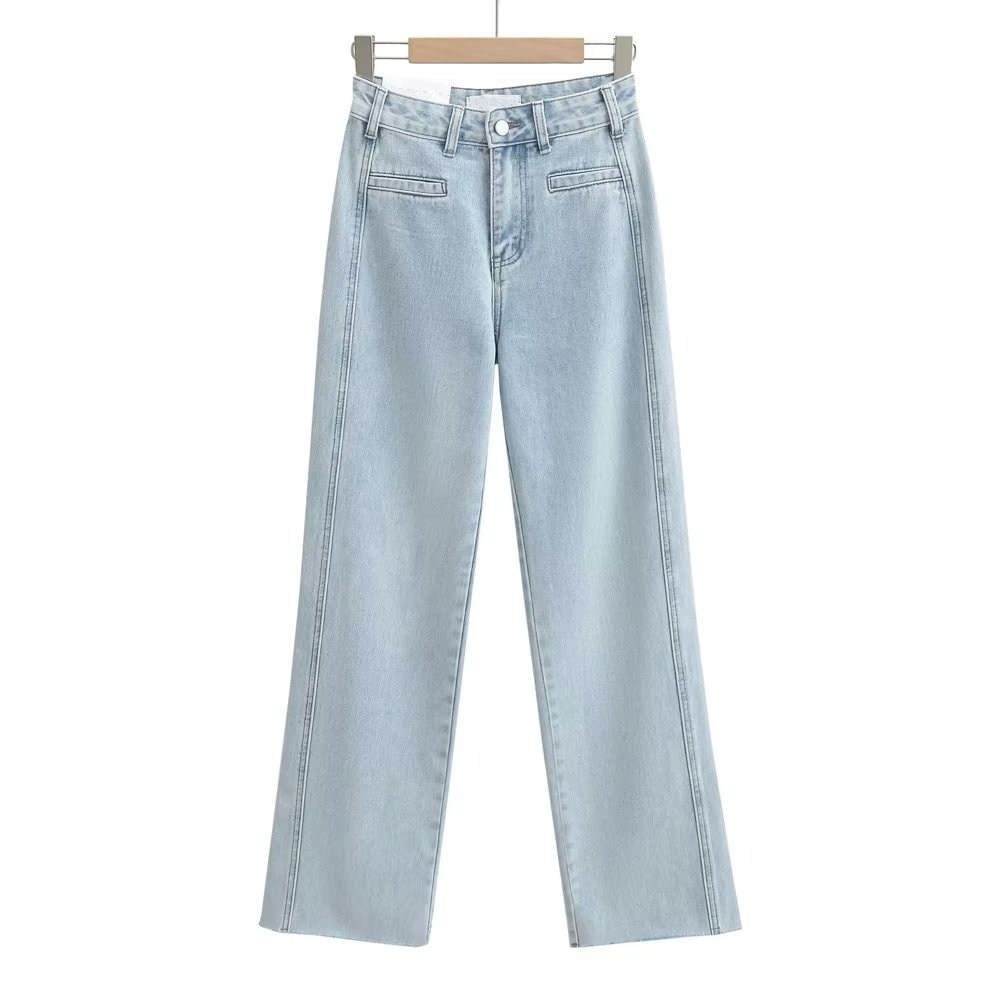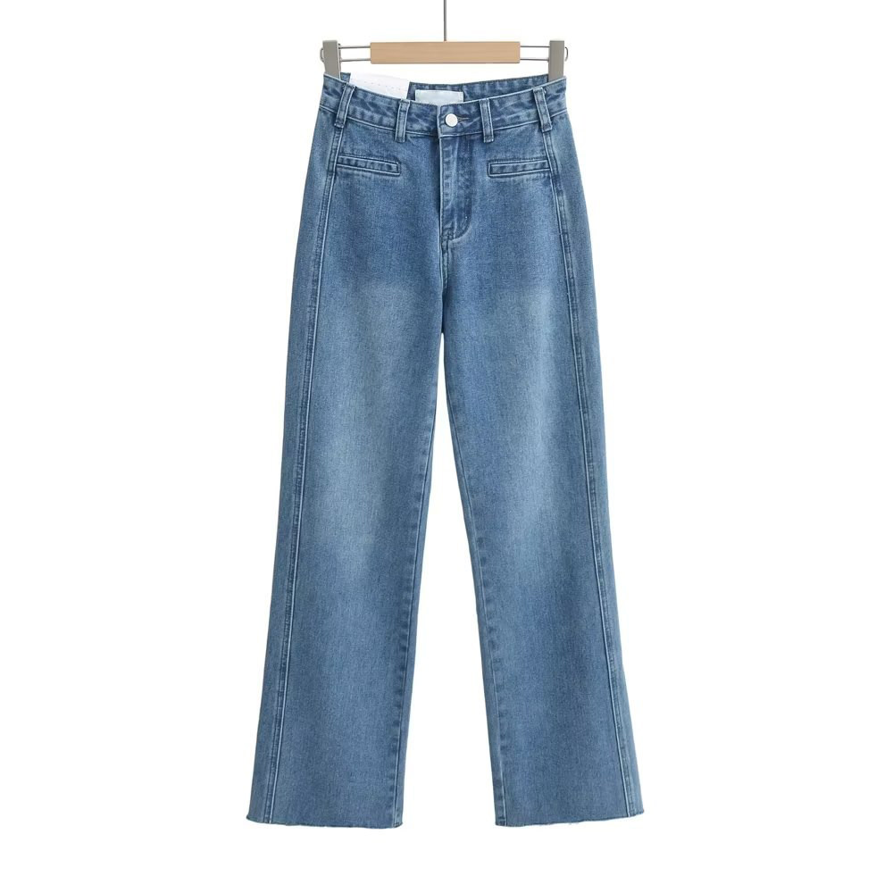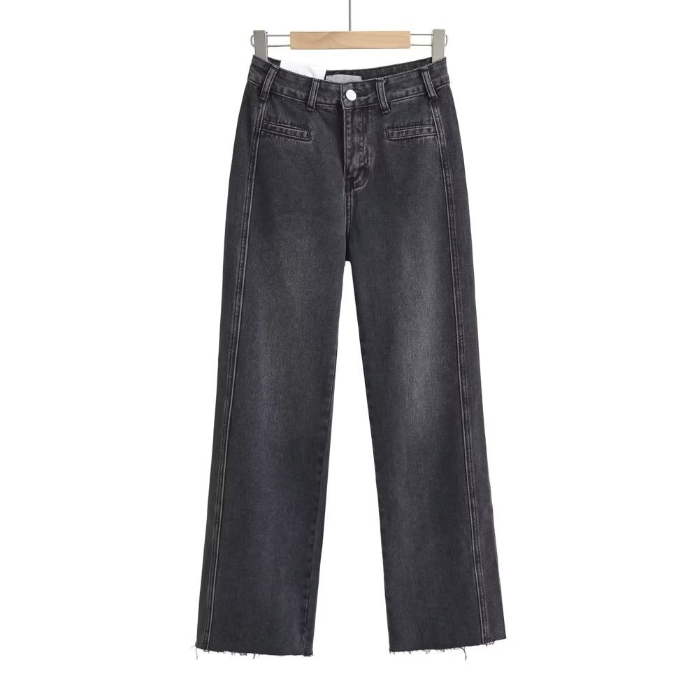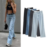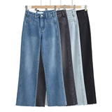 Осенние ретро штаны, джинсовые джинсы, в американском стиле, свободный прямой крой, высокая талия