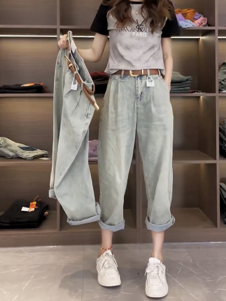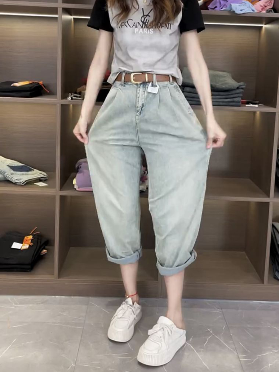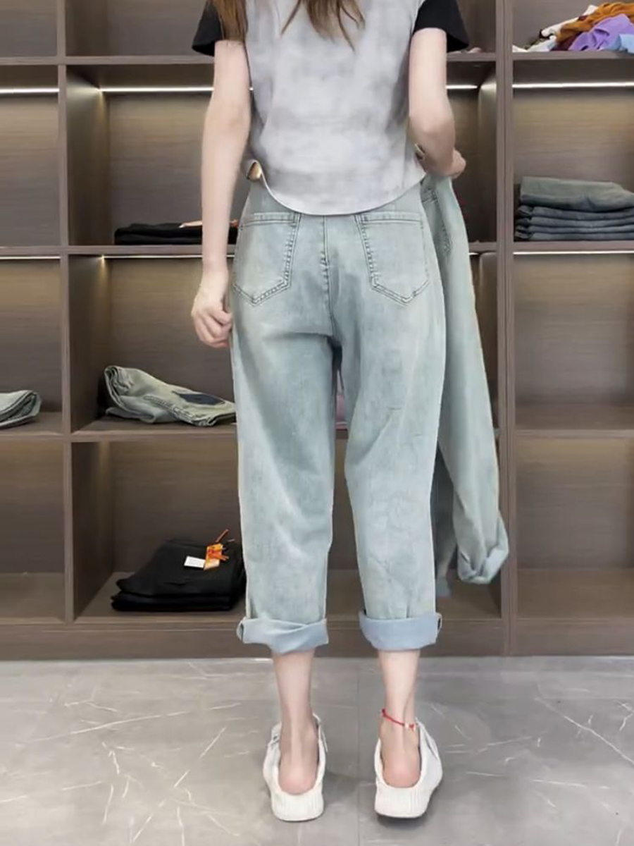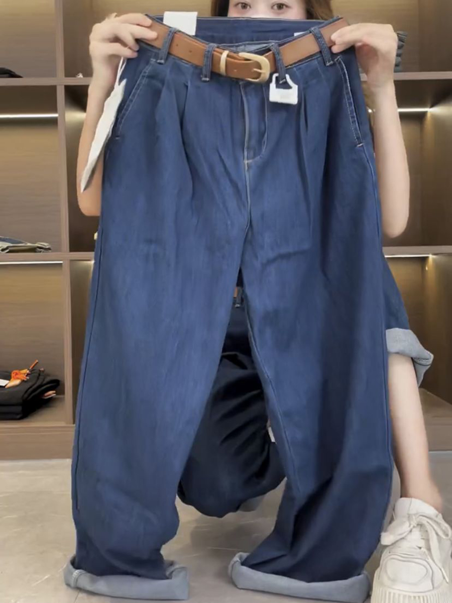 Джинсы, летние тонкие штаны, для формы тела «груша», большой размер, коллекция 2023