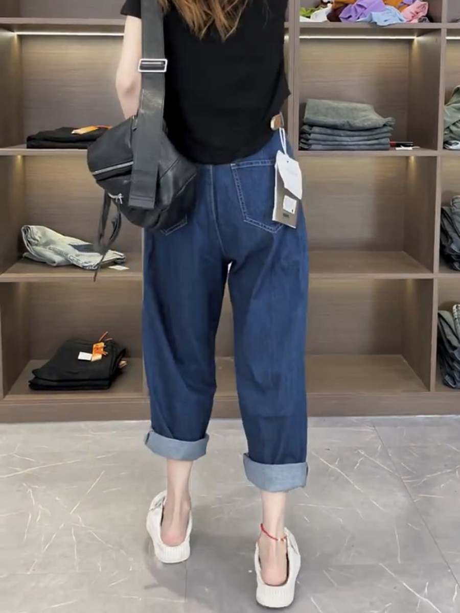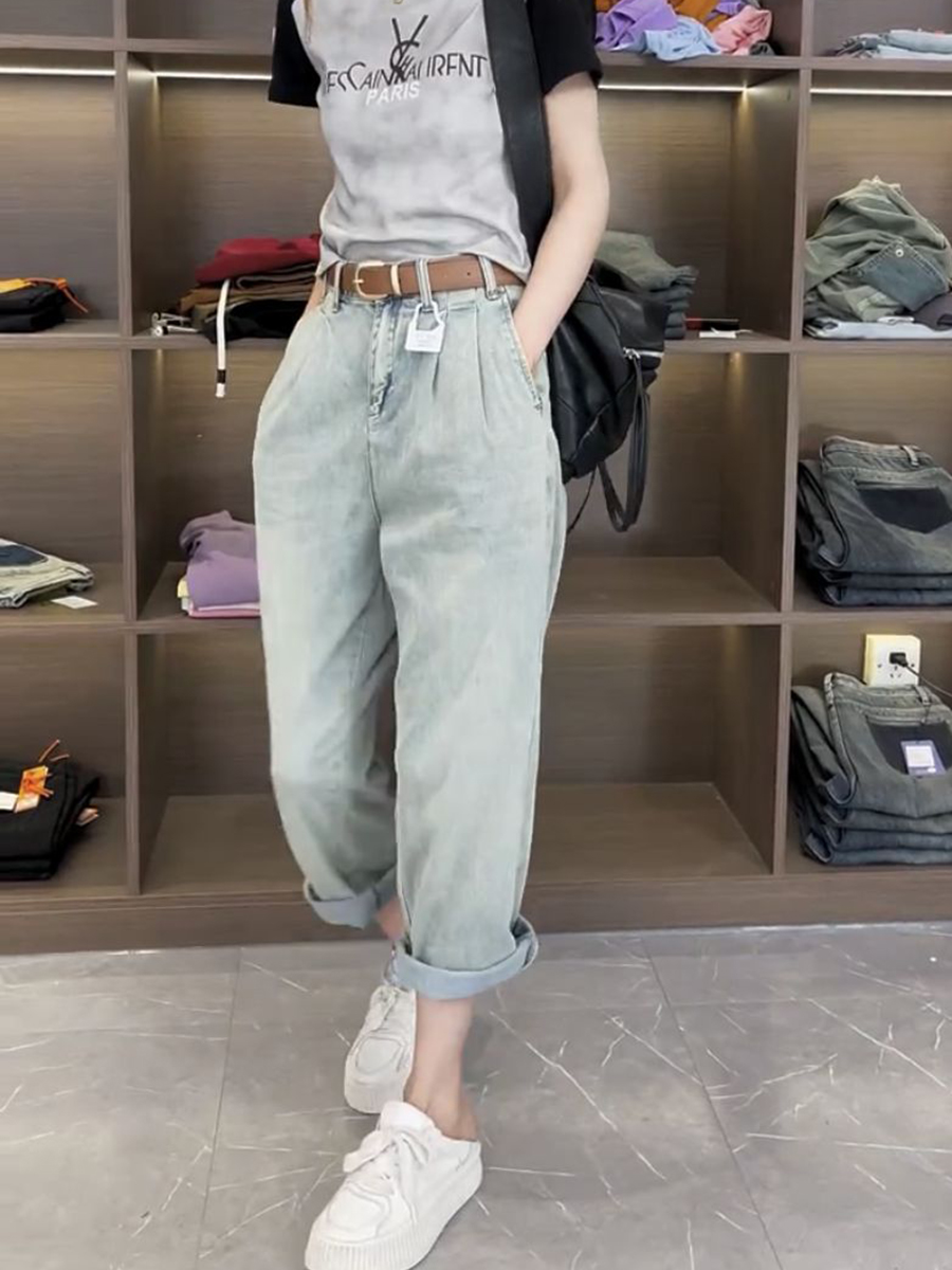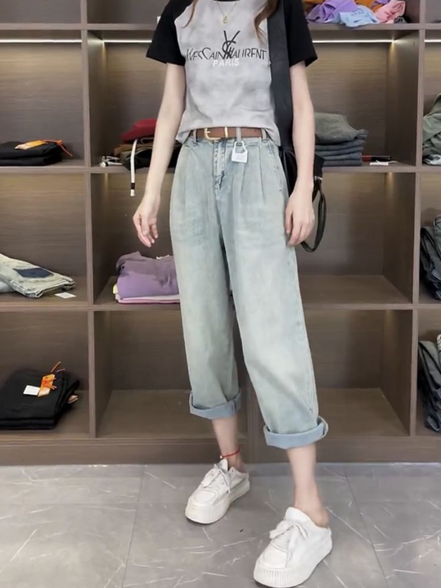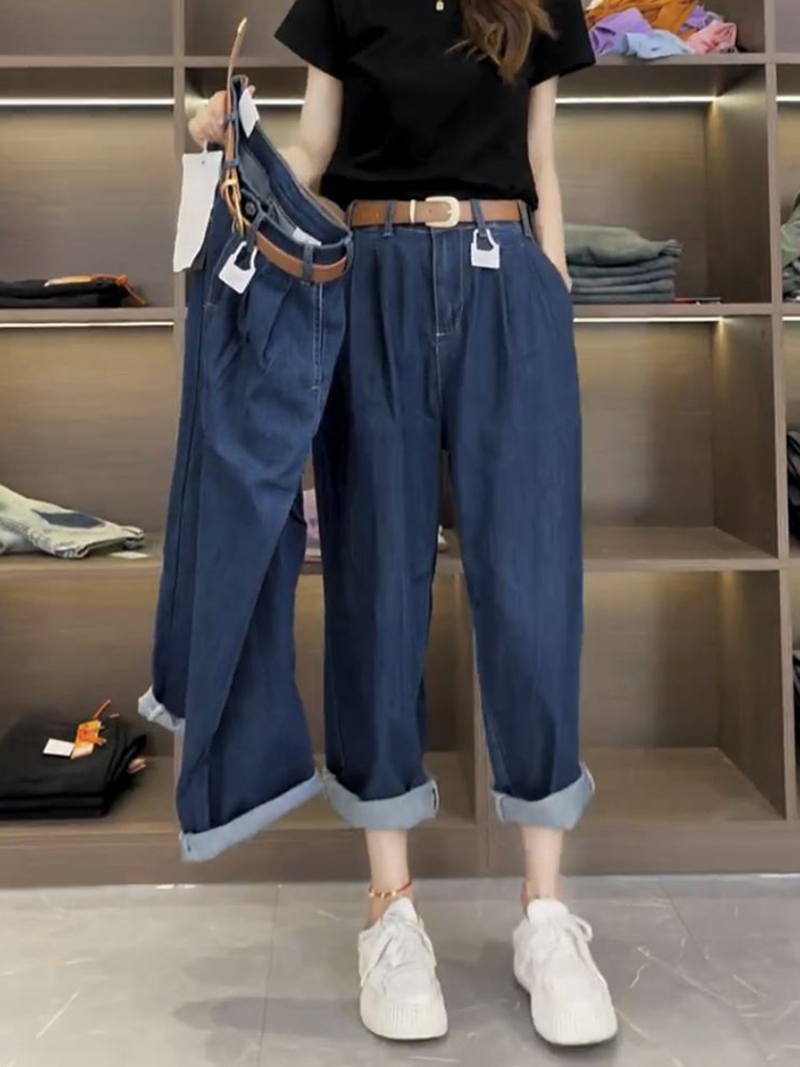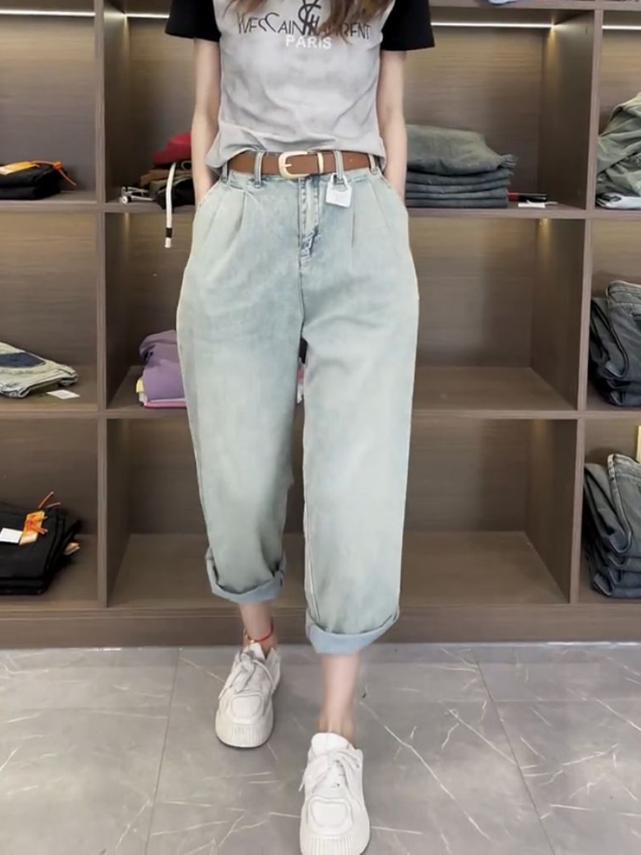 Джинсы, летние тонкие штаны, для формы тела «груша», большой размер, коллекция 2023