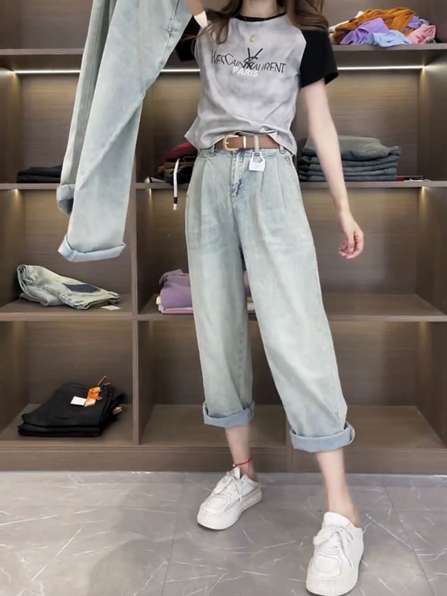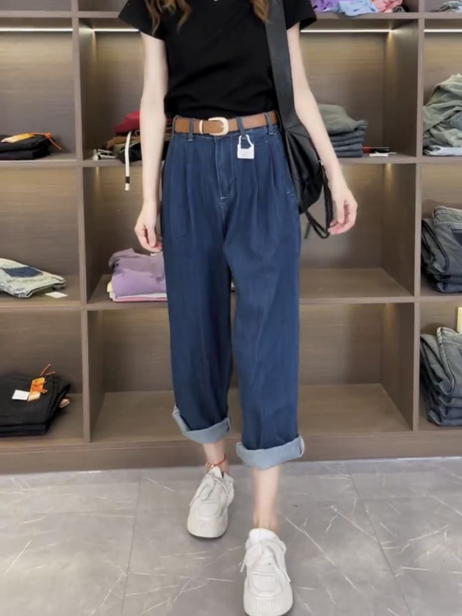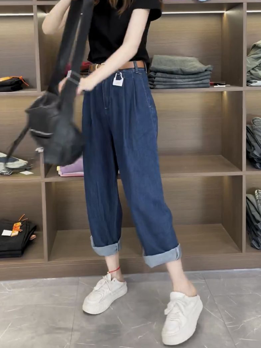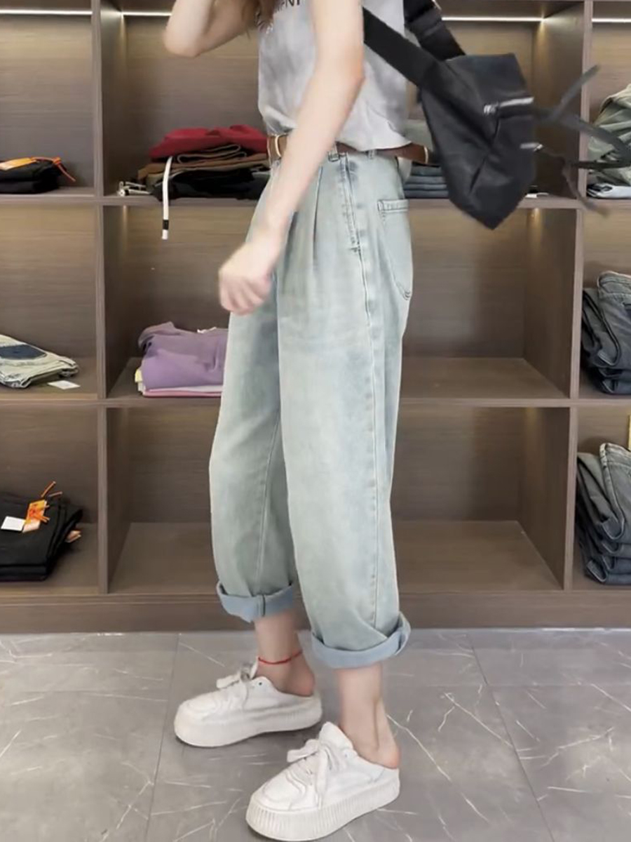 Джинсы, летние тонкие штаны, для формы тела «груша», большой размер, коллекция 2023